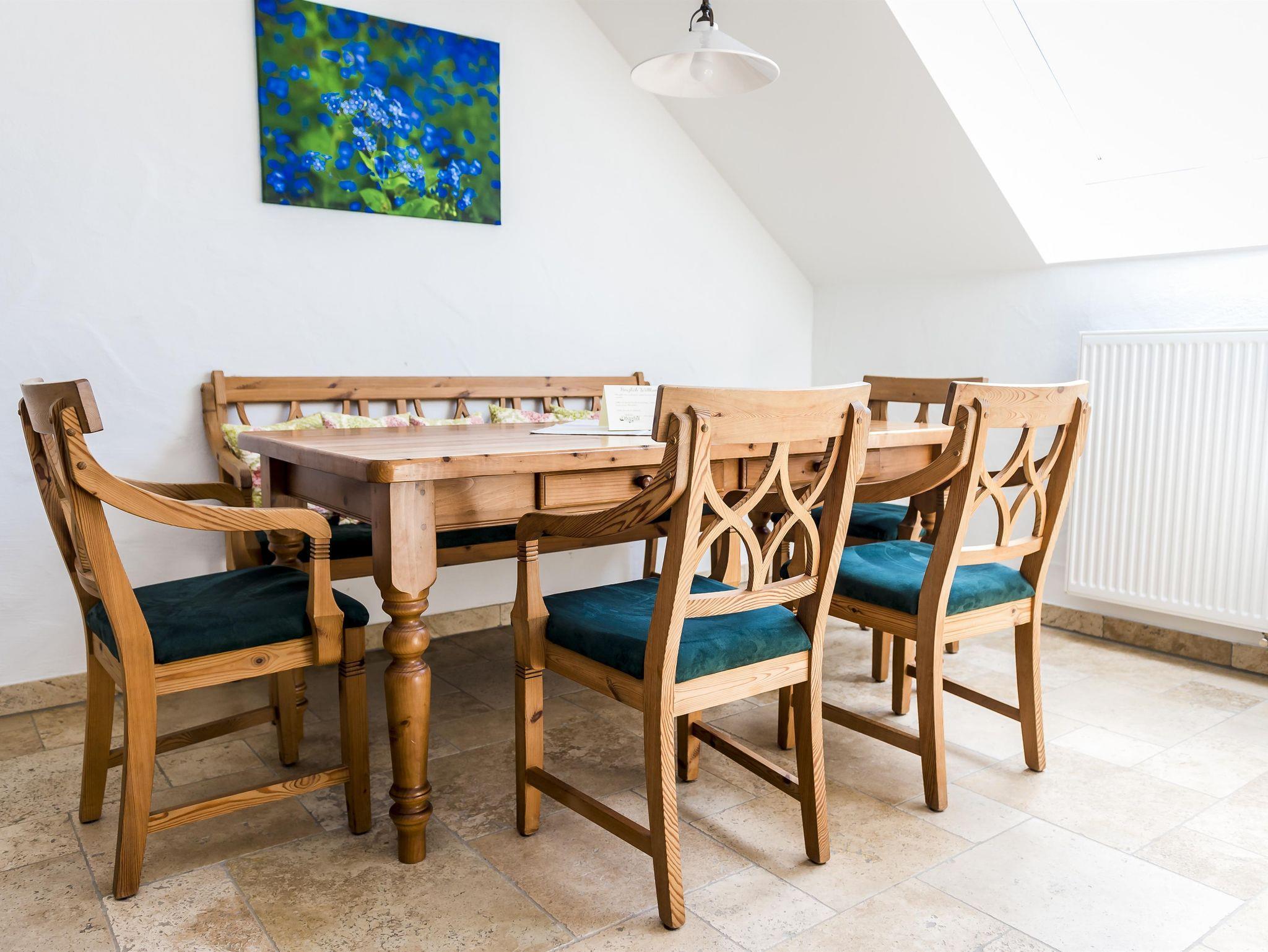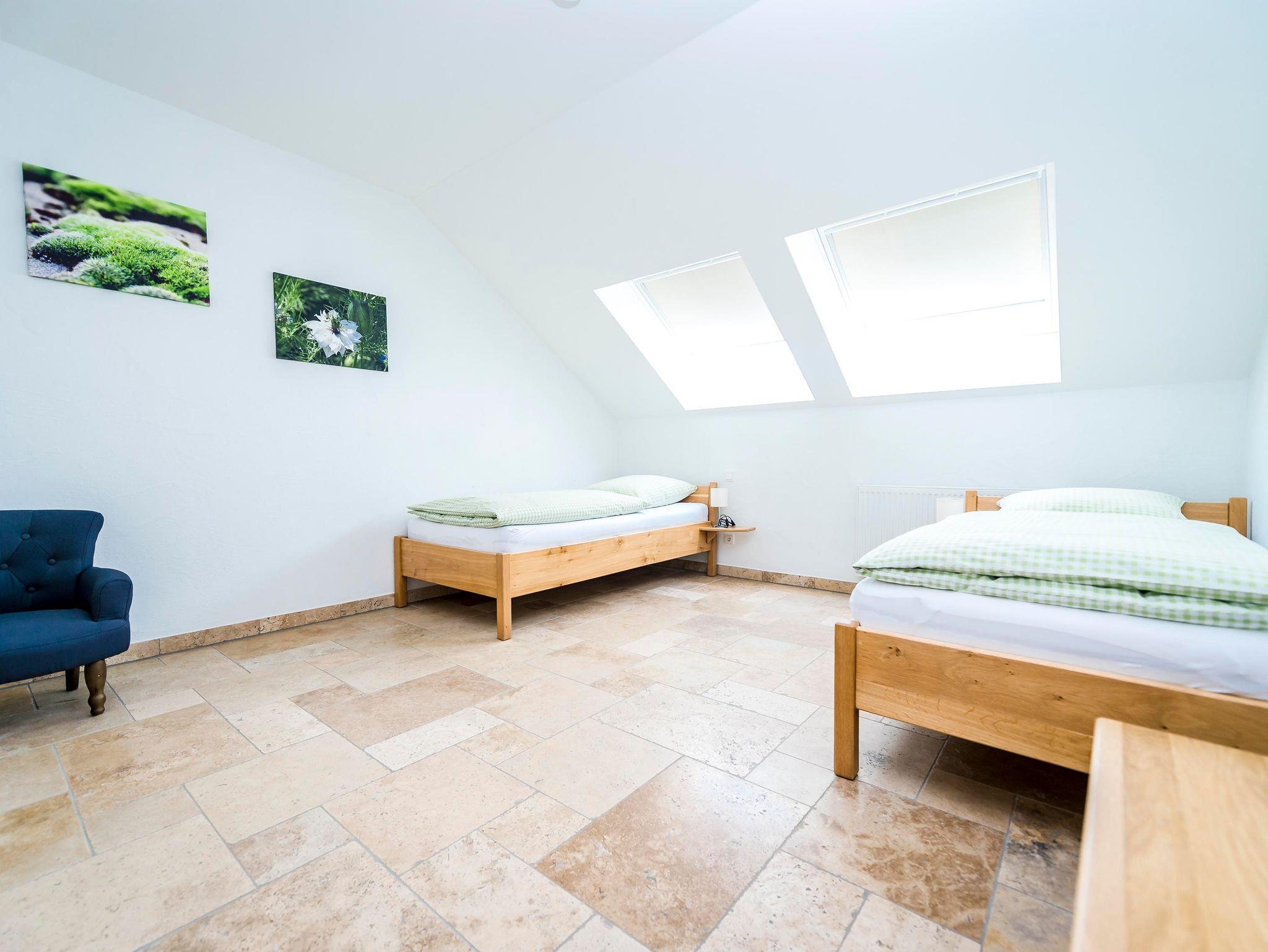 Wir bieten Ihnen vier wunderschöne, großzügig geschnittene Ferienwohnungen, individuell mit viel Liebe zu historischen Details eingerichtet. Eine Wohnumgebung zum Wohlfühlen mit Platz zum Durchatmen und kuscheligen Nischen. Alle Ferienwohnungen sind mit hochwertigen Travertin-Natursteinböden und hellen großzügigen Räumen sowie modernen Bädern ausgestattet. Soweit möglich sind alte bauliche Details wie Bruchsteinmauerwerk und Fensterbänke aus altem Eichengebälk erhalten worden. Alternativ können Sie auch in unseren sechs Hotelzimmern entspannt übernachten.