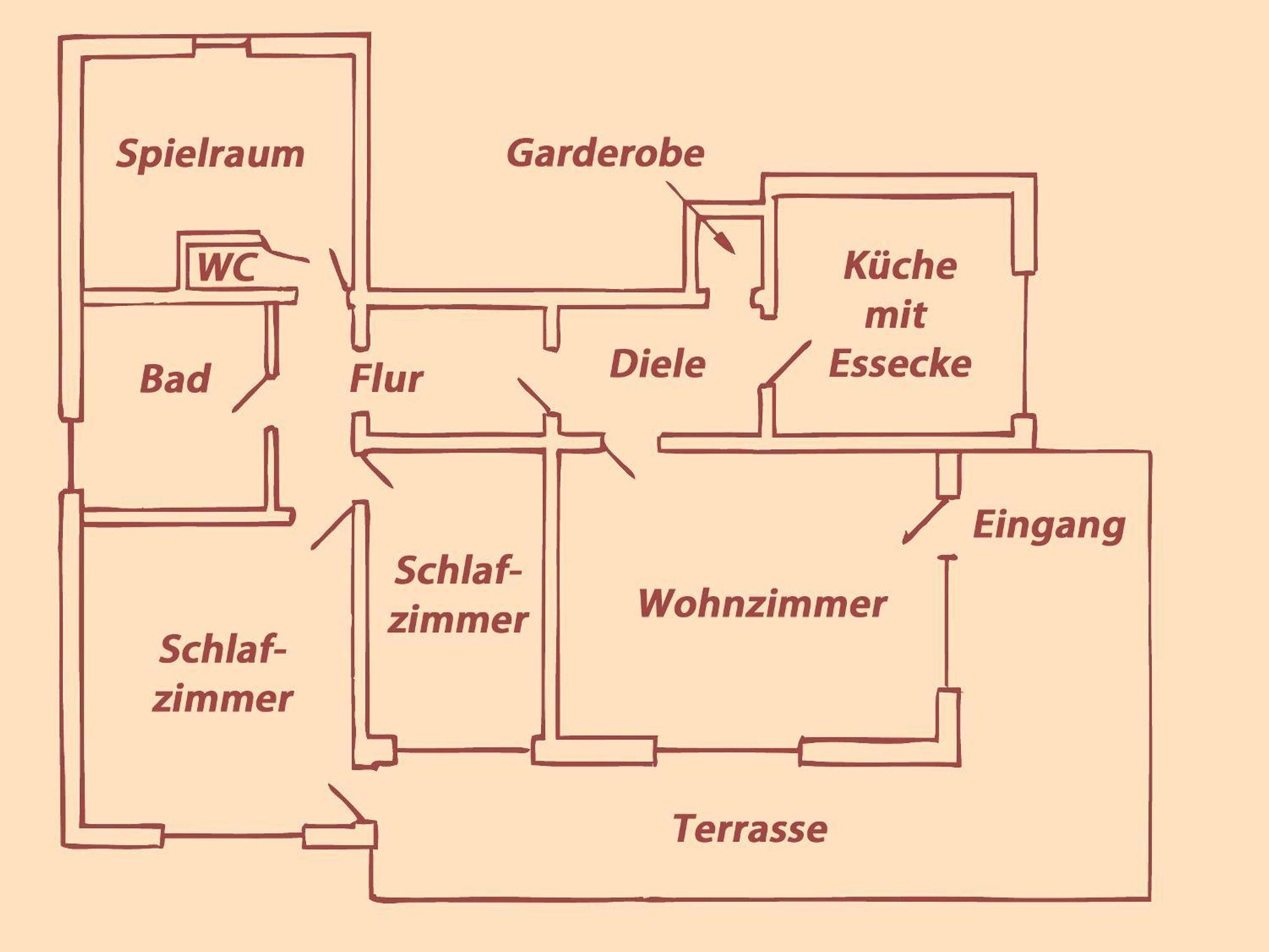 Die 96qm große, am Waldrand gelegene Ferienwohnung besteht aus: komplett eingerichtete Wohnküche mit gemütlicher Essecke, Sat-TV, 2 Schlafzimmer, geräumige Diele, Bad mit Badewanne, Dusche und separater zusätzlicher Toilette. Außerdem steht Ihnen eine Terrasse mit Gartenmöbeln, große Spiel- und Liegenwiese, Gartengrill zur Verfügung. für Kinder sind Schaukeln vorhanden.