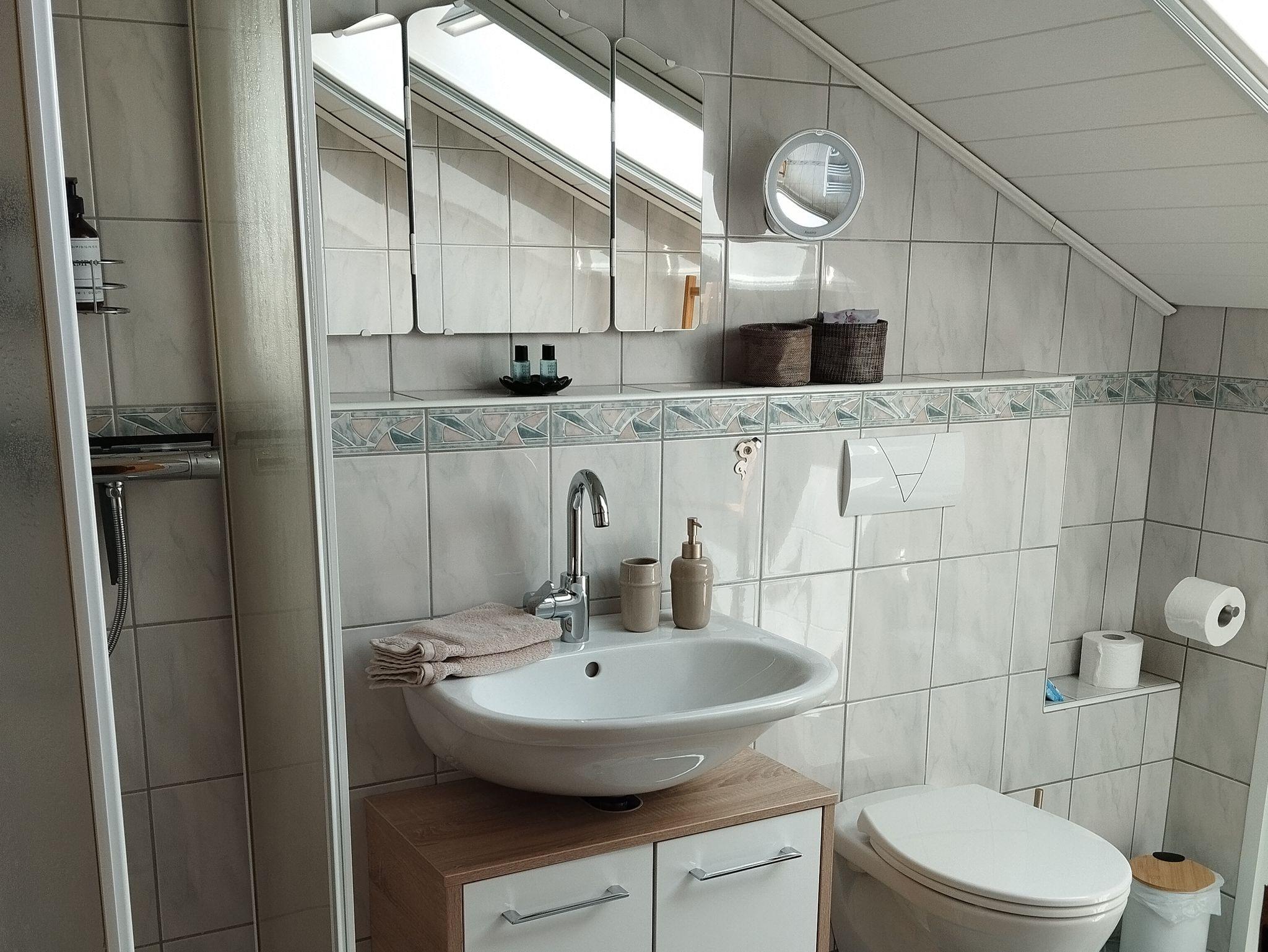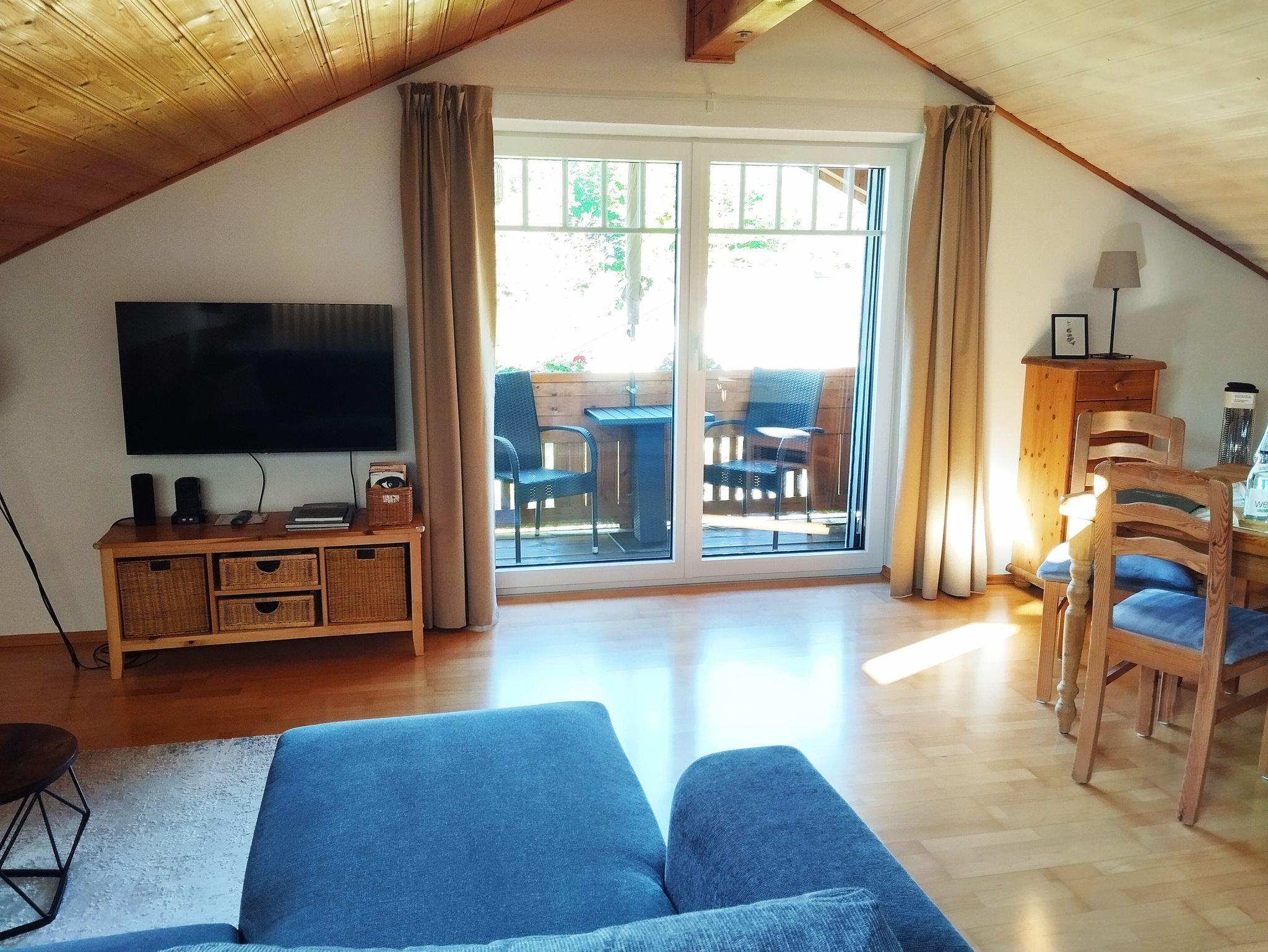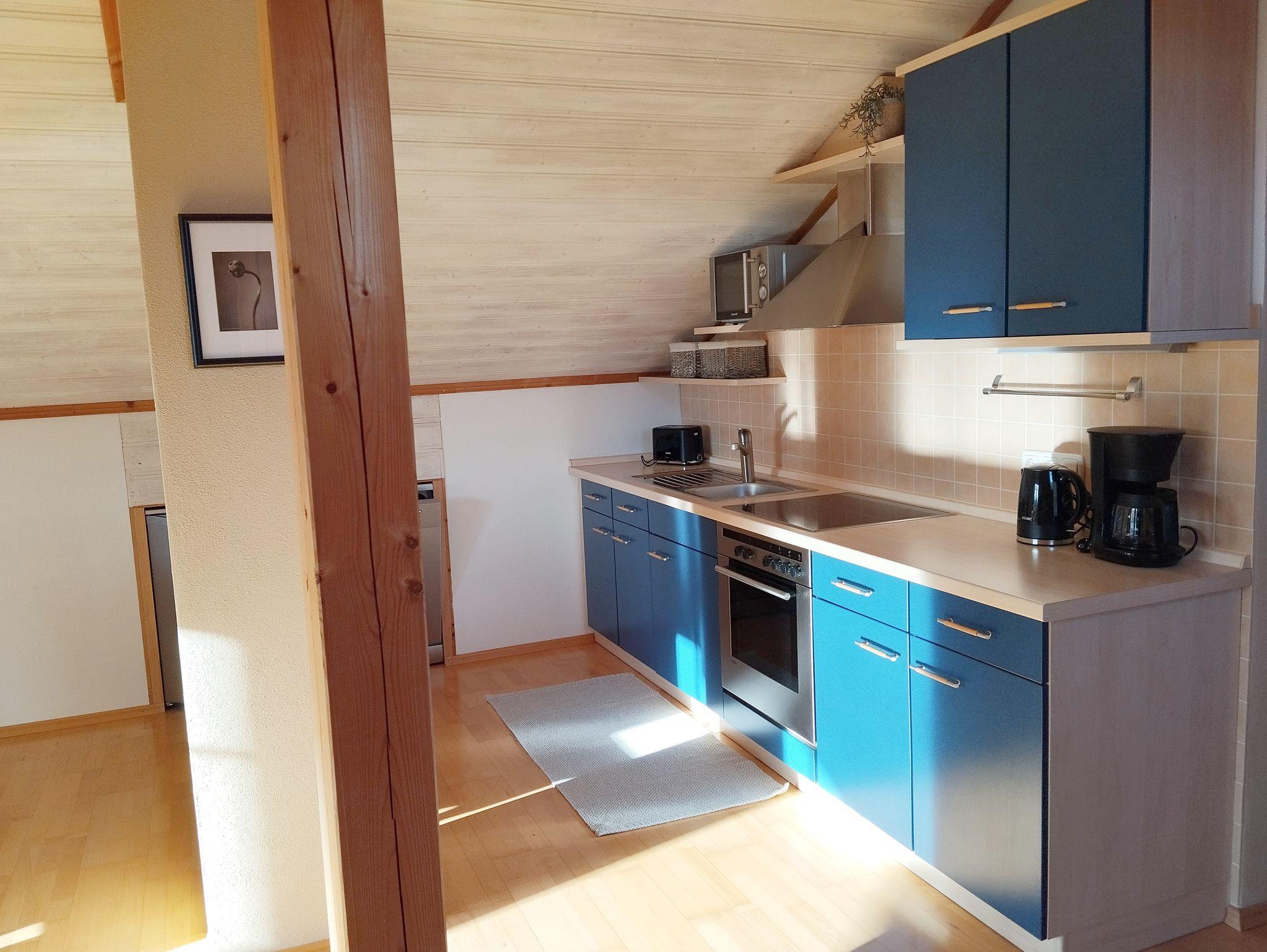 Die Unterkunft eignet sich hervorragend für Einzelreisende oder Paare, eine weitere Person ist durch Schlafsofa möglich. Im Wohn-Schlafraum befindet sich ein Doppelbett (1,60 m x 2,00 m), ein offener Kleiderschrank, ein Schlafsofa, Smart-TV, eine vollausgestattete Küchenzeile mit Spülmaschine u. Mikrowelle, Kaffemaschine, eine Essecke, ein Badezimmer mit Dusche/WC, Waschmaschinenbenutzung/Kaffeevollautomat gegen kl. Gebühr, Verdunklungsvorhänge/Rollo. Fliegenschutz Balkontür. Auf Wunsch mit Babybett/Matratze und Hochstuhl. Auf dem überdachten Balkon (süd/west) mit gemütlichen Sitzmöbeln können Sie abends den Sonnenuntergang genießen. Ein Auto-Stellplatz und schnelles WLAN stehen kostenlos zur Verfügung. Ein überdachter Fahrradstellplatz mit Lademöglichkeit ist vorhanden. Handtücher, Geschirrtücher und Bettwäsche werden gestellt. Infomaterial mit vielen Ausflugsmöglichkeiten liegt in der Unterkunft bereit. Sie erwartet ein eigenes Stockwerk (kein Aufzug) mit abgeschlossenem Apartment in der 2. Etage.