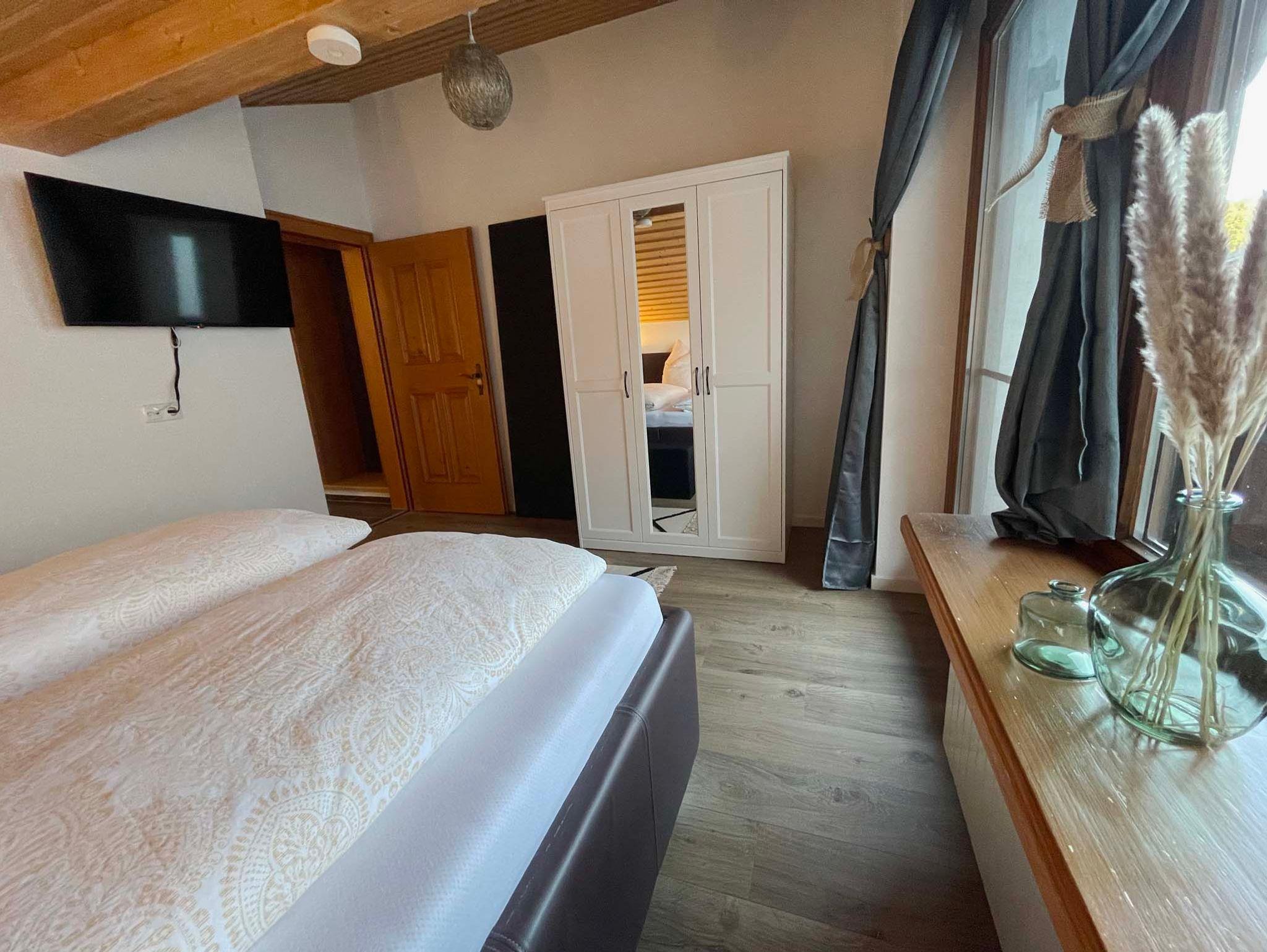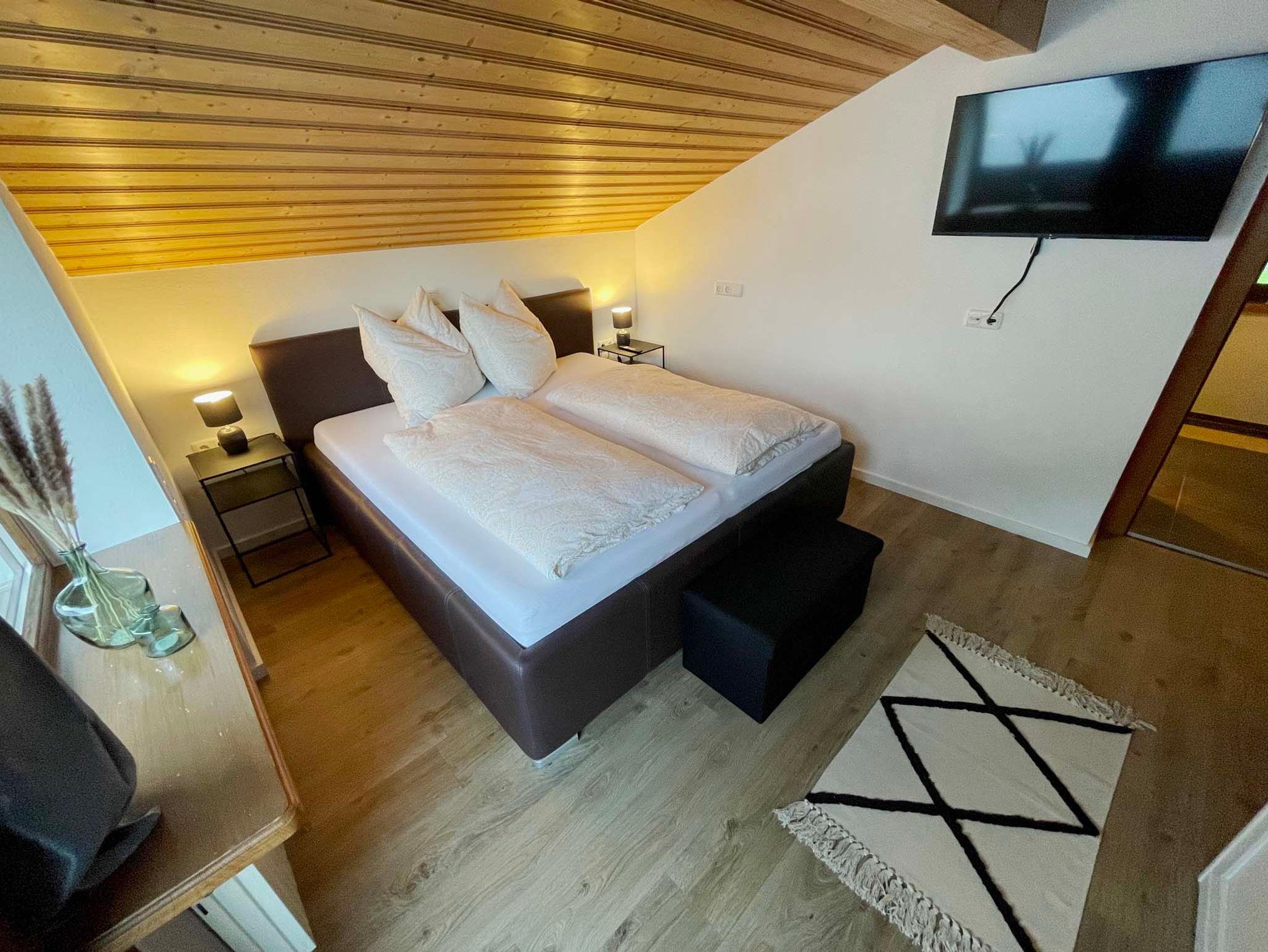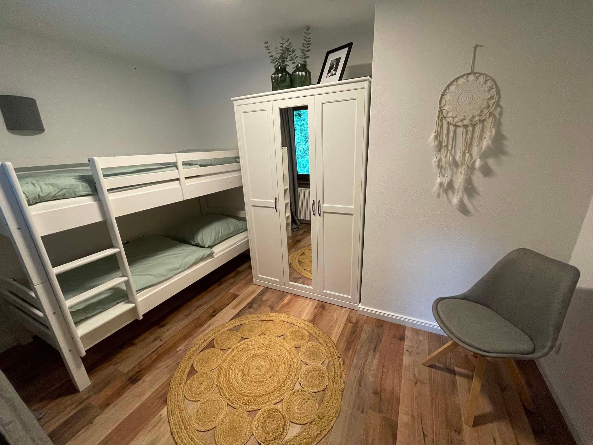 Doppelbett und 1x Etagenbett), ein Bad, Wohnzimmer mit Flat-TV und eine