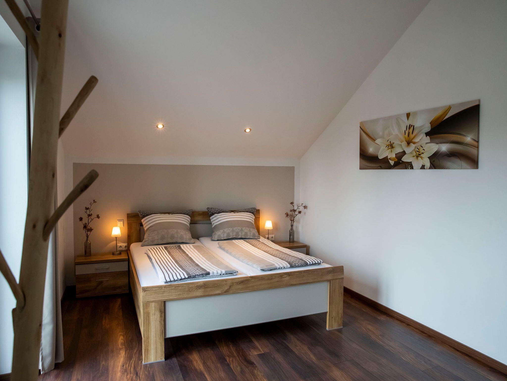 Unsere Ferienwohnung wurde Anfang 2019 komplett neu gebaut und befindet sich im 2. Obergeschoss. Bei einer Größe von 104 qm bietet die Wohnung Platz für 2-4 Personen. Die offene Architektur, sowie die hohen Decken verleihen der Wohnung einen besonderen Charme. Die Ferienwohnung beinhaltet 2 Schlafzimmer, eine Wohn-/Ess-/Küche, ein Badezimmer mit Dusche und Badewanne, sowie ein separates WC. Ein kleiner Balkon auf der Südseite, lädt ebenfalls zum Entspannen ein.