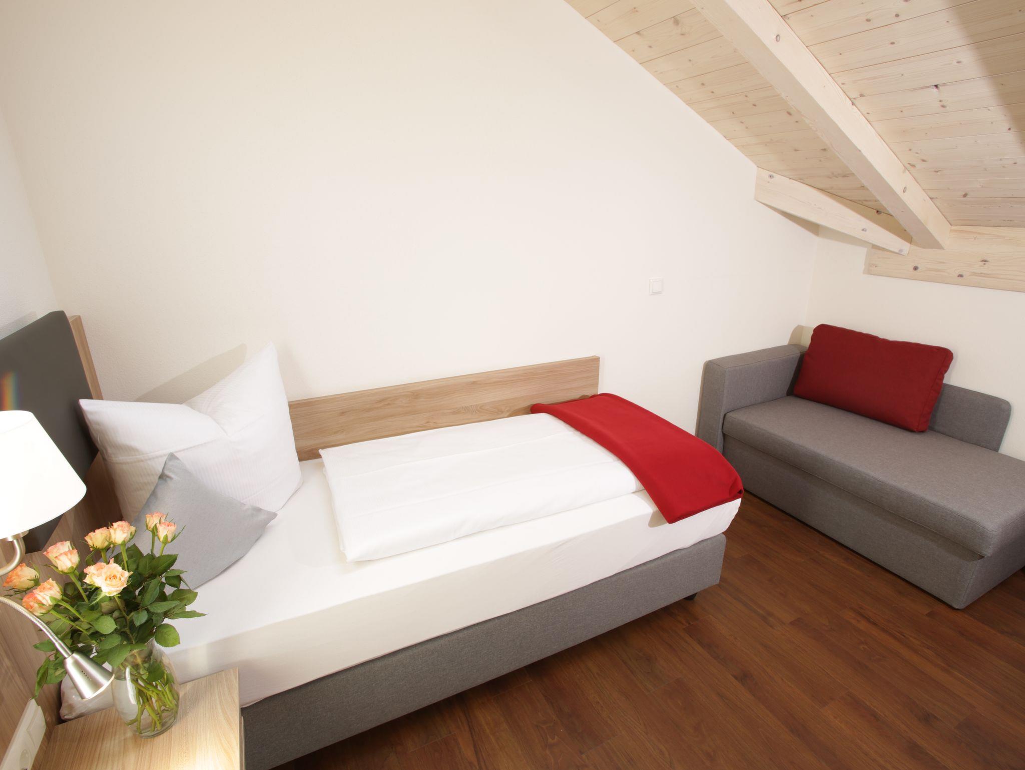 Pension Gut Horn, Panoramawohnung am Campingplatz bis 5 Personen, 90 qm im 1. OG mit 3 Schlafzimmer, Balkon mit Blick Richtung See