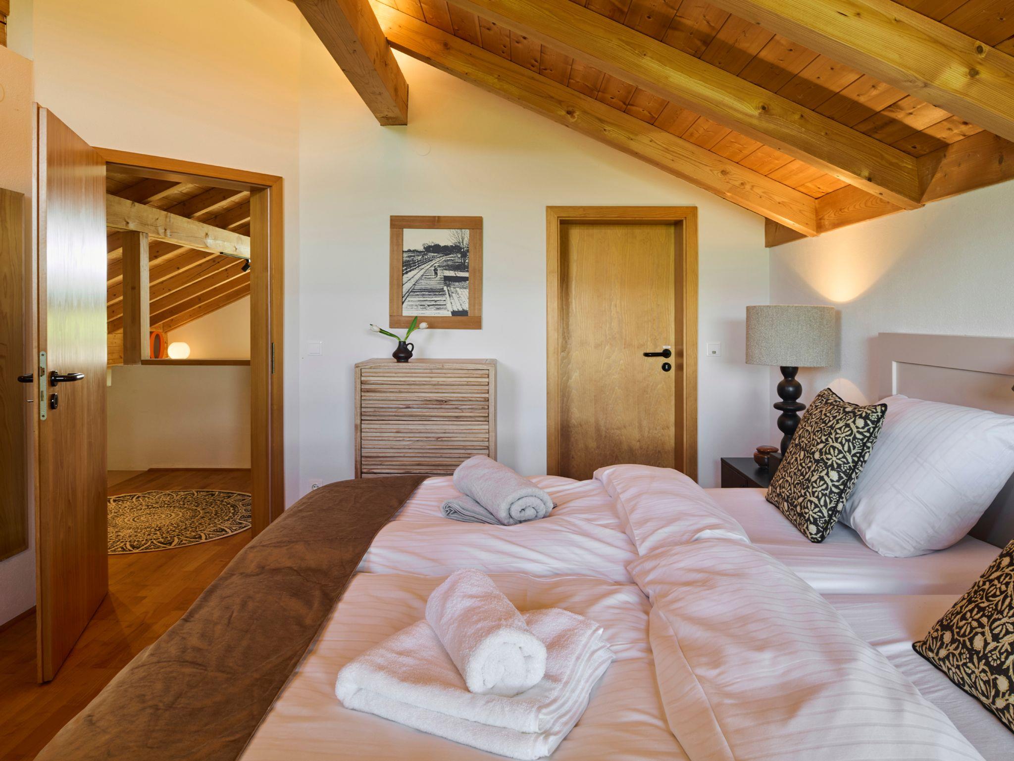 Das stilvolle Haus bietet zwei Terrassen und zwei Balkonen mit Blick in die Alpen. Das Haus wurde 2024 liebevoll saniert. Im großen Gemeinschaftbereich unter dem Holzbalkendach gibt es viele Möglichkeiten für Spiel und Unterhaltung mit Tischkicker, Bibliothek, Spielesammlung, Kamin und Flat-TV mit Sitzlandschaft.