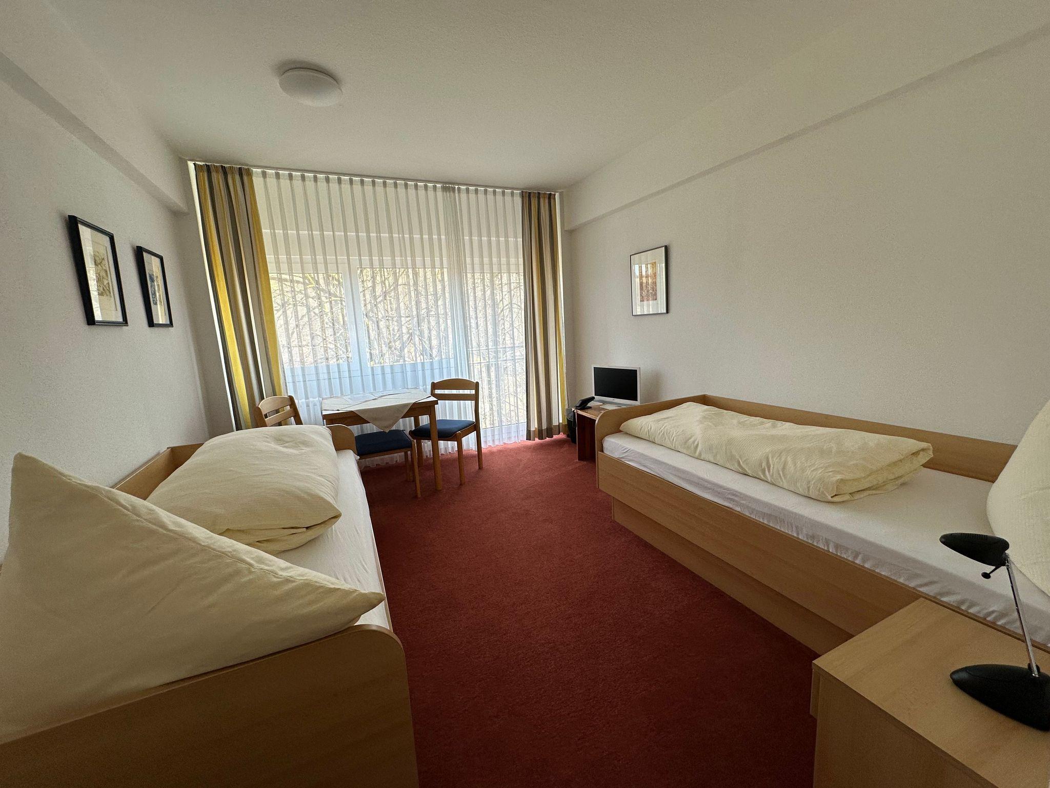 Unser lichtdurchflutetes Doppelzimmer mit zwei separaten Einzelbetten lädt dazu ein, bewusst zur Ruhe zu kommen und den Kopf freizumachen. Die großzügigen Fenster eröffnen den Blick ins Grüne und holen die Natur direkt ins Zimmer ? ideal für eine achtsame Auszeit in der Natur, inspirierende „Workation“ oder fokussierte Seminaraufenthalte.