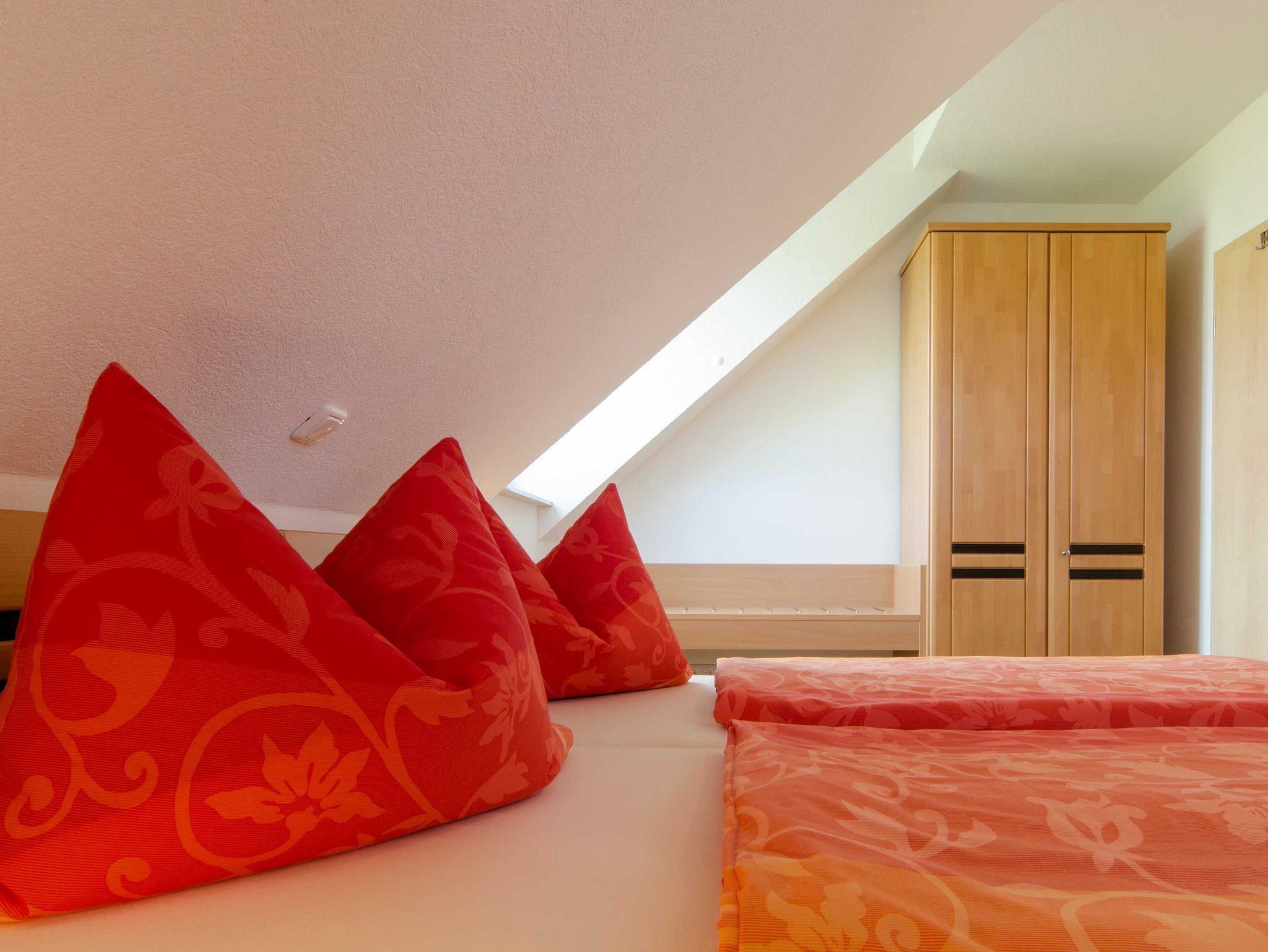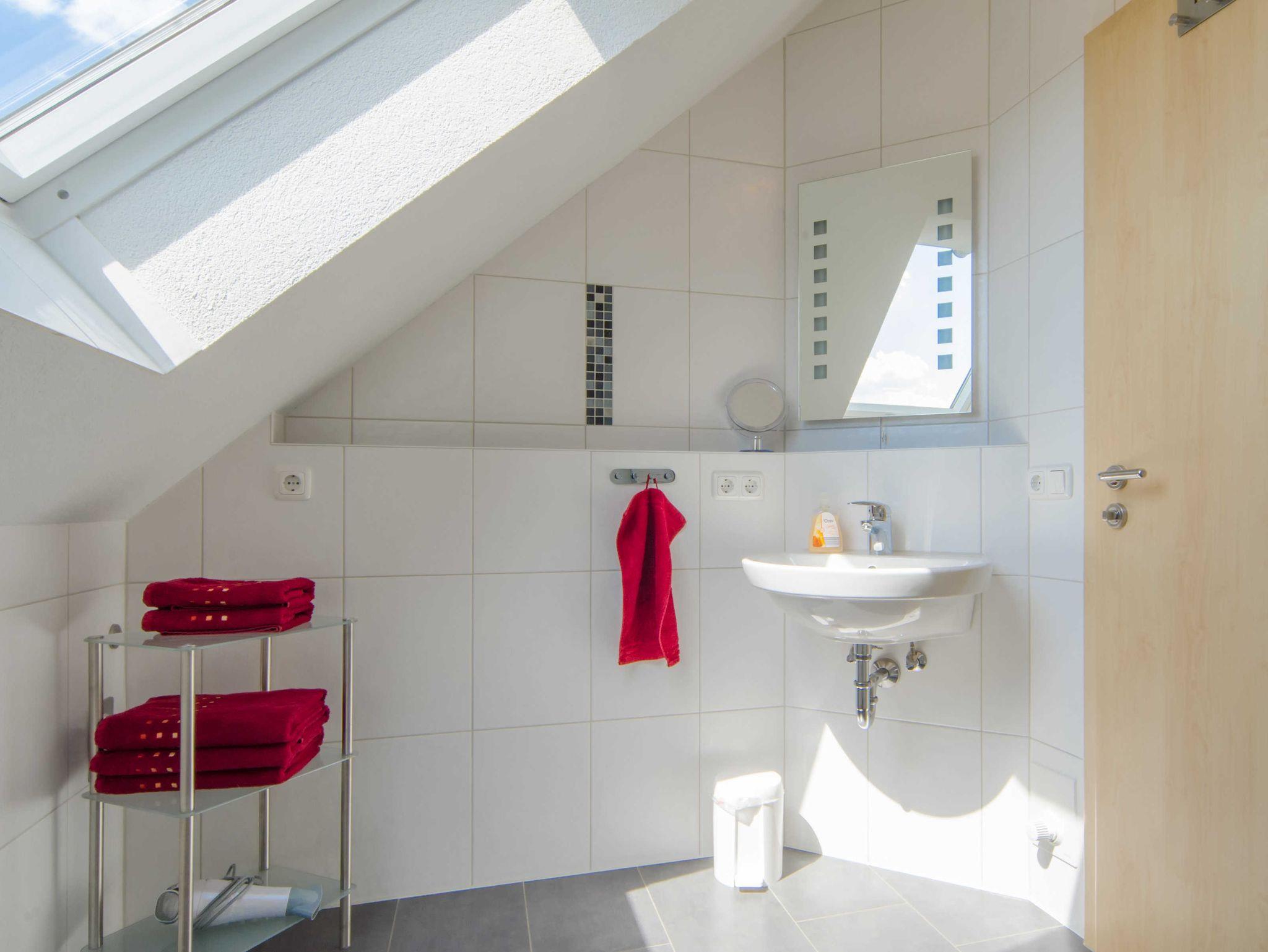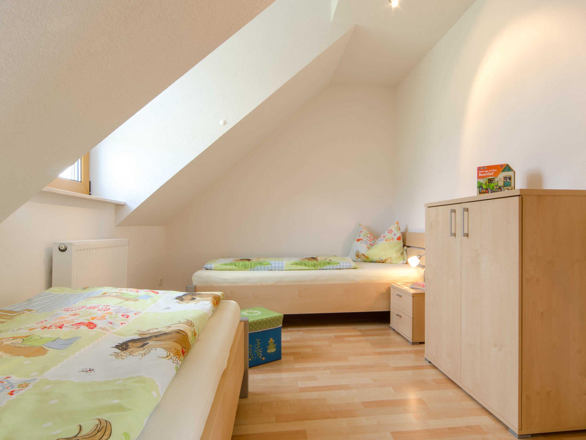 Unser helles und freundliches Nichtraucher Apartment liegt im Dachgeschoss und bietet Platz für 2-3 Personen. Es verfügt über einen WLAN Hotspot, separaten Eingang, und zwei Schlafzimmer (Doppelbett und zwei Einzelbetten). Die geräumige Wohnküche ist mit Herd, Geschirrspülmaschine, Kaffee/Senseo-Padmaschine, Toaster, Wasserkocher und gemütlicher Eckbank voll ausgestattet. Weitere Besonderheiten: Sat-TV /DVD, CD-Radio-Player und Couch | Dusche/WC mit Fön, Kosmetikspiegel, Fußbodenheizung, Wellnessbrause, Handtuchwärmer | Inklusive Bettwäsche, Dusch-/Handtücher, Geschirrtücher | Großzügiger Balkon mit Blick ins Aufseßtal ? Genießen Sie die Abendsonne!