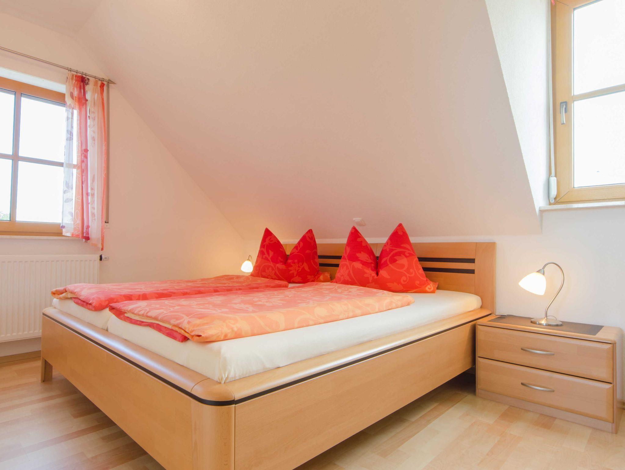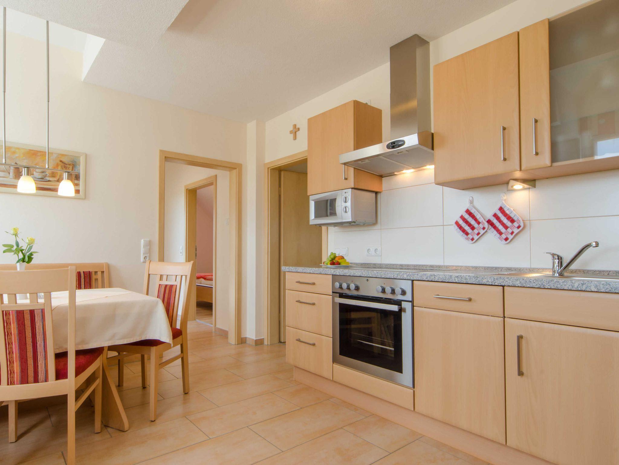 Unser helles und freundliches Nichtraucher Apartment liegt im Dachgeschoss und bietet Platz für 2-3 Personen. Es verfügt über einen WLAN Hotspot, separaten Eingang, und zwei Schlafzimmer (Doppelbett und zwei Einzelbetten). Die geräumige Wohnküche ist mit Herd, Geschirrspülmaschine, Kaffee/Senseo-Padmaschine, Toaster, Wasserkocher und gemütlicher Eckbank voll ausgestattet. Weitere Besonderheiten: Sat-TV /DVD, CD-Radio-Player und Couch | Dusche/WC mit Fön, Kosmetikspiegel, Fußbodenheizung, Wellnessbrause, Handtuchwärmer | Inklusive Bettwäsche, Dusch-/Handtücher, Geschirrtücher | Großzügiger Balkon mit Blick ins Aufseßtal – Genießen Sie die Abendsonne!