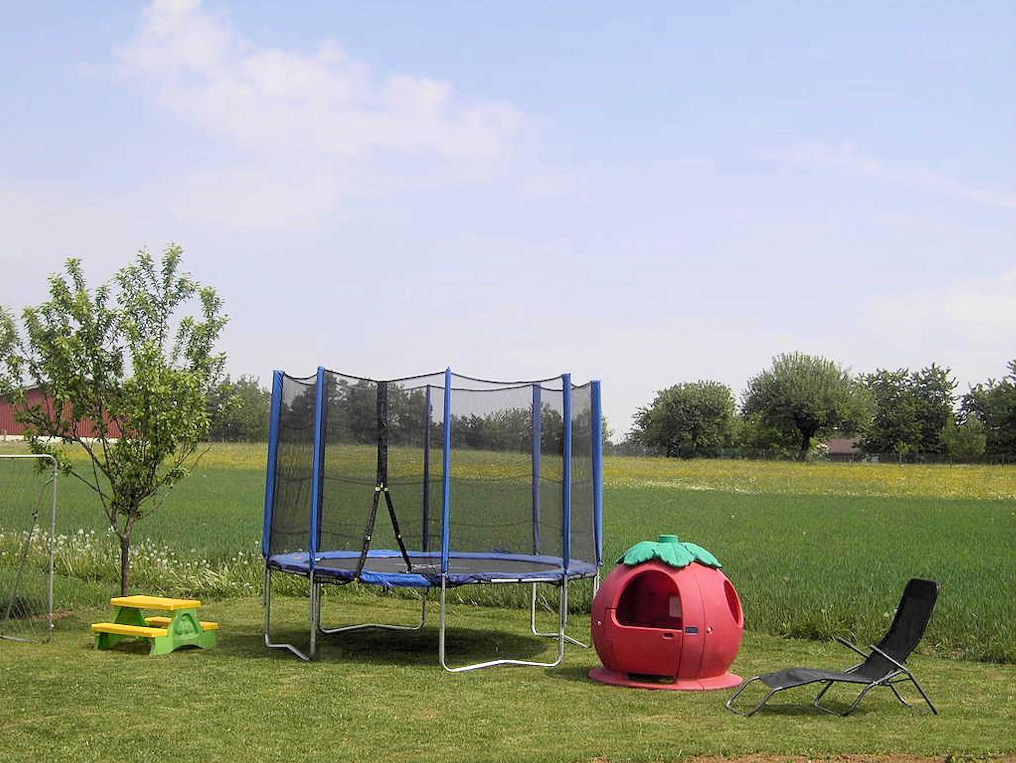 Ein Garten mit Spiel- und Liegewiese eignet sich auch besonders für unsere kleinen Gäste zum Herumtoben an. Euch erwartet ein großes Trampolin mit Netzfang, Schaukel, Rutsche, Sandkasten, Kettcar, Gocart und noch weitere Spielsachen. Unsere Hasen Lilli und Moritz sowie unsere Katze Strolch freuen sich auch schon auf EUCH! Außerdem könnt ihr täglich eure frische Kuhmilch direkt vom Bauernhof nebenan holen und Kälber streicheln. Ponyreiten und Ponykutschfahrten sind auch im Ort möglich!!!