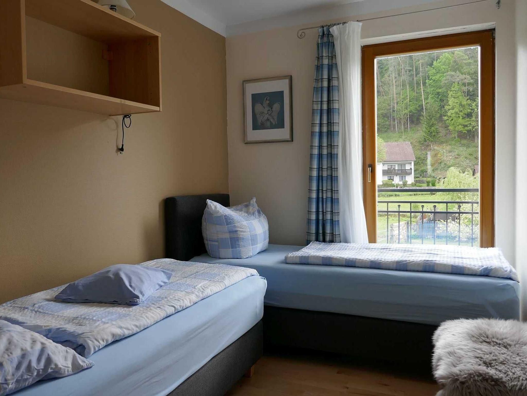 Die Ferienwohnung befindet sich im 1. Stock eines separaten Gebäudes. Liebevoll und sehr komfortabel ausgestattet verfügt sie über zwei Schlafzimmer (Doppelbett, 2 Betten) einen gemütlichen Wohn-Essbereich und über ein großes Tageslichtbad. Außerdem gibt es einen großen Balkon.
