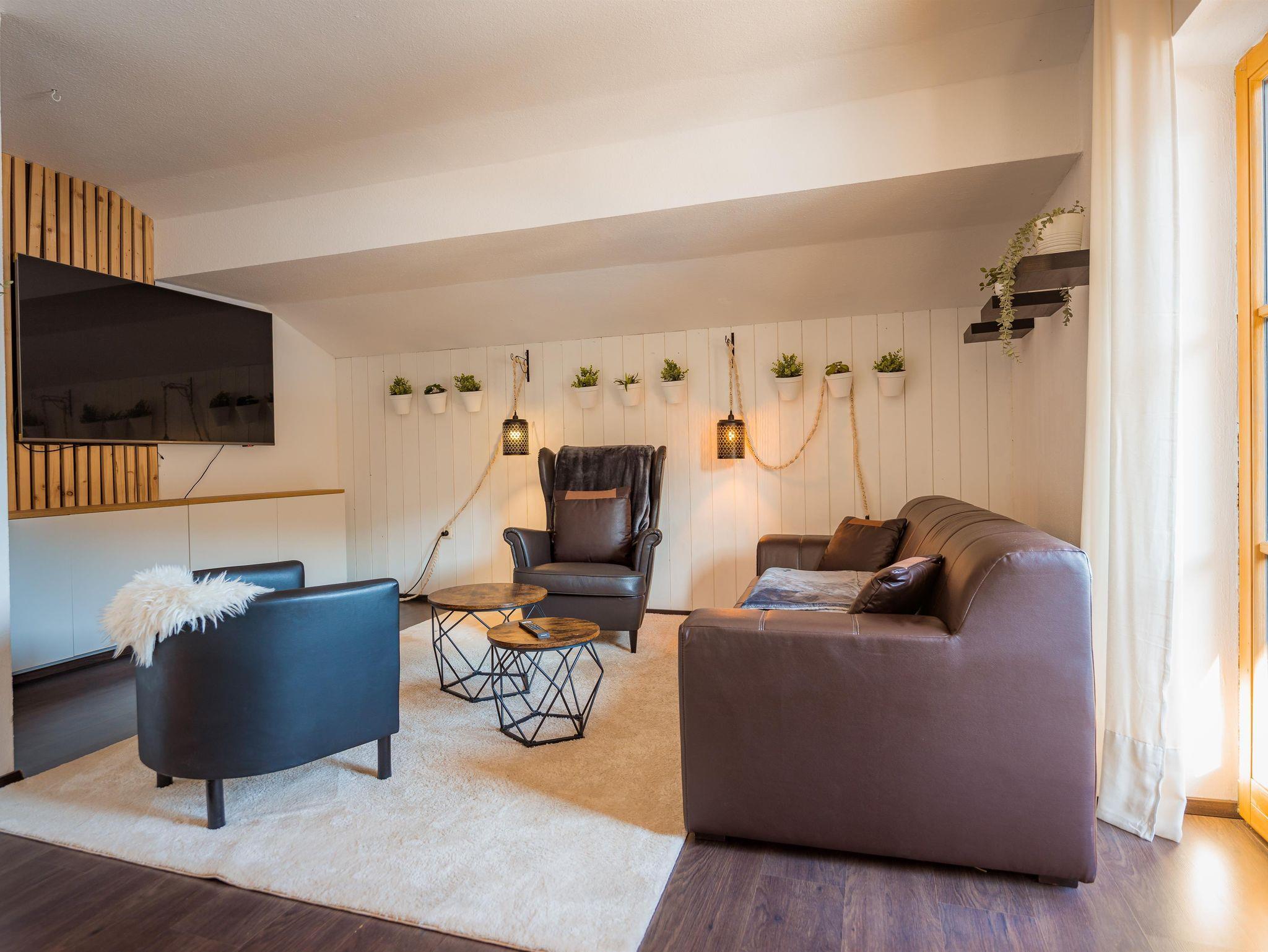 Sie finden in unserem Relax-Appartment den nötigen Raum für einen entspannten Urlaub. Unser Appartment verfügt über drei Schlafzimmer mit jeweils einem Doppelbett, wovon zwei mit einem TV ausgestattet sind. Sie finden im Appartment ein Bad mit Dusche&WC, inkl. Waschmaschine. Weiter gibt es ein weiteres Bad mit Dusche sowie ein zusätzliches, separates WC. In der großen Wohnküche - ausgestattet mit Ceranfeld, Backofen, Geschirrspüler, Kaffeemaschine, Toaster, Wasserkocher, Milchaufschäumer sowie Wohnbereich mit großem TV - können sie die Morgensonne genießen und ihren Blick in Richtung Herzogstand und Jochberg schweifen lassen. Zum Appartment gehört die kostenfreie Parkmöglichkeit im hauseigenen Carport sowie Nutzung des Gartens. Dort finden sie die Möglichkeit zu Grillen und die Fasssauna zu benutzen.