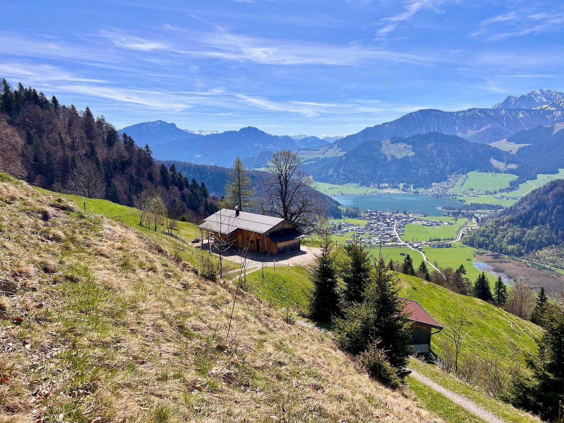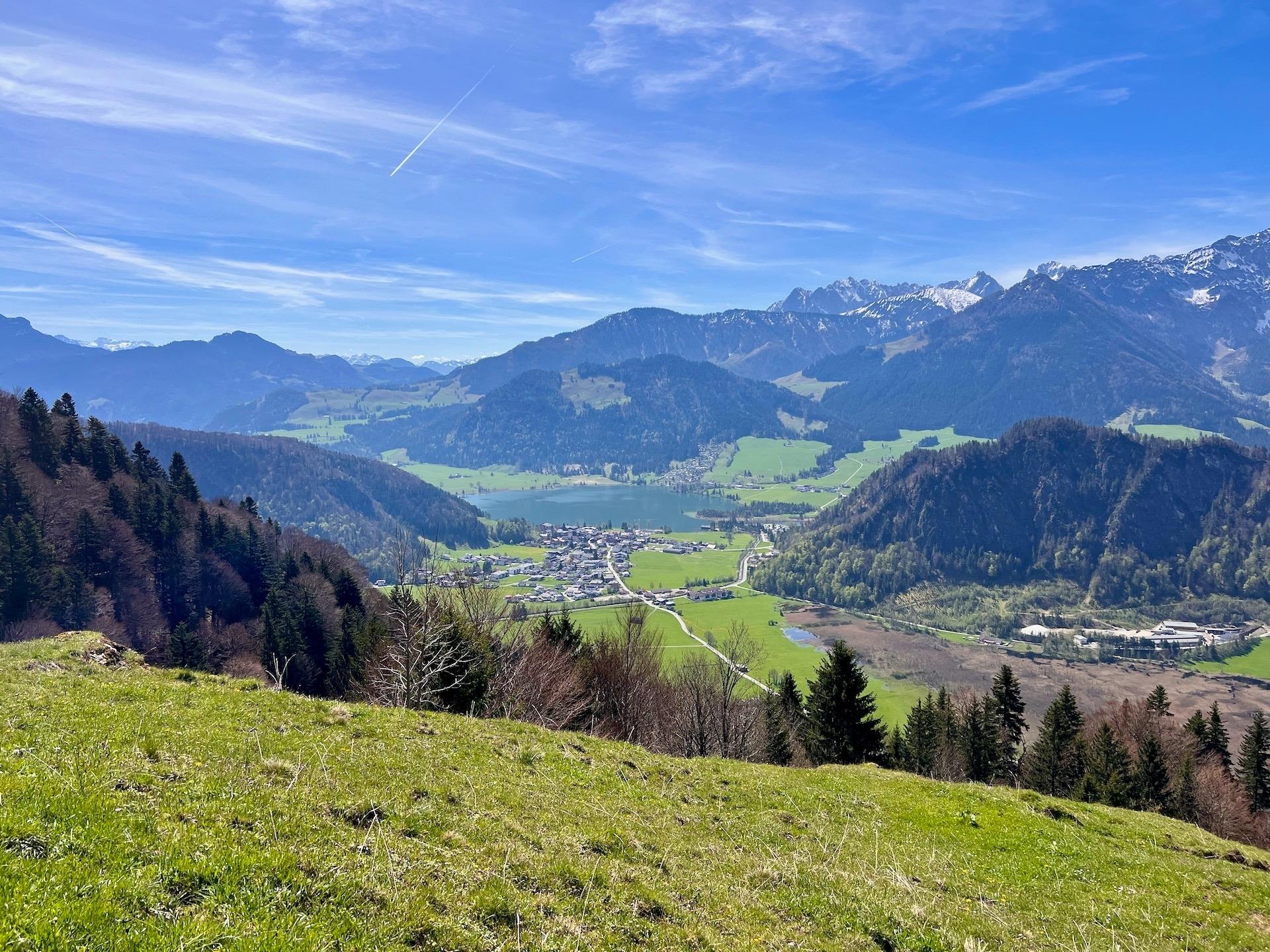 Von der Hütte hat man einen beeindruckenden Ausblick auf das Tal mit dem Walchsee sowie den Zahmen Kaiser bis nach Kufstein und das Inntal.