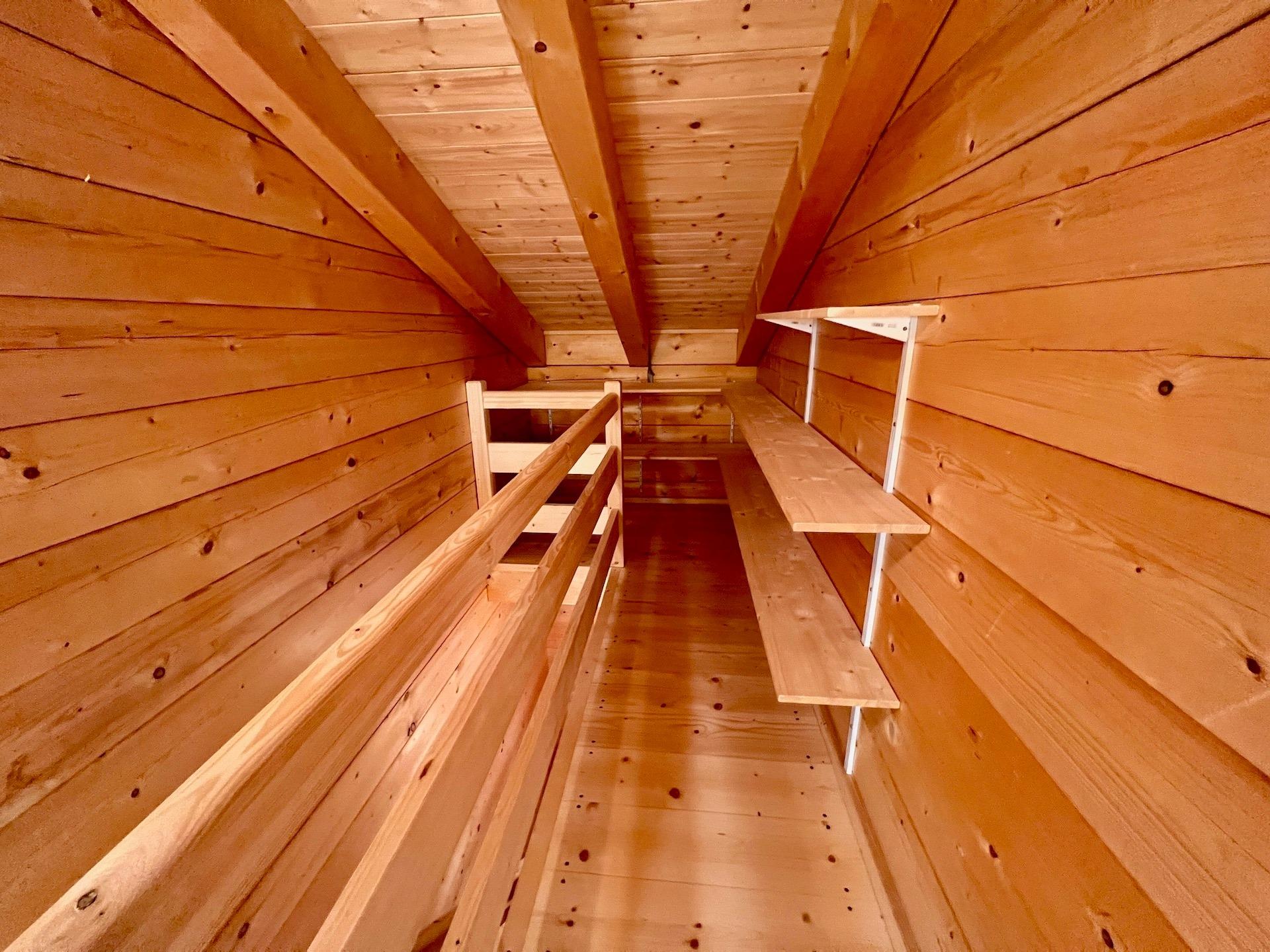 Die 2009 erbaute Hütte ist sehr gut ausgestattet. Im Erdgeschoss befindet sich ein Doppelzimmer sowie ein Schlafzimmer mit zwei Stockbetten. Im Obergeschoss haben im gemütlichen Matratzenlager unter dem Dach vier weitere Personen Platz.