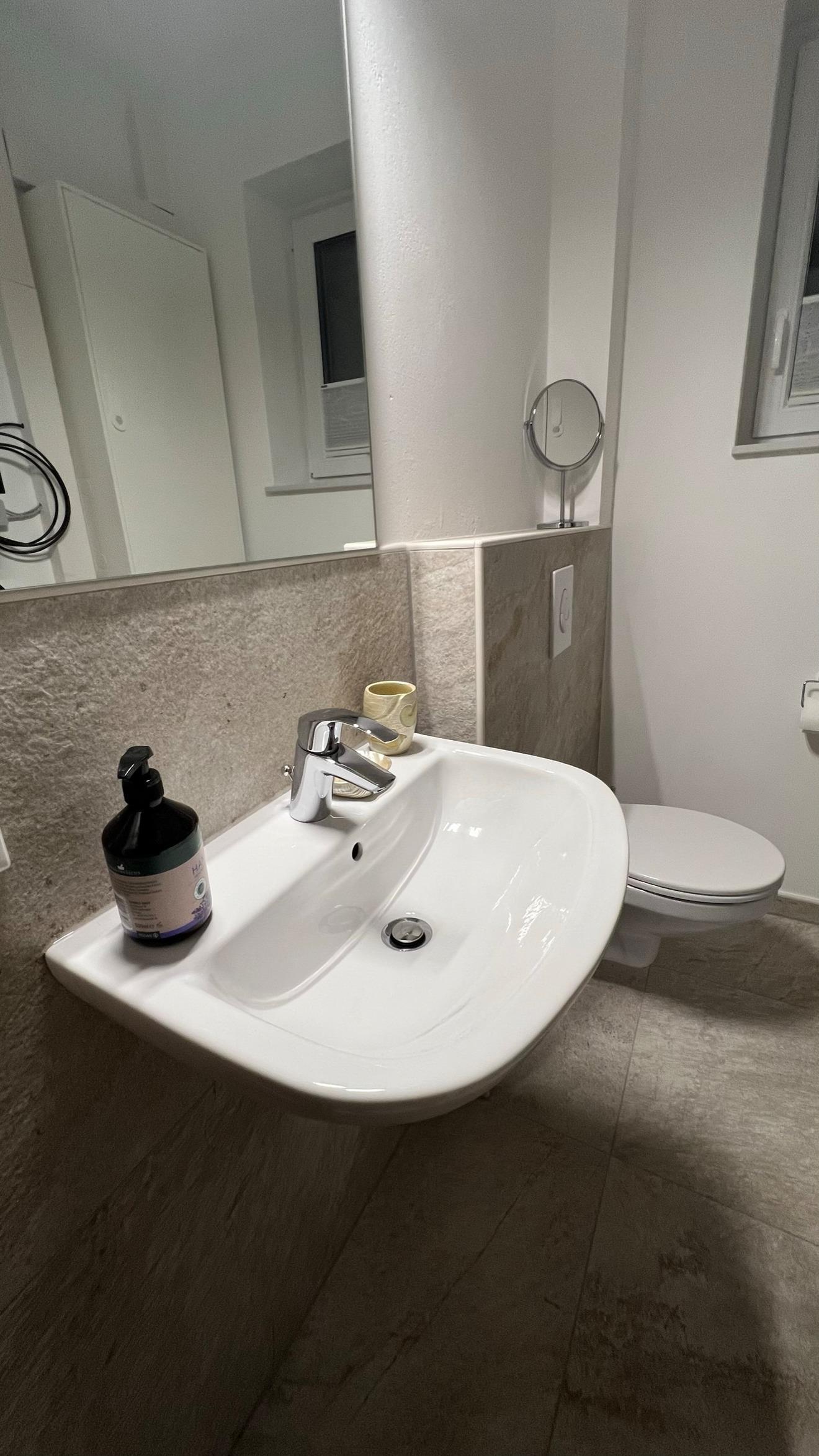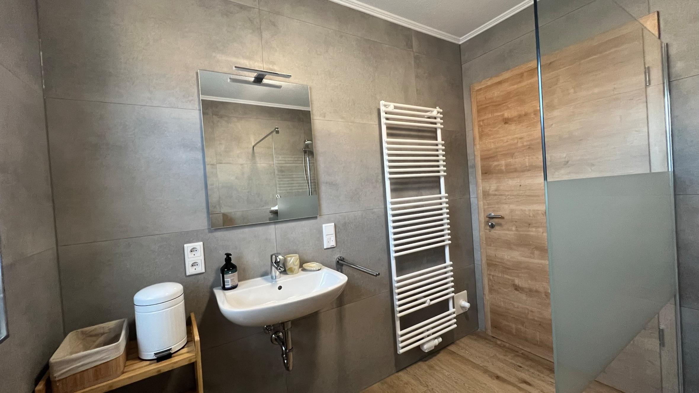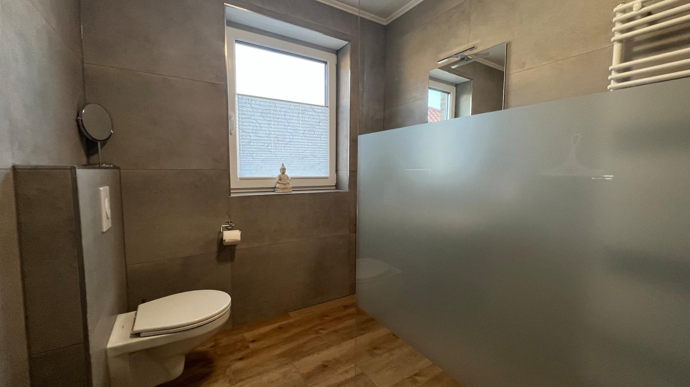 Im Haus befindet sich ein Badezimmer mit Dusche und zusätzlich ein Gäste-WC.