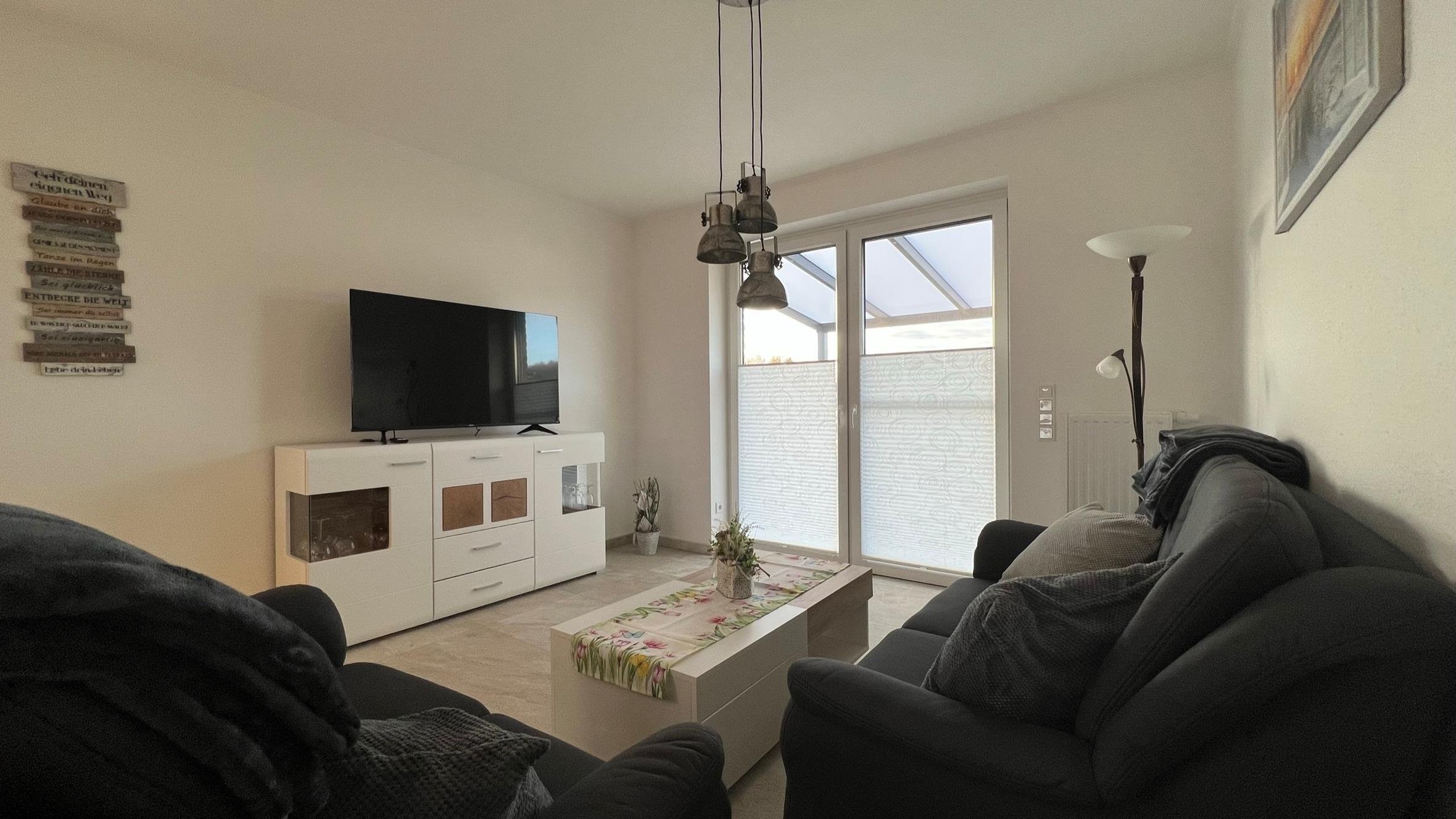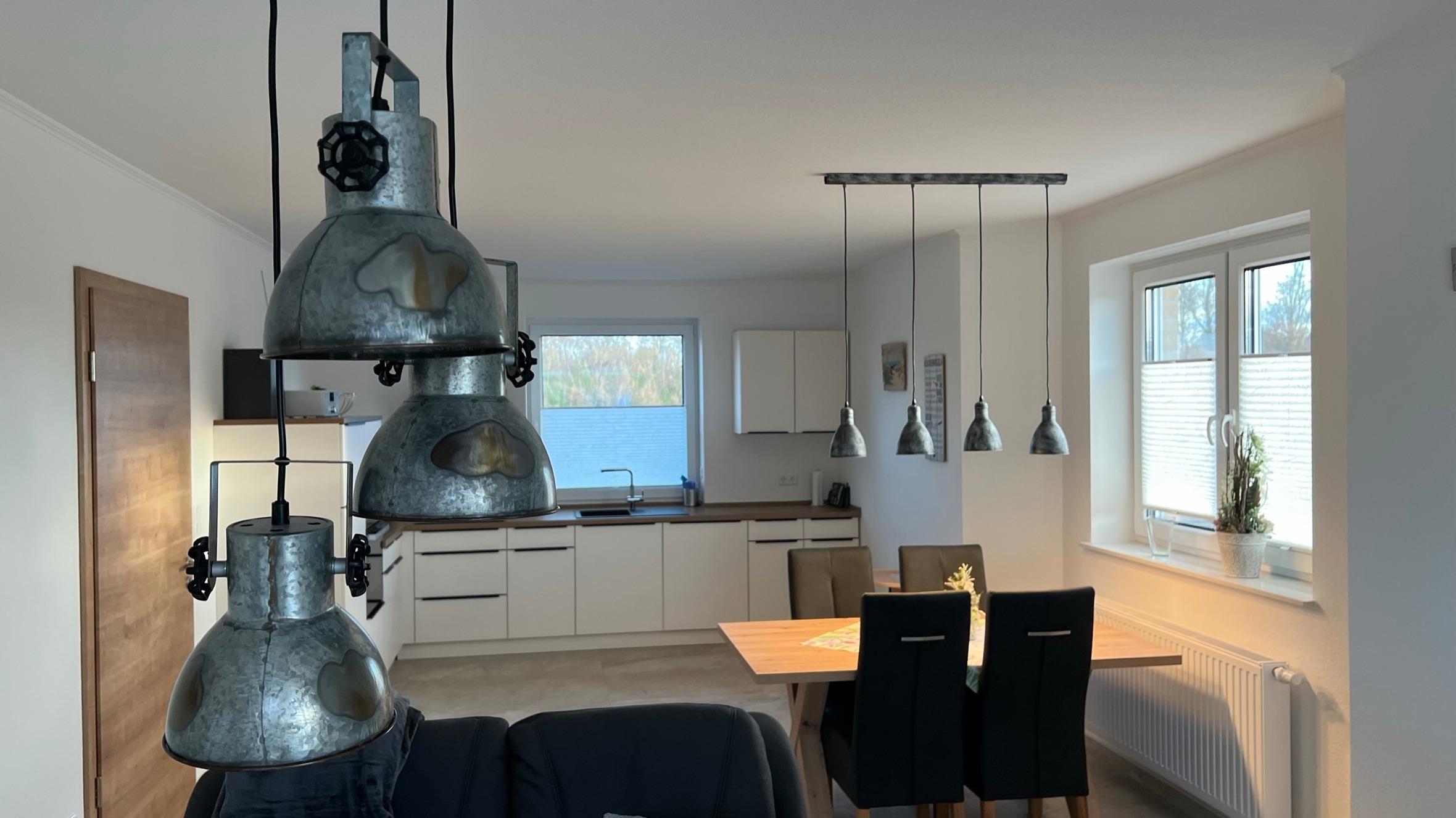 Das Herzstück des Hauses ist das Wohnzimmer mit einer offenen modernen Küche kombiniert sowie einer großzügigen Essecke. Im Haus sind große Fenster die viel Licht in die Räume lassen.