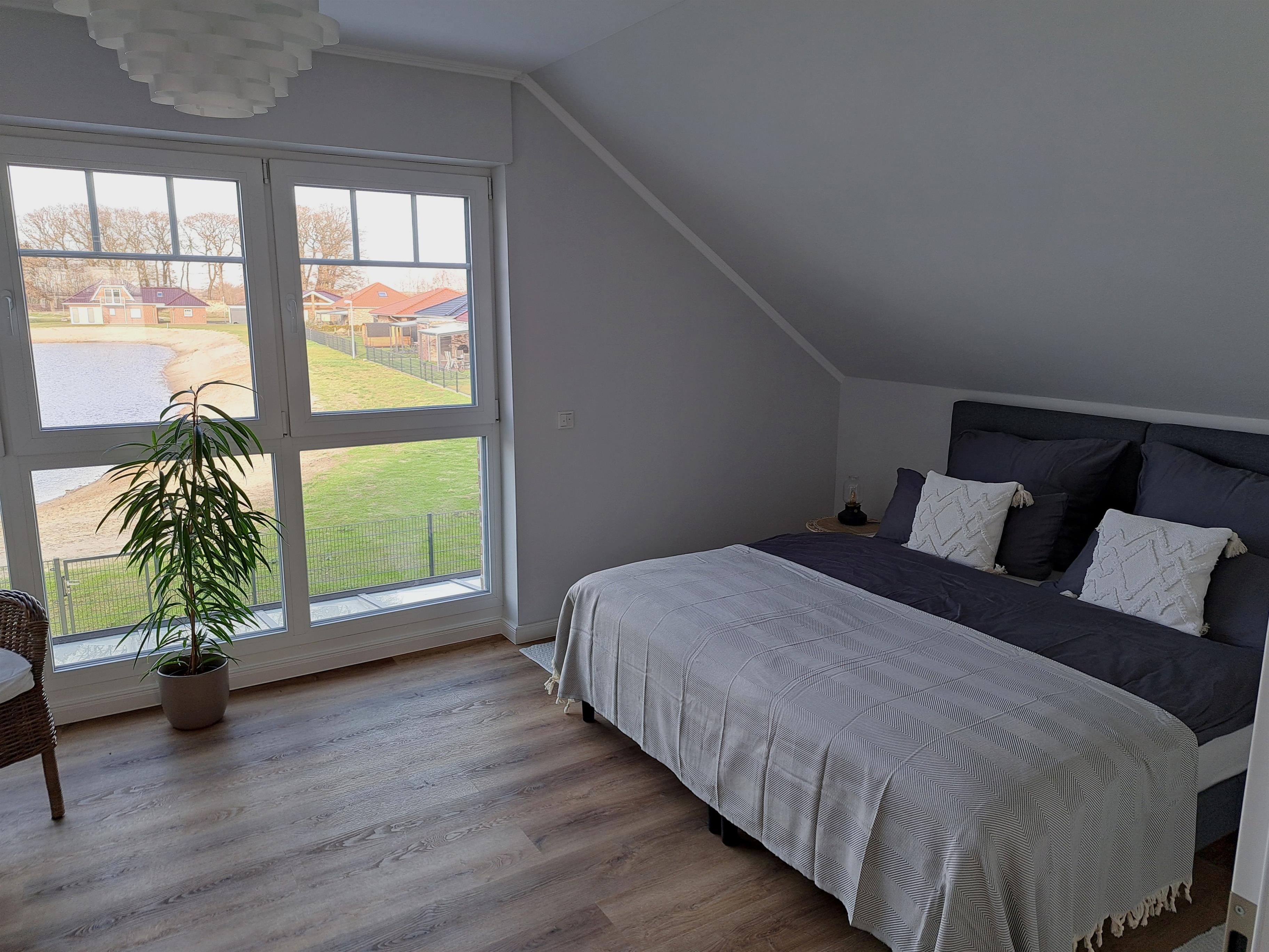 Das Haus ist modern und geschmackvoll eingerichtet. Das große Schlafzimmer im OG hat einen Mega-Blick über den Badesee. Das Wohnzimmer sowie das tolle Schlafzimmer im OG verfügen jeweils über einen Smart-TV.