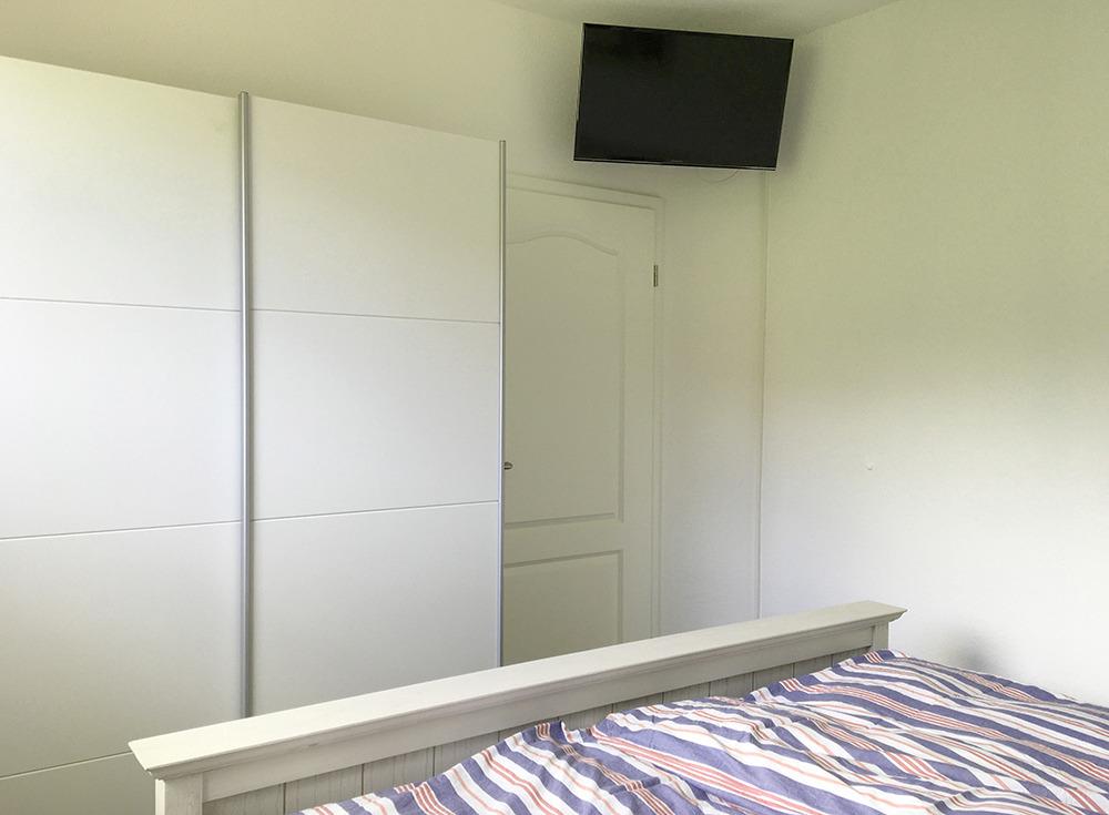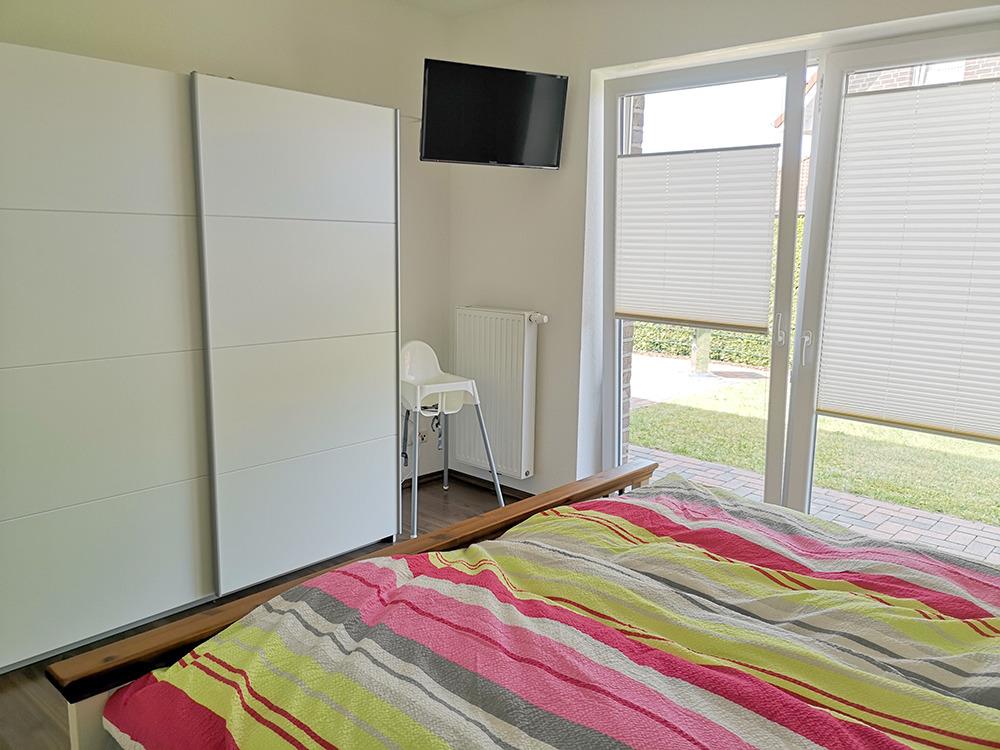Im EG gibt es 2 Schlafzimmer jeweils mit Doppelbett und TV.