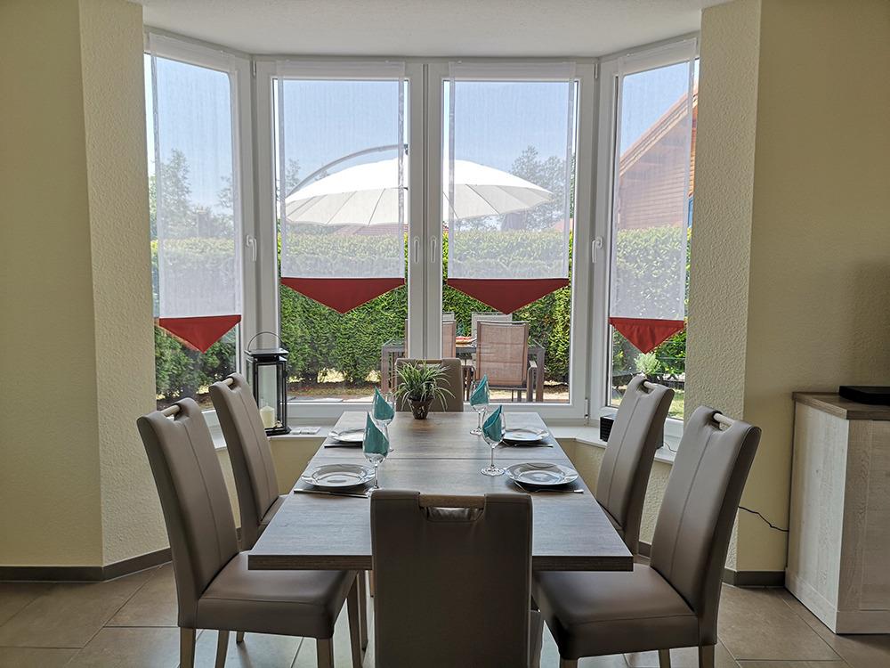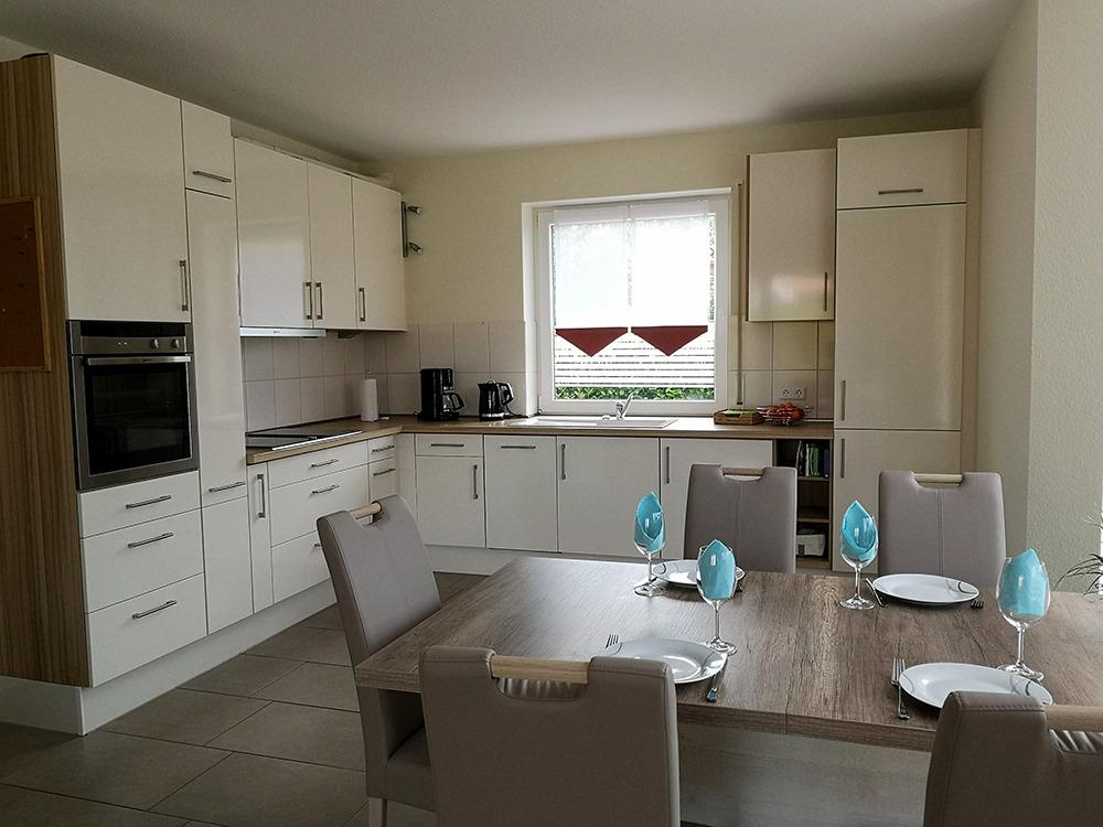 Hell und modern eingerichtet. Eingefriedeter Garten. 2 Schlafzimmer im fast barrierefreien EG. Im OG weitere 4 Schlafgelegenheiten.