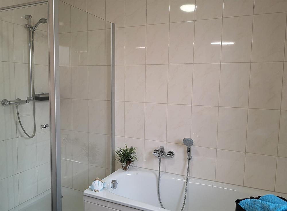Ferner befindet sich im EG ein Bad mit Dusche und Wanne.