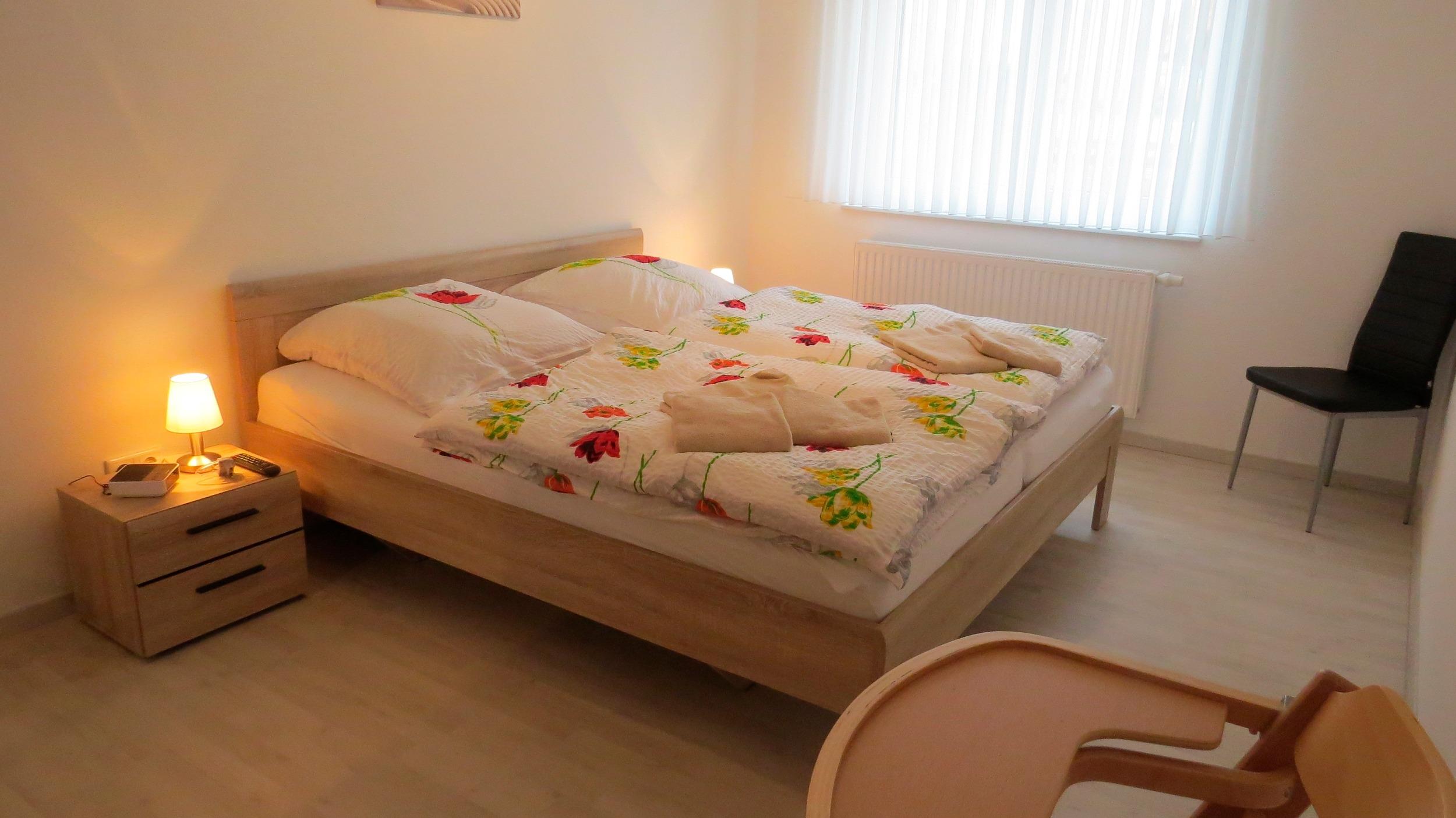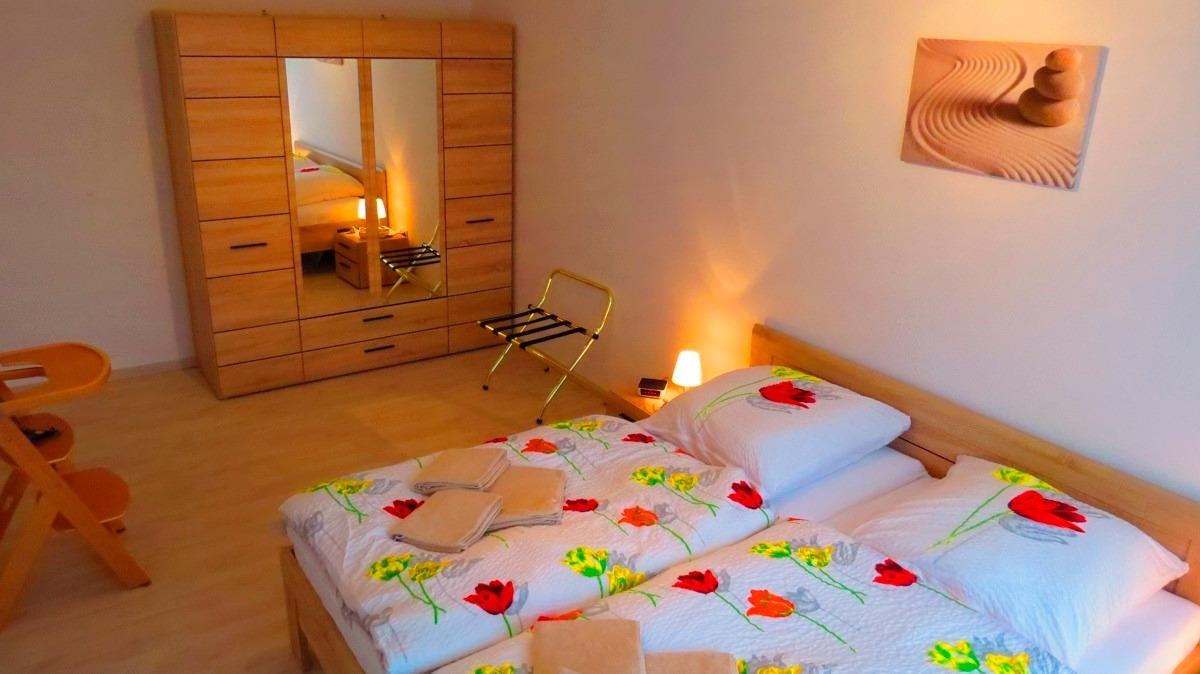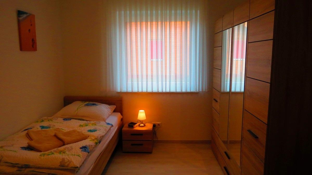 Drei Schlafzimmern befinden sich im Objekt. Zwei Schlafzimmer haben ein Doppelbett (180 x 200 cm), einen Kleiderschrank.