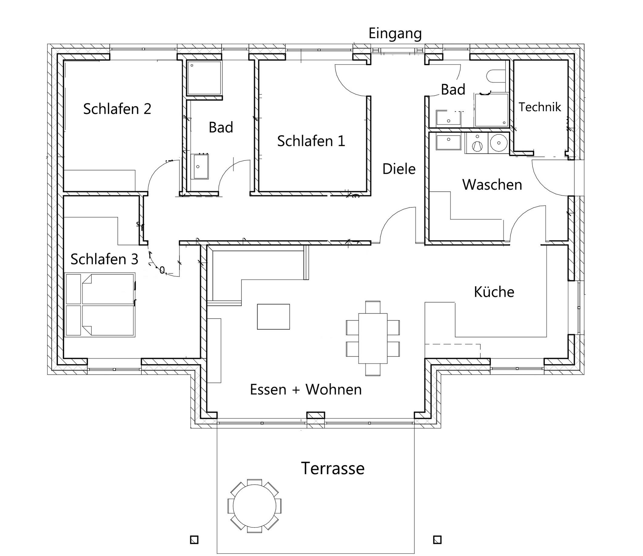 mit großem Esstisch