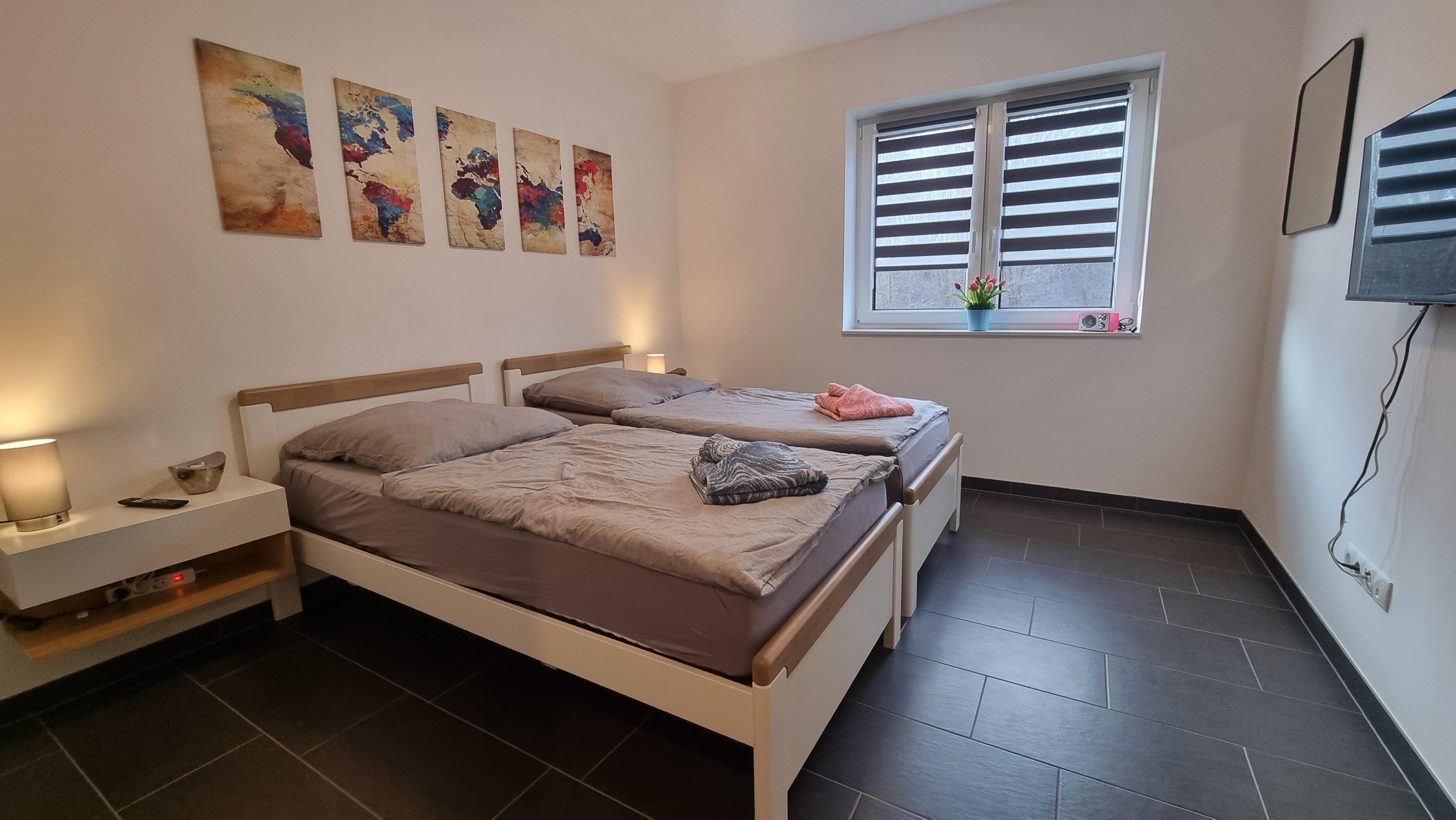 1 Schlafzimmer mit 2 Einzelbetten (nah beieinander mgl)