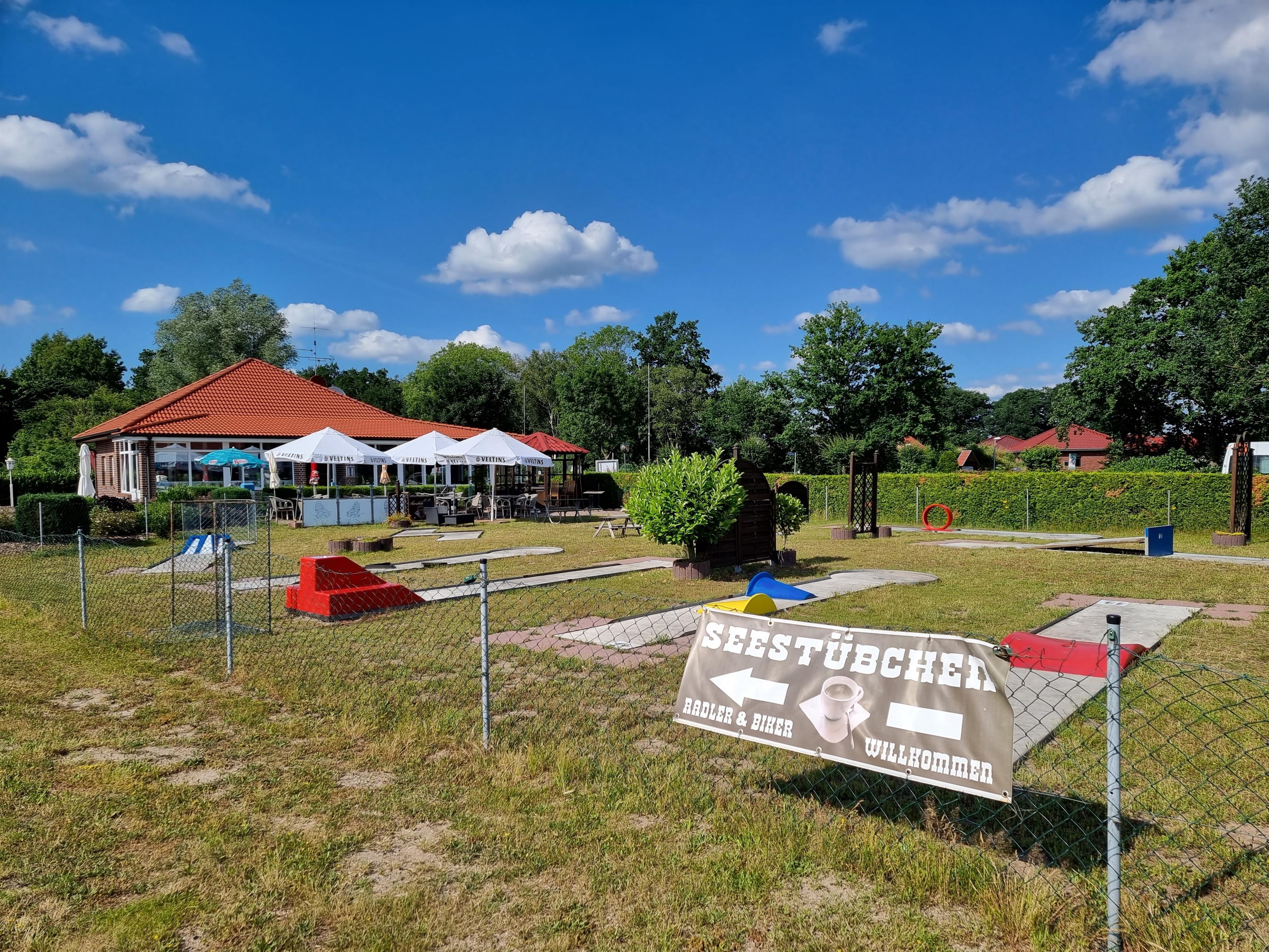 Ein gemütliches Restaurant mit Terrasse und Minigolfanlage