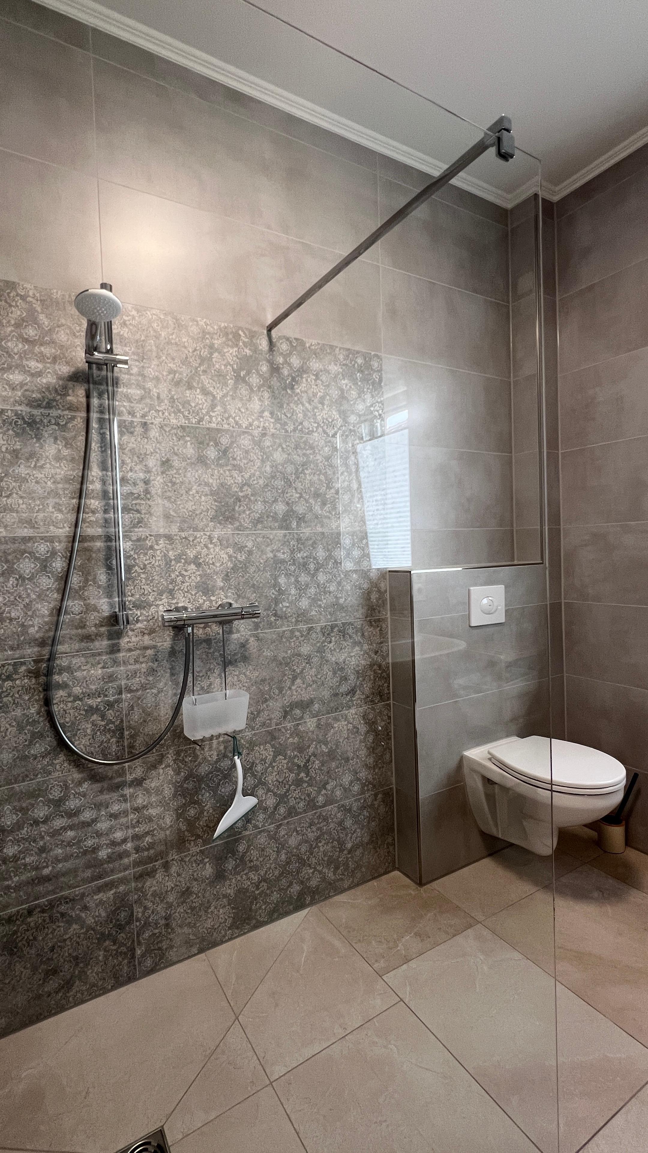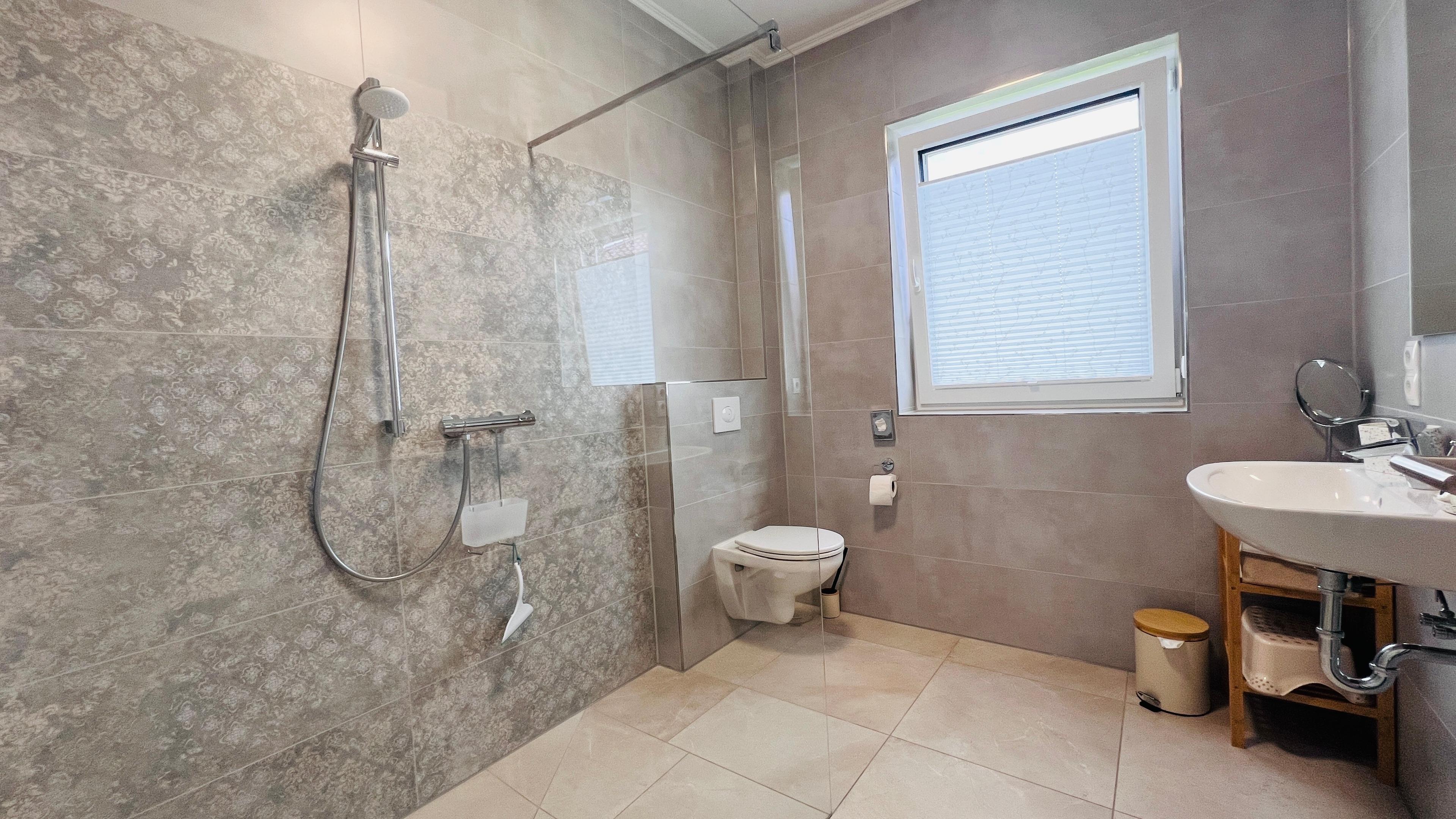 Im Haus befindet sich ein Badezimmer mit Dusche und zusätzlich ein Gäste-WC.