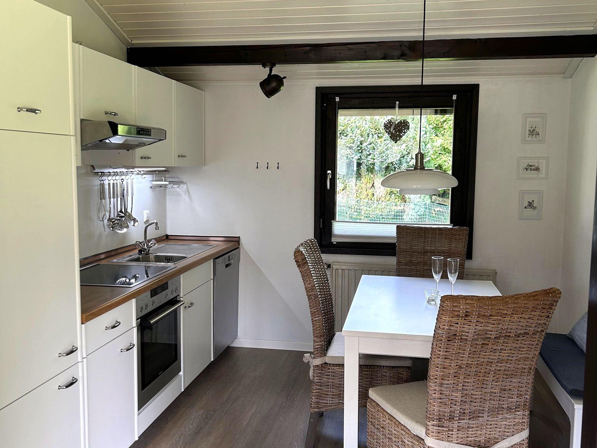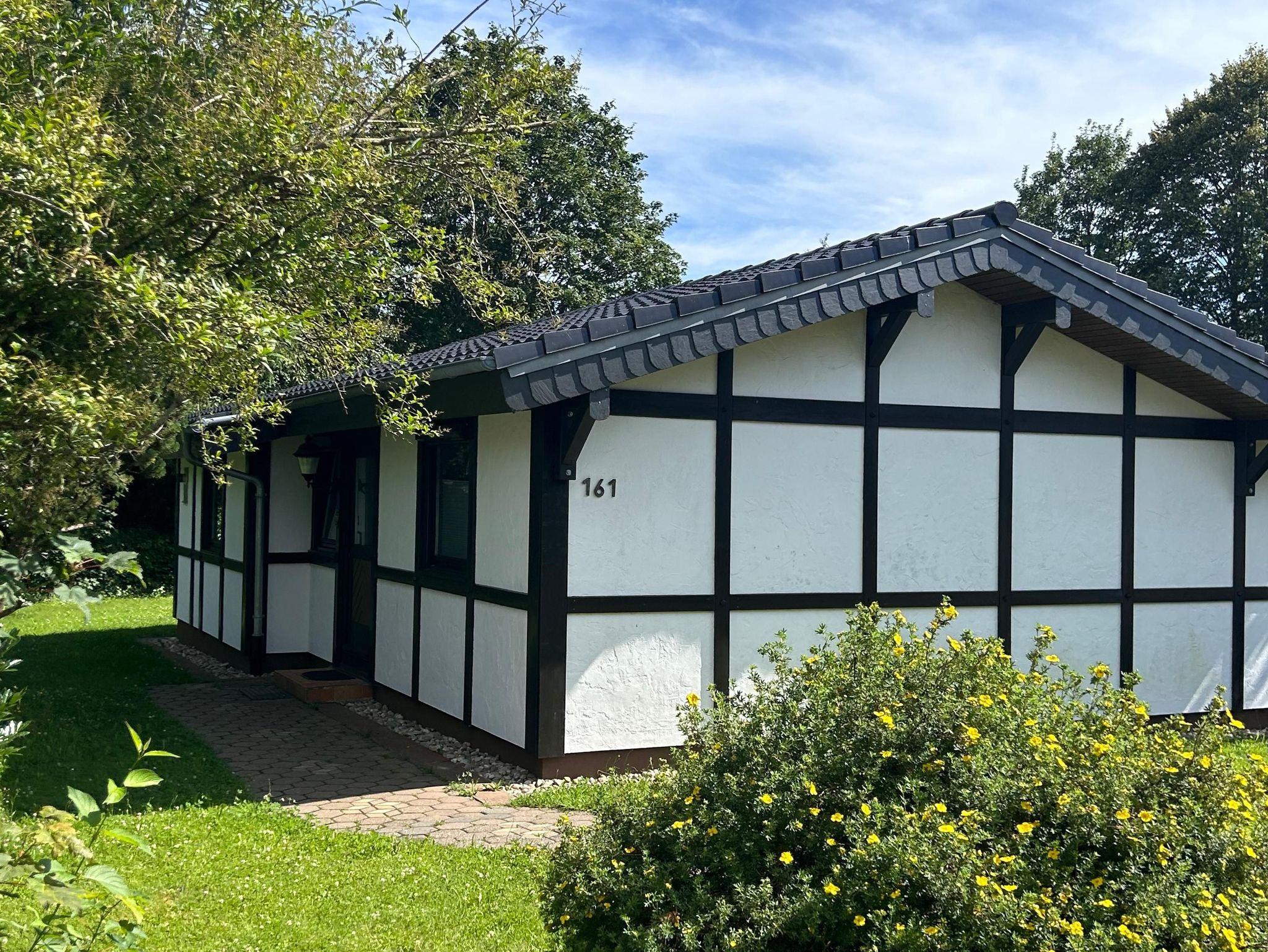 Der Ferienbungalow im Romantikpfad 161 ist ein idealer Rückzugsort für Naturliebhaber. Das Haus wurde vor kurzem renoviert und verfügt über ein neues und hervorragend gedämmtes Dach, das sowohl Energieeffizienz im Winter als auch Komfort in den Sommermonaten garantiert. Das Innere des Bungalows ist hell und modern eingerichtet. Große Fenster bieten einen wunderschönen Blick auf die umliegende Natur und lassen viel Tageslicht herein. Die Räumlichkeiten befinden sich alle auf einer Ebene und umfassen einen offenen Wohn- und Essbereich, der mit einer sehr gut ausgestatteten Küche kombiniert ist, sowie zwei gemütliche Schlafzimmer und einem Badezimmer mit Dusche und WC. Der Außenbereich lädt mit einer großzügigen Terrasse und viel Grünfläche zum Entspannen ein. Dank der naturnahen Lage können Gäste die Ruhe genießen, während Wanderwege, Wälder und Sehenswürdigkeiten in unmittelbarer Nähe liegen. Ein idealer Ort für Erholung, umgeben von der Schönheit der Natur, mit modernem Wohnkomfort.