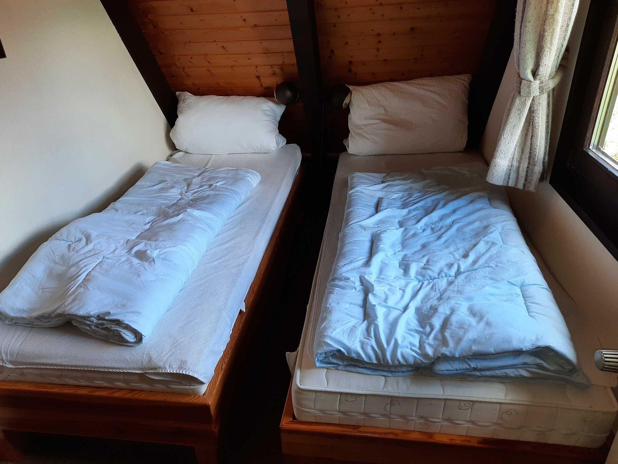 Das Nurdachhaus Winnetou bietet bis zu sechs Personen Platz. Es verfügt über eine voll ausgestattete Küche, einen Wohnraum mit TV und zwei separate Schlafzimmer. Diese sind mit drei Einzel- und einem Doppelbett ausgestattet und befinden sich im Obergeschoss. Außerdem gibt es eine Schlafkoje direkt unter dem Dach. Die Betten haben eine Größe von 90cm x 200cm. Das Hochbett hat eine große Matratze mit 140cm x 200cm.