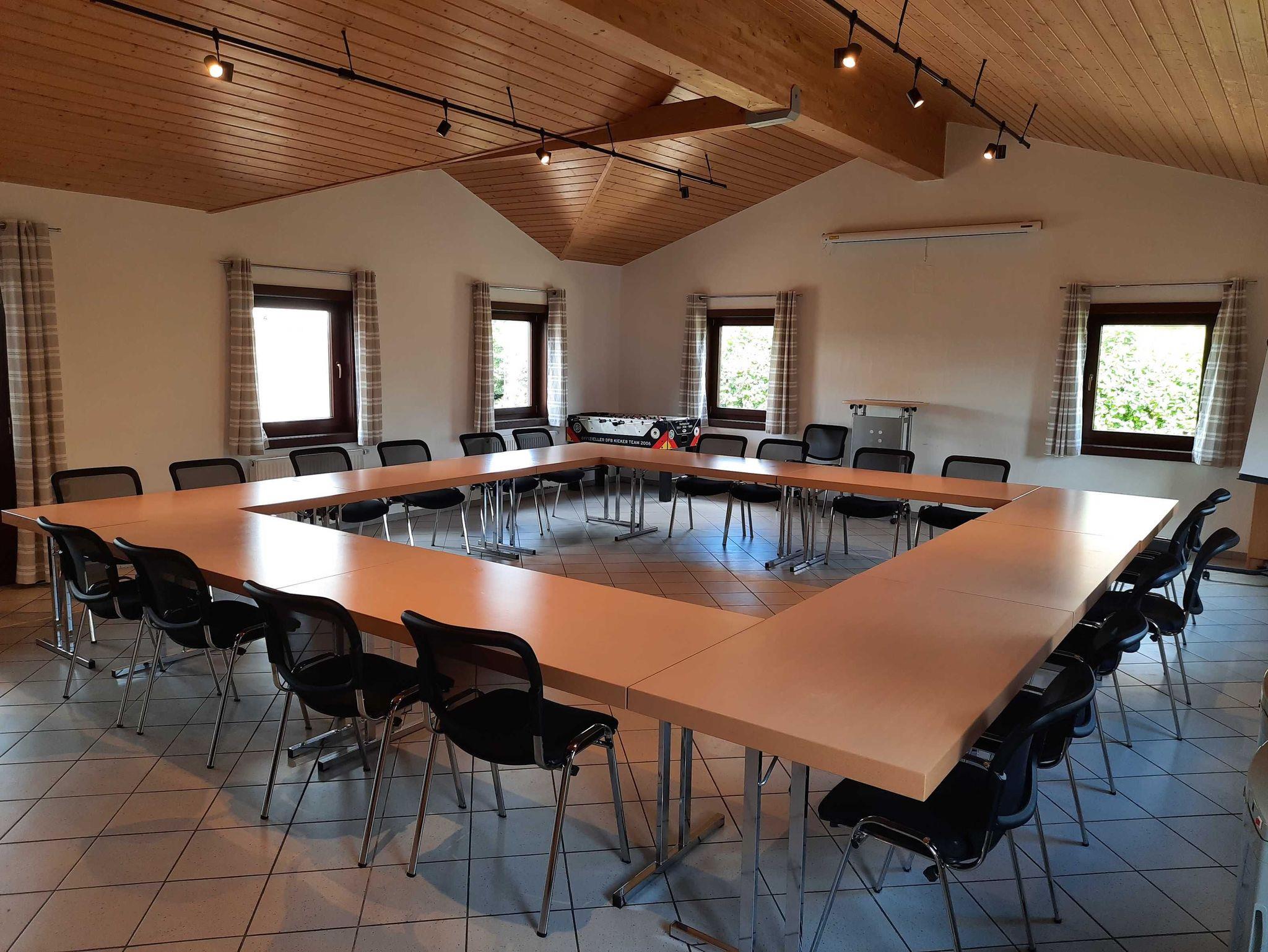 Wir bieten Ihnen im Feriendorf auch einen gemütlichen Gruppenraum für Veranstaltungen an. Der Raum ist ein idealer Ort für Familienfeiern und verfügt über eine neue Bestuhlung für bis zu 50 Personen. Im Gruppenraum gibt es einen großen Geschirrspüler, mehrere Kühlschränke sowie ausreichend Geschirr und Besteck. Darüber hinaus ist der Raum auch mit einem Beamer sowie einer Leinwand ausgestattet und eignet sich dadurch sehr gut für Seminare. Die Raummiete beträgt pro Tag 50,00 sowie 30,00 Endreinigung. Reservierungen nehmen wir gerne als Gruppenraumwunsch oder über unser Kontaktformular entgegen.