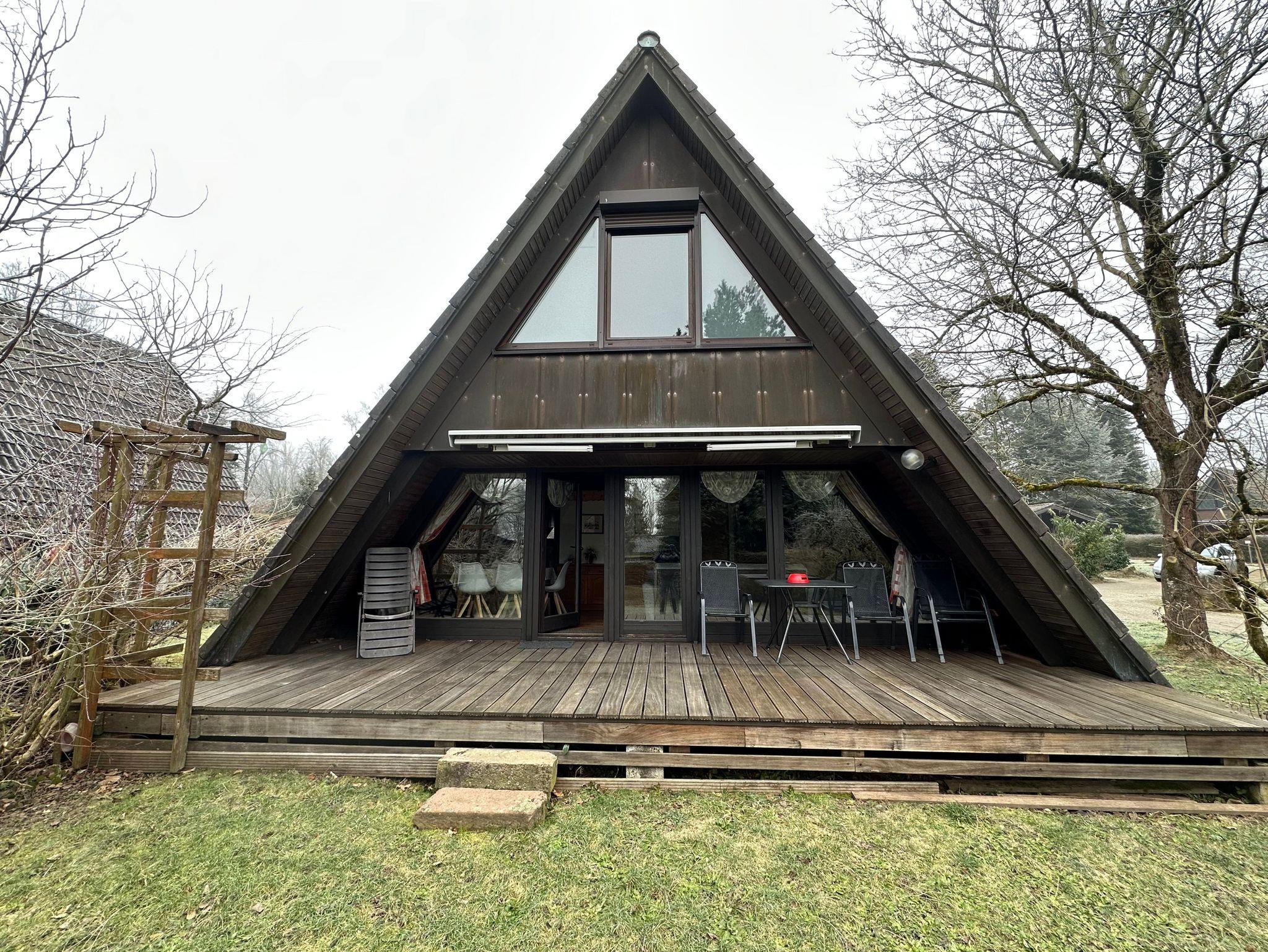 Das Nurdachhaus Winnetou bietet bis zu sechs Personen Platz. Es verfügt über eine voll ausgestattete Küche, einen Wohnraum mit TV und zwei separate Schlafzimmer im Obergeschoss.