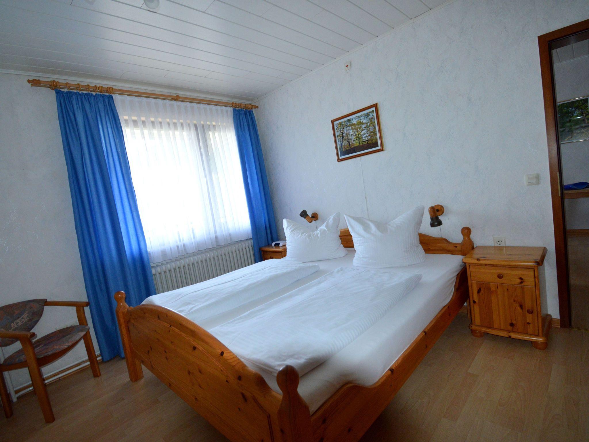Die Ferienwohnung hat ein separates Schlafzimmer, in dem ein Doppelbett steht.