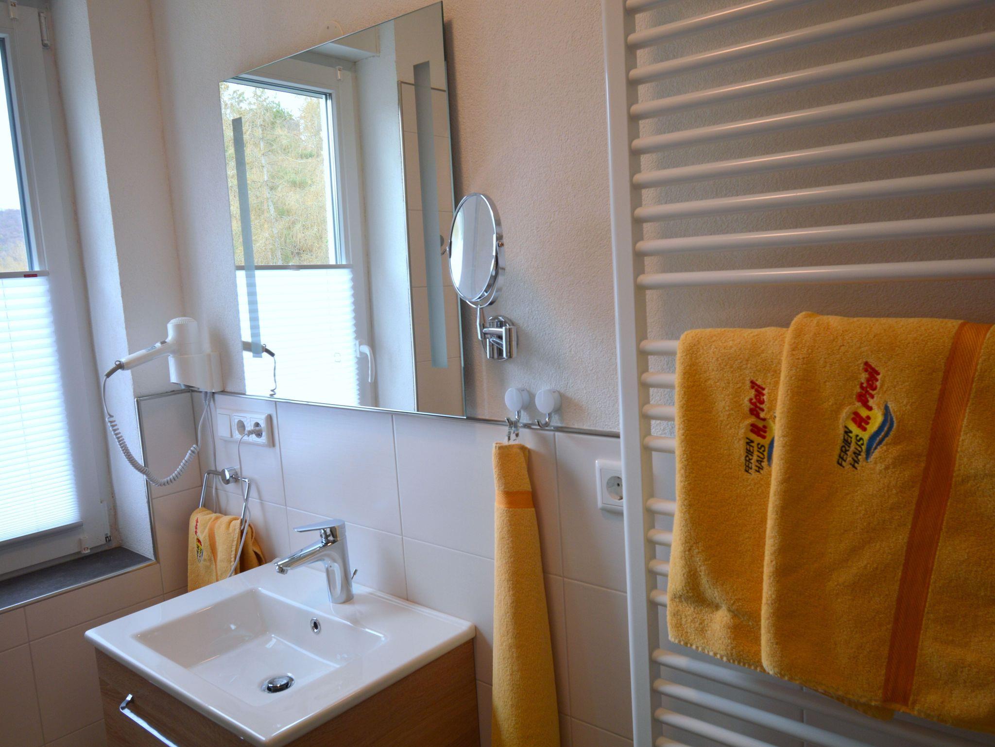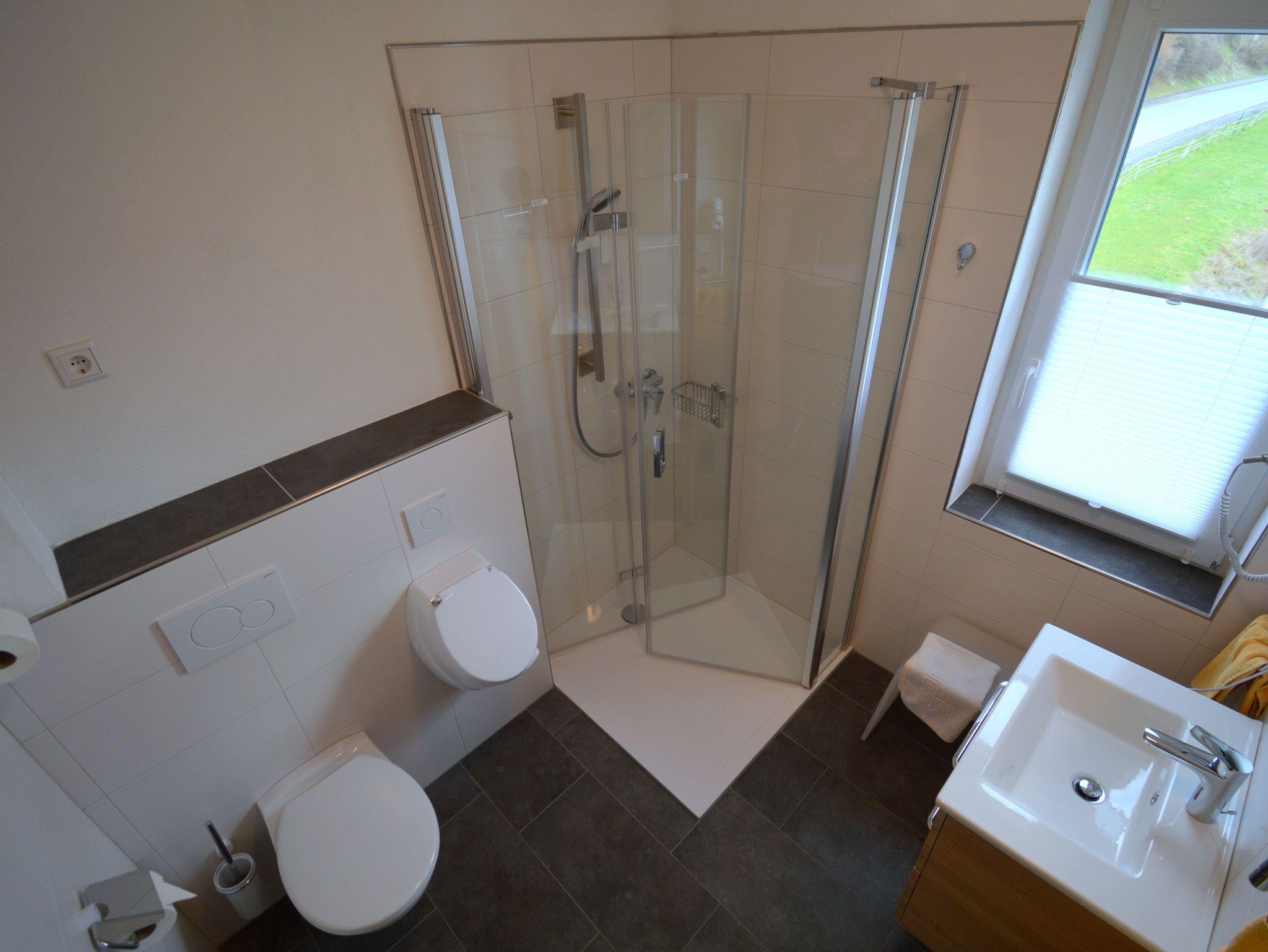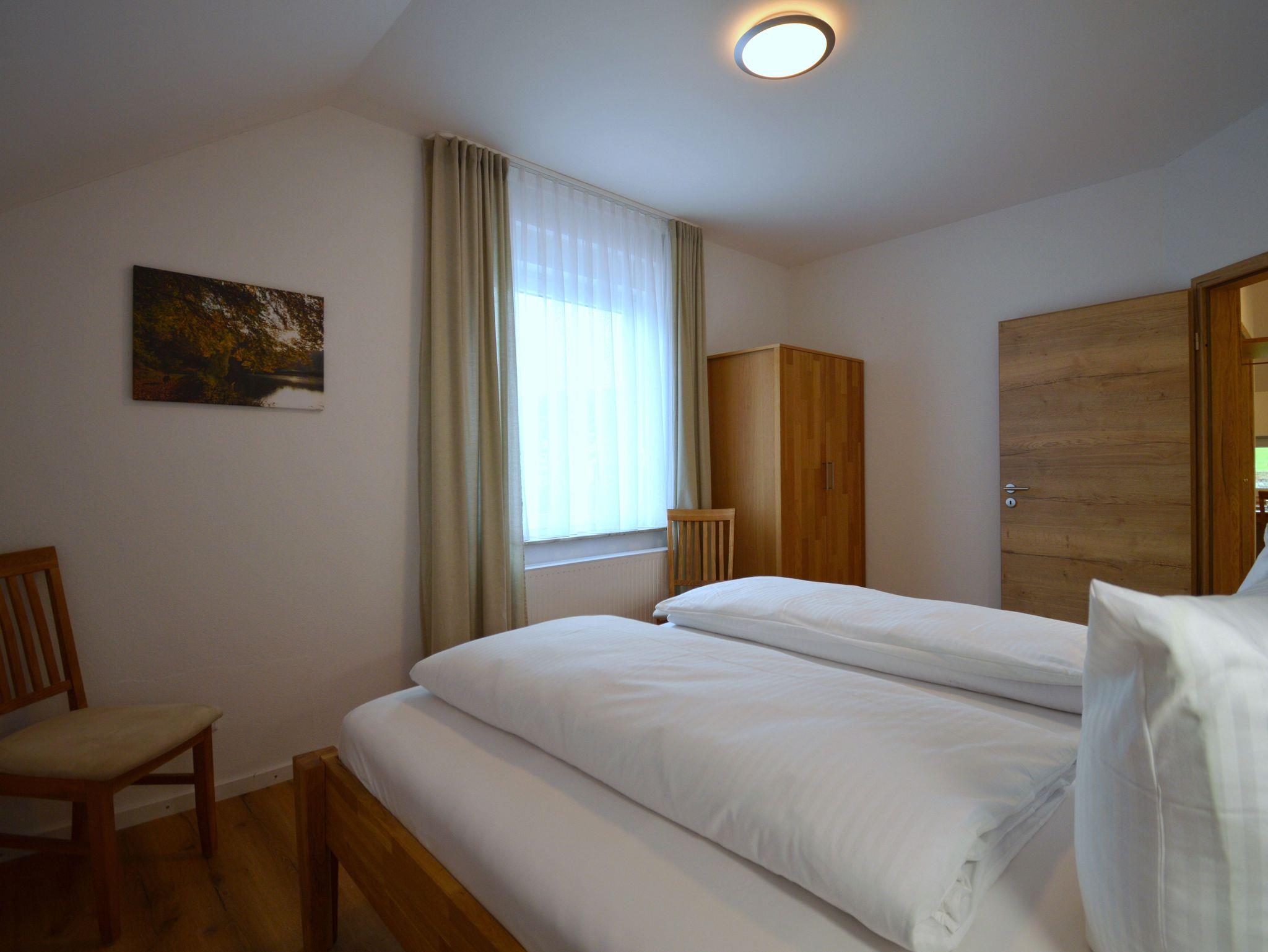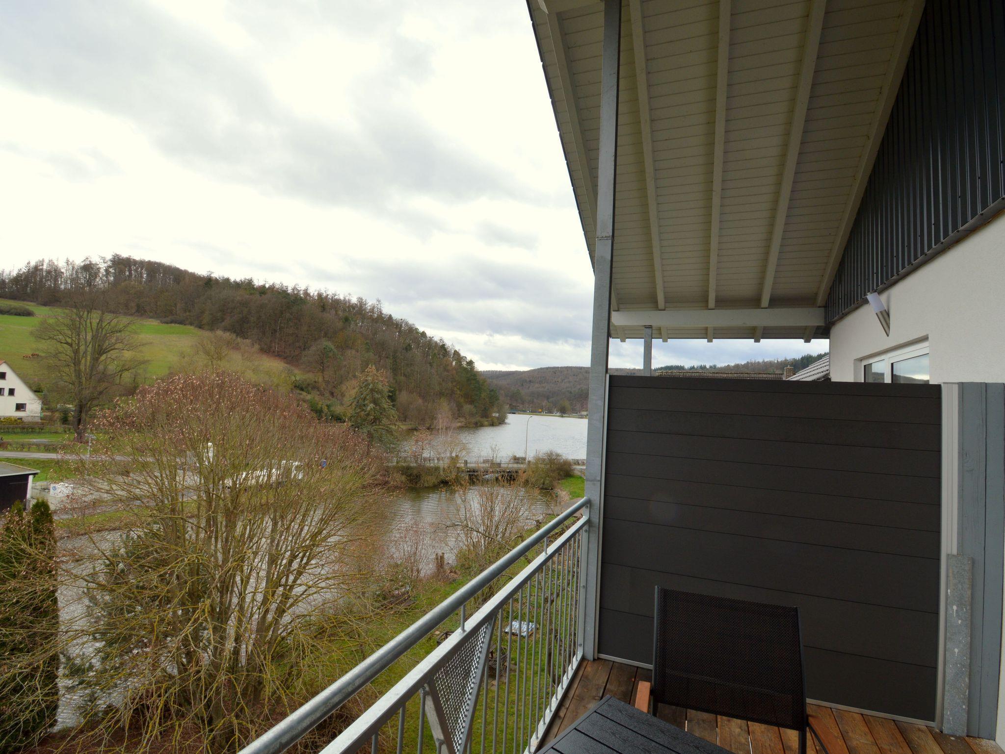 Die moderne Zwei Zimmer Wohnung liegt im zweiten Stock unseres Hauses. Die Wohnung ist mit 47 qm perfekt für einen Urlaub zu zweit. Das Schlafzimmer ist mit einen großen Doppelbett (180 cm x 200 cm) ausgestattet. Besonderes Highlight im Schlafzimmer sind die Nachttischlampen mit verschiedenen Lichtstimmungen, je nachdem, ob Sie helles Licht zum Lesen benötigen oder ein warmes Licht zum Relaxen. Die Schlafzimmer lassen sich für besonders erholsame Nächte komplett verdunkeln. Auf der bequemen Couch haben Sie nach einem erlebnisreichen Tag einen herrlichen Ausblick auf die Natur. Die große Küche ist ausgestattet mit Kühl- und Gefrierschrank, Spülmaschine, Kaffeefiltermaschine, Wasserkocher, Toaster und Eierkocher und vieles andere, was Sie zum Kochen brauchen. Das Badezimmer verfügt neben dem WC über ein Urinal und eine ebenerdige Dusche mit mobilen Duschsitz. Auf dem Balkon lässt es sich in der Morgensonne mit einem Blick auf den Nationalpark und das Vorstaubecken des Edersees gut frühstücken.