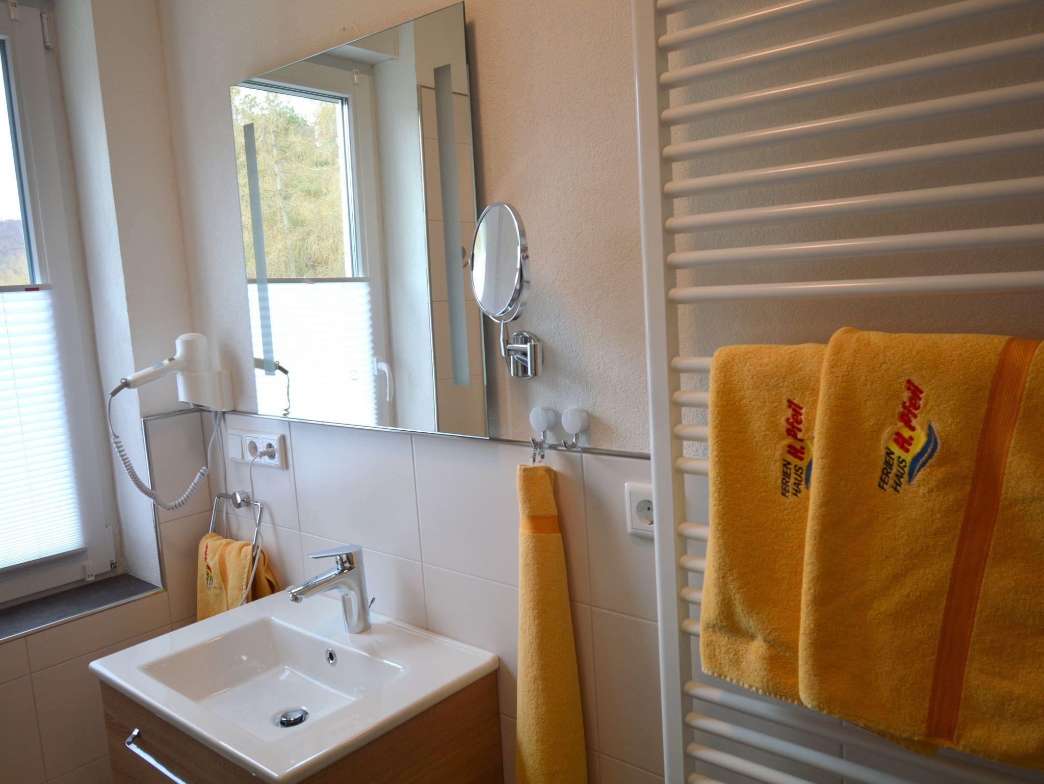 Die moderne Zwei Zimmer Wohnung liegt im ersten Stock unseres Hauses. Die Wohnung ist mit 48 qm perfekt für einen Urlaub zu zweit. Das Schlafzimmer ist mit einen großen Doppelbett (180 cm x 200 cm) ausgestattet. Besonderes Highlight im Schlafzimmer sind die Nachttischlampen mit verschiedenen Lichtstimmungen, je nachdem, ob Sie helles Licht zum Lesen benötigen oder ein warmes Licht zum Relaxen. Die Schlafzimmer lassen sich für besonders erholsame Nächte komplett verdunkeln. Auf der bequemen Couch haben Sie nach einem erlebnisreichen Tag einen herrlichen Ausblick auf die Natur. Die große Küche ist ausgestattet mit Kühl- und Gefrierschrank, Spülmaschine, Kaffeefiltermaschine, Wasserkocher, Toaster und Eierkocher und vieles andere, was Sie zum Kochen brauchen. Das Badezimmer verfügt neben dem WC über ein Urinal und eine ebenerdige Dusche mit mobilen Duschsitz. Auf dem Balkon lässt es sich in der Morgensonne mit einem Blick auf den Nationalpark und das Vorstaubecken des Edersees gut frühstücken.
