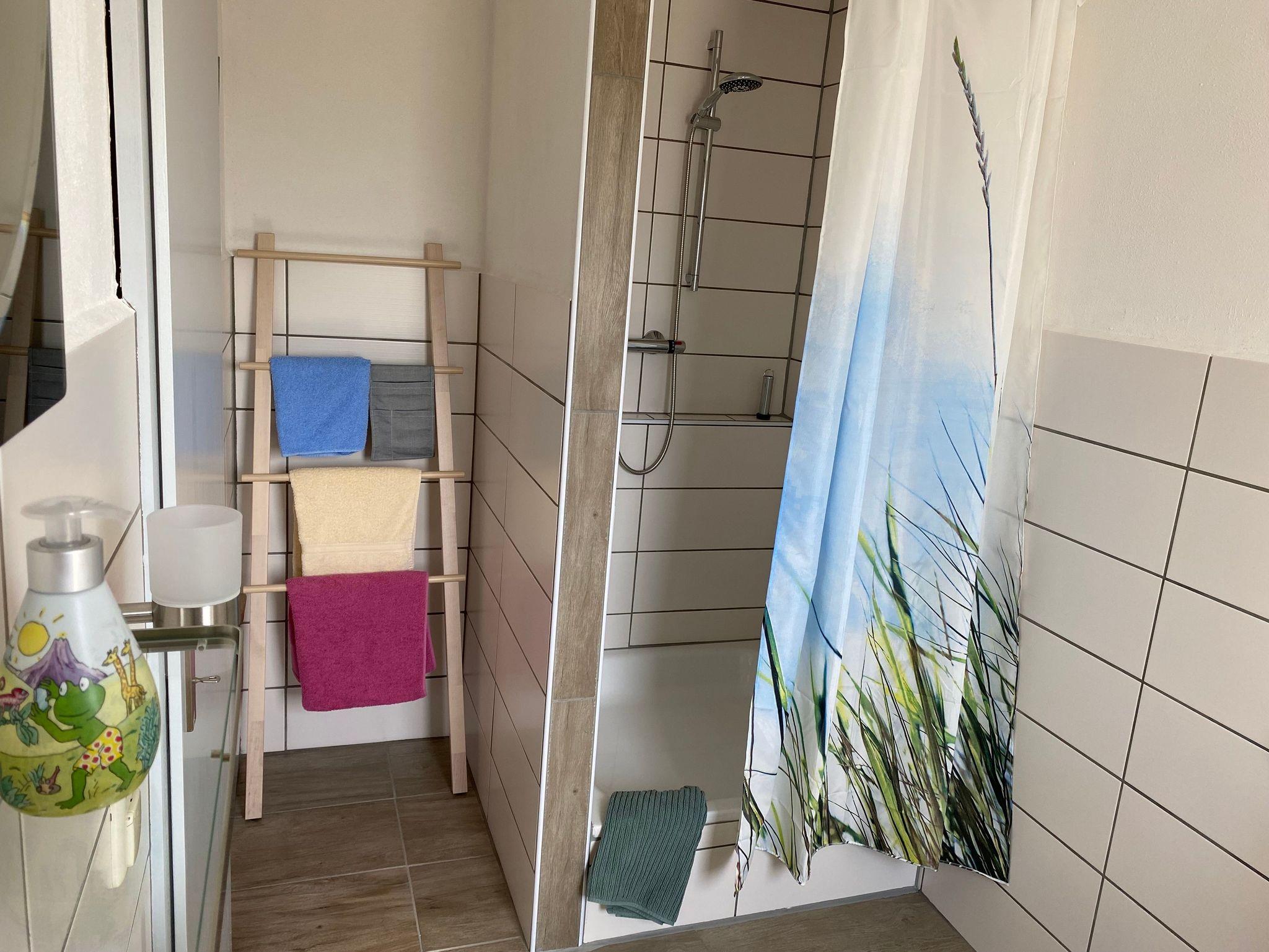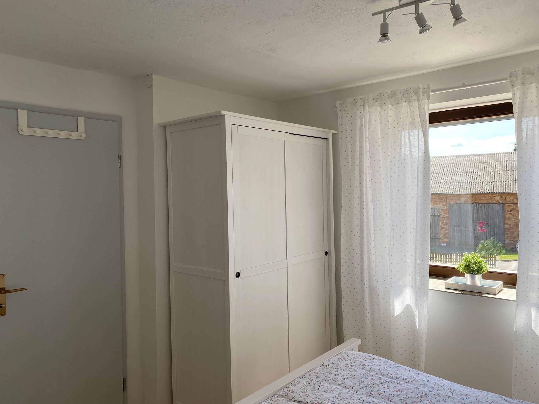 Unsere Ferienwohnung verfügt über ein Schlafzimmer mit Doppelbett, im Wohnzimmer ist ein umfunktionierbares Schlafsofa für zwei Personen vorhanden. Auf Wunsch kann auch ein Kinderbett (1,50 m x 1,00 m) zur Verfügung gestellt werden. An das Wohnzimmer grenzt ein großer Balkon mit Sitzgarnitur und schönem Gartenblick.