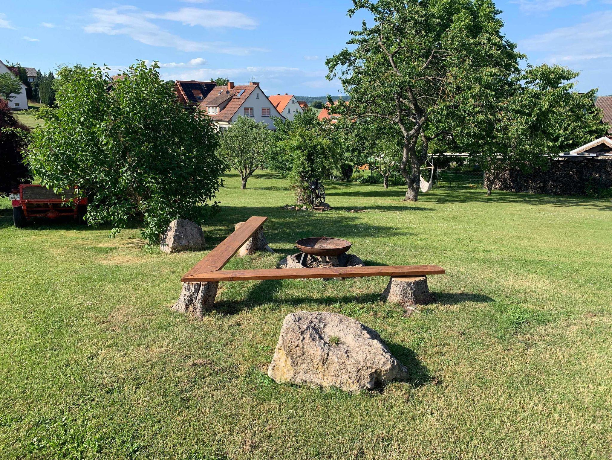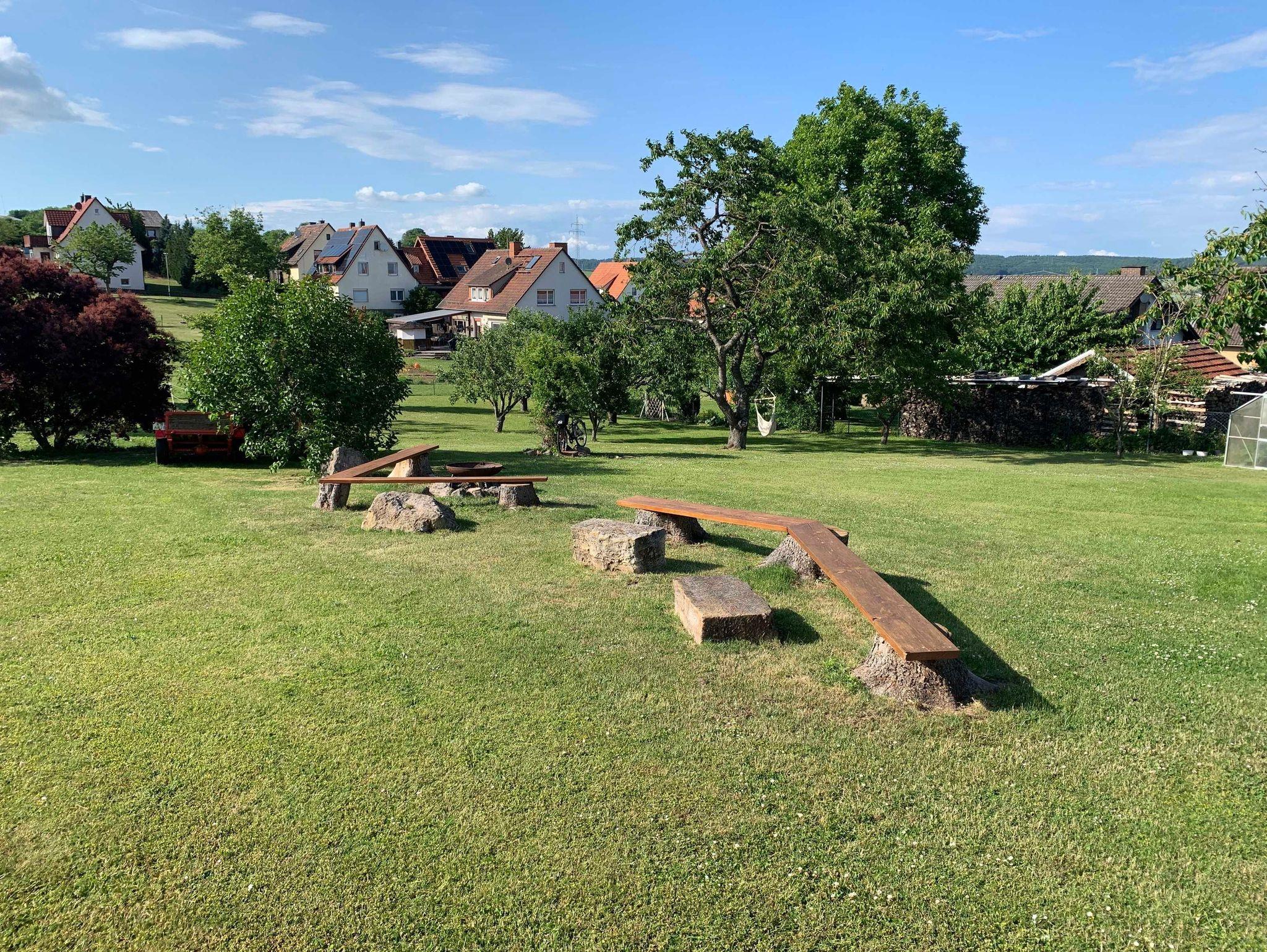 Unser Haus befindet sich in ruhiger, idyllischer Lage mit angrenzender riesiger Rasenfläche mit angelegten Obstbäumen. Ein integrierter schön angelegter Lagerfeuerplatz ist auf Anfrage nutzbar.