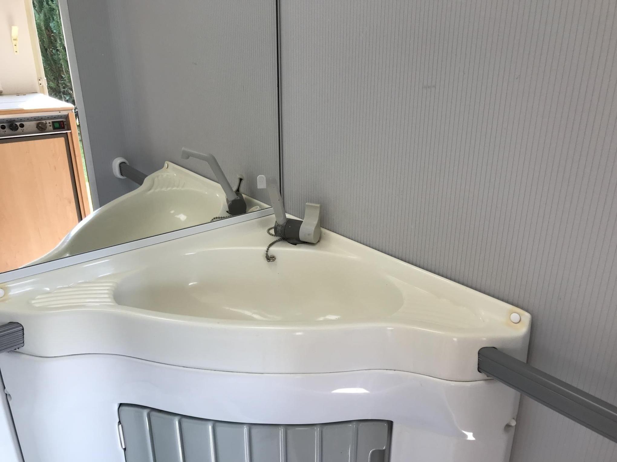2 Toiletten und 1 Dusche stehen für den gesamten Platz ( Wohnwagen und Wohnmobile) kostenlos zur Verfügung.