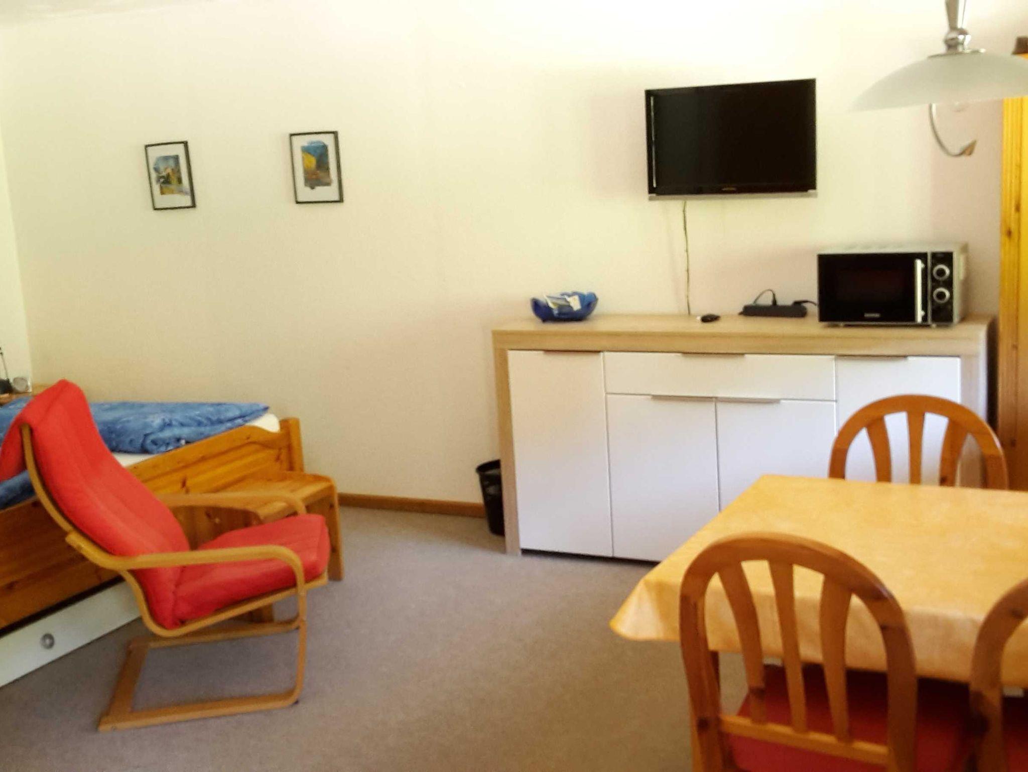 Ferienwohnung mit 32 m2 für bis zu 3 Personen, Nichtraucherwohnung, 1 Wohn-/Schlafbereich TV, Wohnküche, Dusche/WC und Balkon. Vor Ort fällt eine Kurtaxe in Höhe von 2,20 EUR pro Person pro Tag an. Kinder von 0-16 Jahren zahlen keine Kurtaxe.