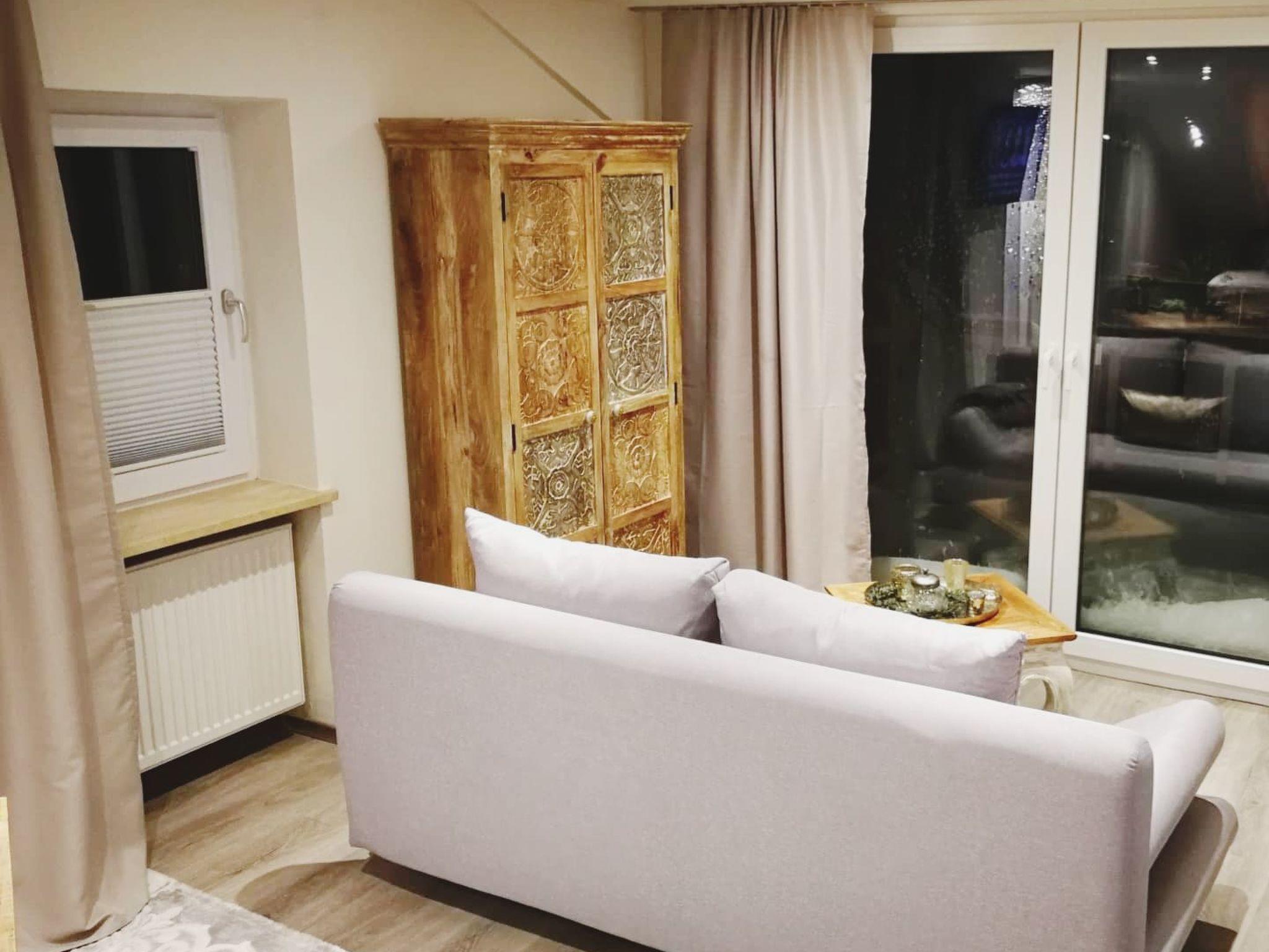 The approx. 50 square metre loft is furnished in a minimalist design. Walnut, white and green make the room very cosy. 3 windows flood the room with natural light. The ideal oasis of well-being for 2 people.