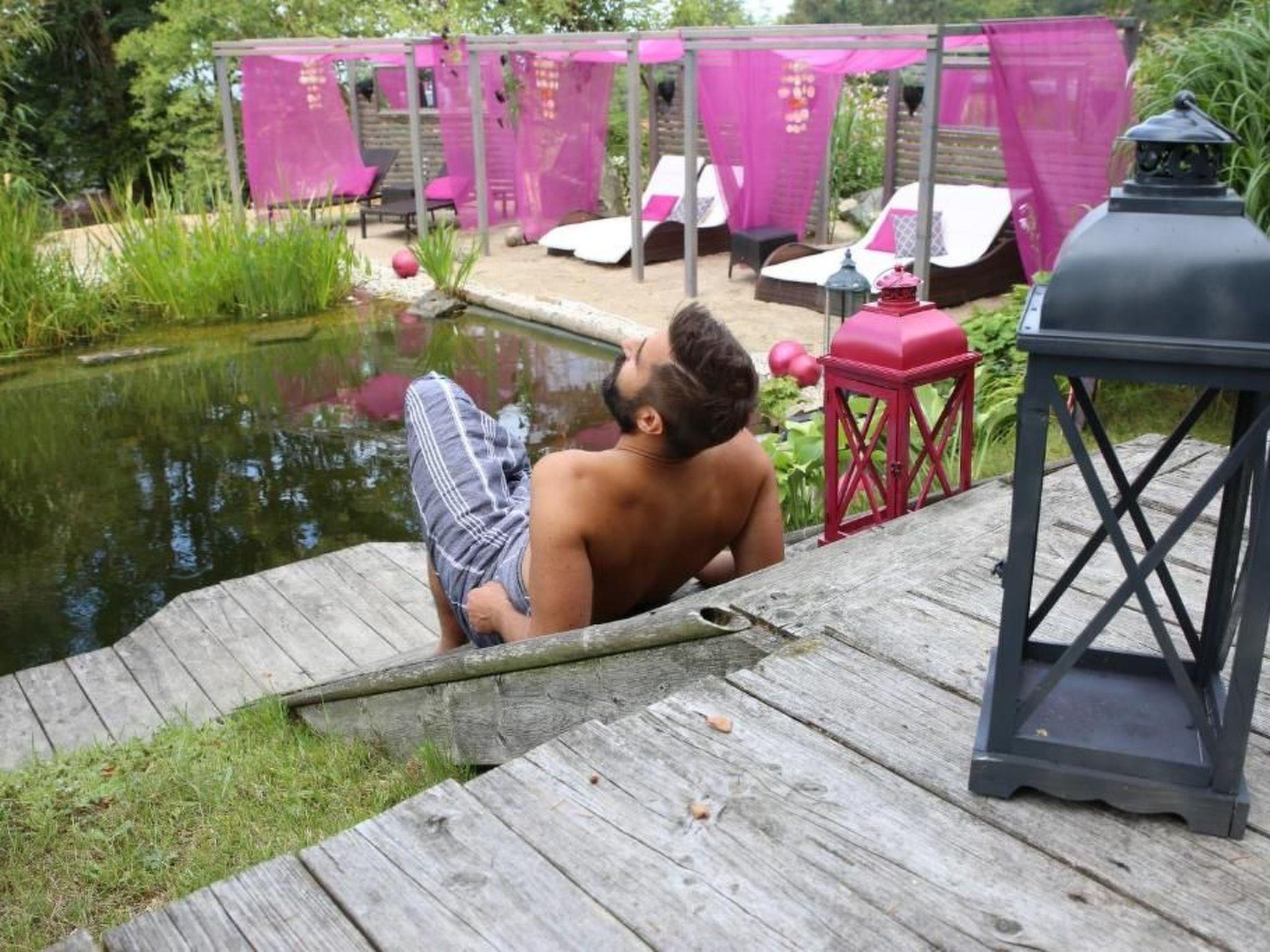 Bed linen and towels are provided. Swimming pond with sunbathing lawn and sandy beach as well as cosy terrace with barbecue facilities. Car parking space available! 300 square metre wellness and beauty studio with sauna and outdoor pool directly in the house.