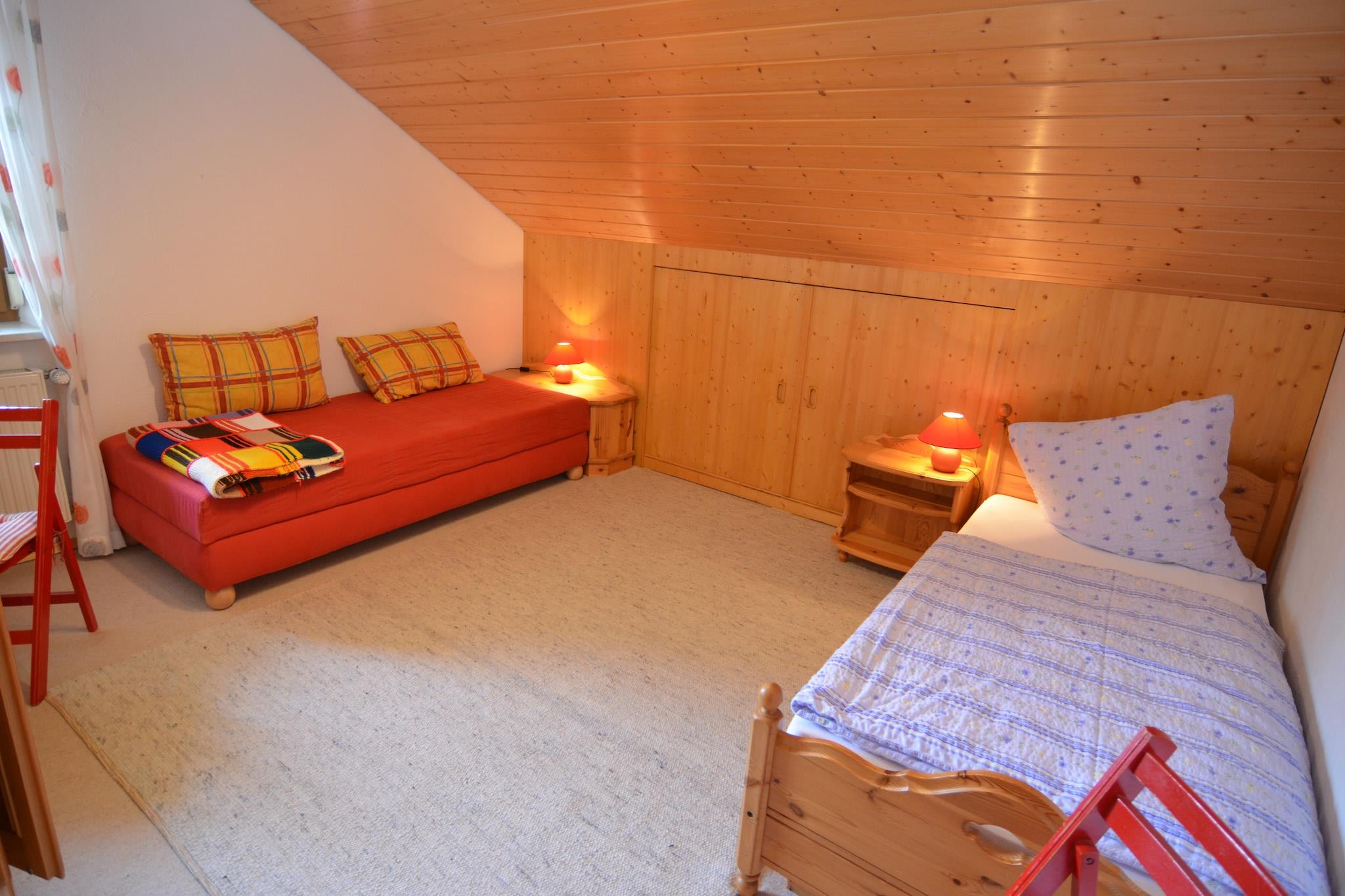 Denne hyggelige ferielejlighed i Bernhardsberg tilbyder en fredelig familieferie med en betagende udsigt over det tyske landskab. Med to soveværelser kan den komfortabelt rumme op til fire gæster og er ideel til en lille familie eller et parferie. Området er perfekt til friluftsentusiaster og tilbyder muligheder for vandreture, mountainbiking, paragliding, ridning, golf og vintersport såsom langrend og alpint skiløb. Nærliggende attraktioner inkluderer Passau, Dreisessel Nationalpark, Hauzenberg Stone Worlds, Pullman City og Waldkirchen Adventure Pool. Dagsture til Østrig og Tjekkiet er også let tilgængelige. Lejligheden er veludstyret og har et badekar med bruser og adgang til en fælles sauna (mod betaling). Gæsterne kan nyde den friske luft på den private balkon eller slappe af på den fælles haveterrasse. Familier med børn vil sætte pris på legepladsen og sandkassen på stedet. En barneseng og højstol er til rådighed for ekstra bekvemmelighed.
