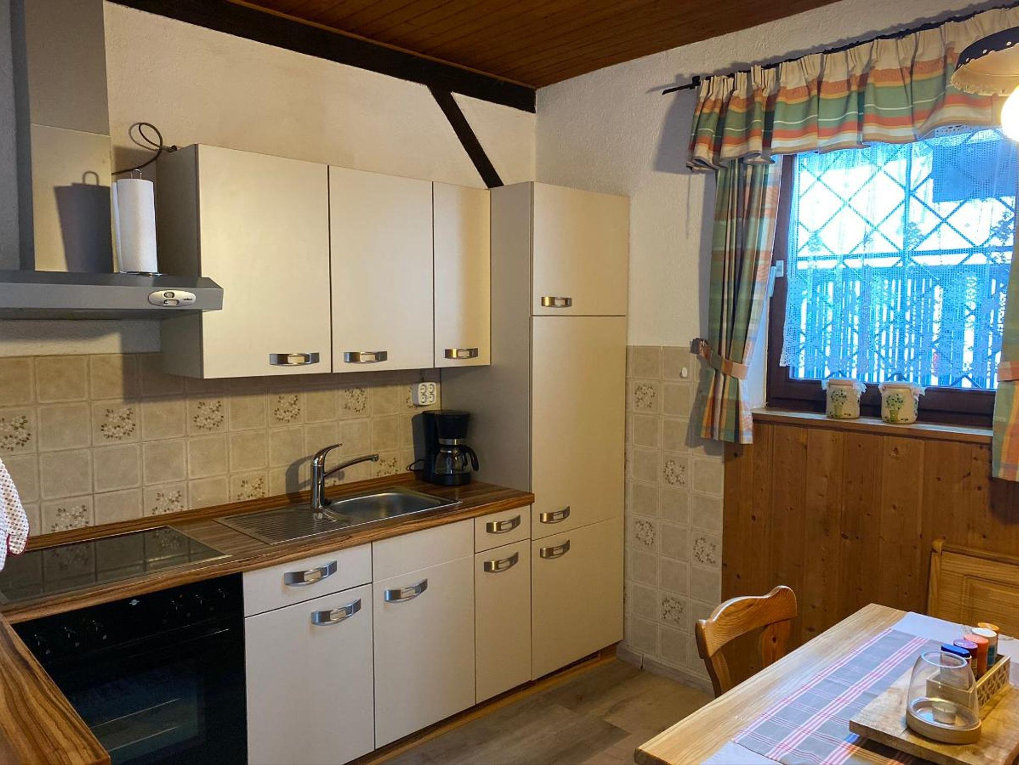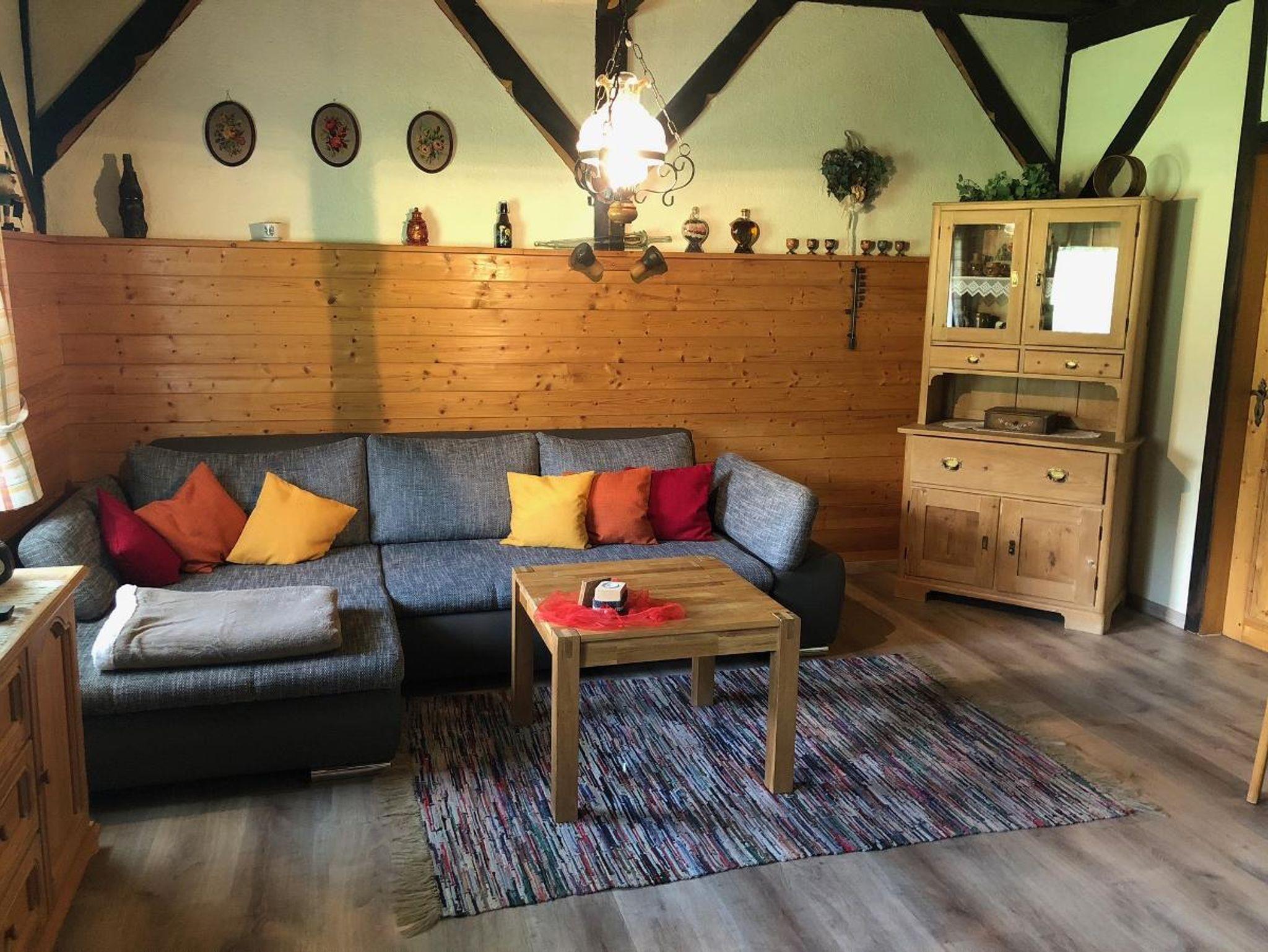 Das urige Ferienhaus liegt idyllisch an einer Bergwiese am Waldrand und ermöglicht Erholung pur direkt in der Natur. Zwei Betten im Schlafzimmer und eine Schlafcouch im Wohnzimmer bieten Platz für maximal drei Personen. Das Wohnzimmer verfügt über eine gemütliche Eckcouch und natürlich einen Fernseher. Das absolute Highlight ist unser Kaminofen, der mit seinem prasselnden Feuer für eine heimelige Atmosphäre sorgt. Eine gut ausgestattete Küche mit Backofen, Kaffeemaschine, Toaster, Wasserkocher usw. macht den Urlaub angenehm. Die Feuerschale im Außenbereich lässt Lagerfeuerromantik aufkommen. Auf der Terrasse oder auf der Liegewiese genießen Sie die wunderbare Natur und herrliche Ruhe. Wenn Sie Glück haben, können Sie abends sogar Rehe beim Äsen beobachten.