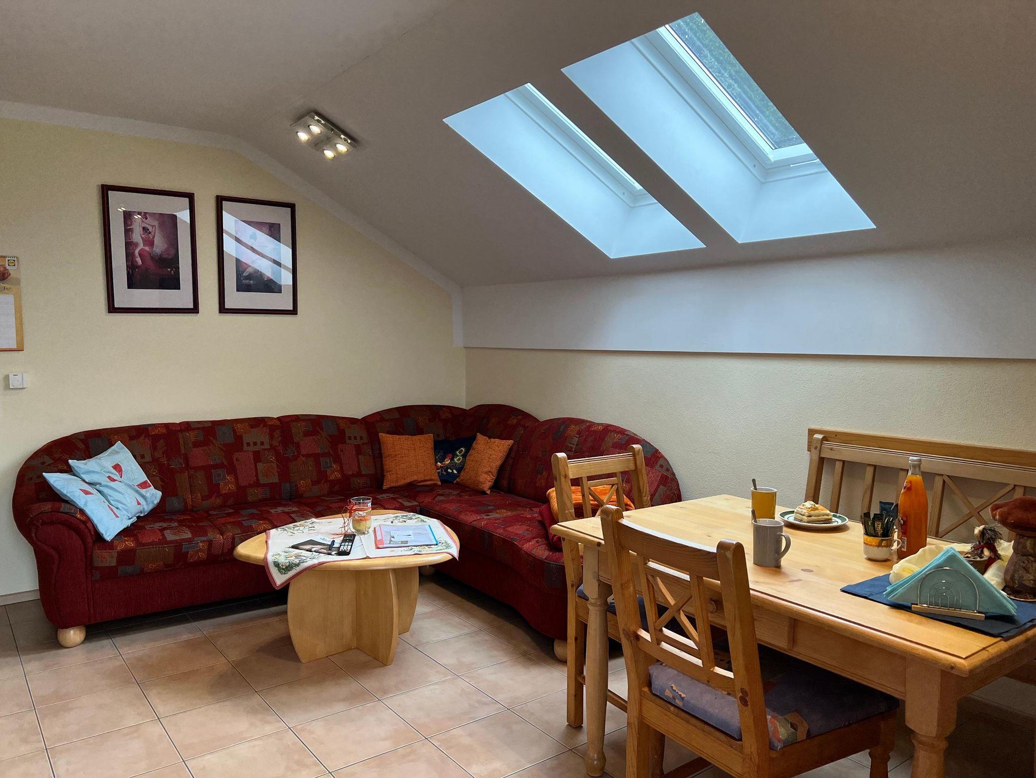Die Ferienwohnung bietet Platz für bis zu 5 Personen. Aufgeteilt auf 2 Schlafzimmer, dazw. das Badezimmer. Zur Wohnung gehört ein großer Raum, der Küche, Ess- und Wohnecke beinhaltet. Und ein Vorratsraum, da kann alles rein, was nicht sichtbar werden sollte. : ))