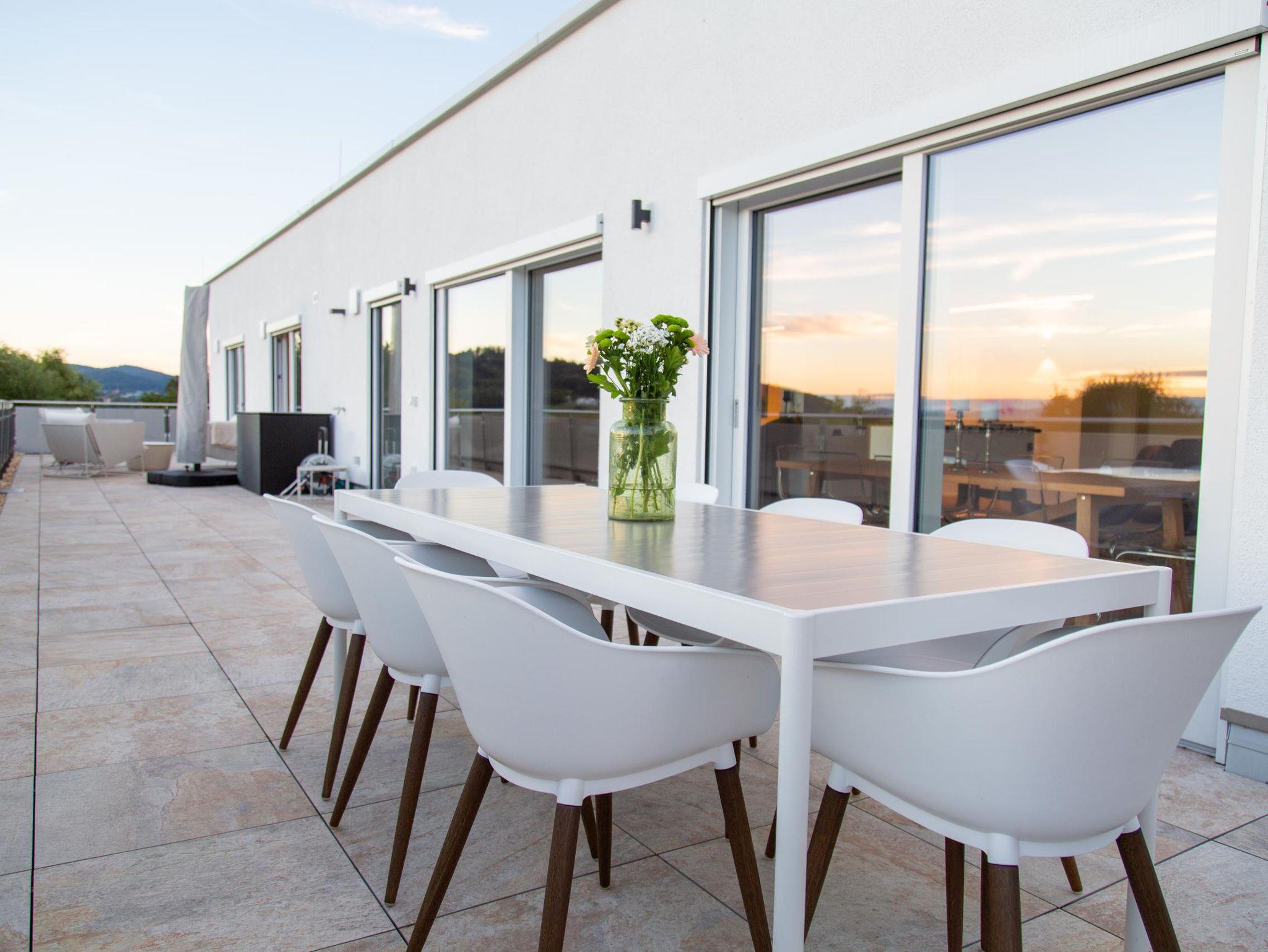 Private 270°-Dachterrasse mit Lounge, Esstisch und