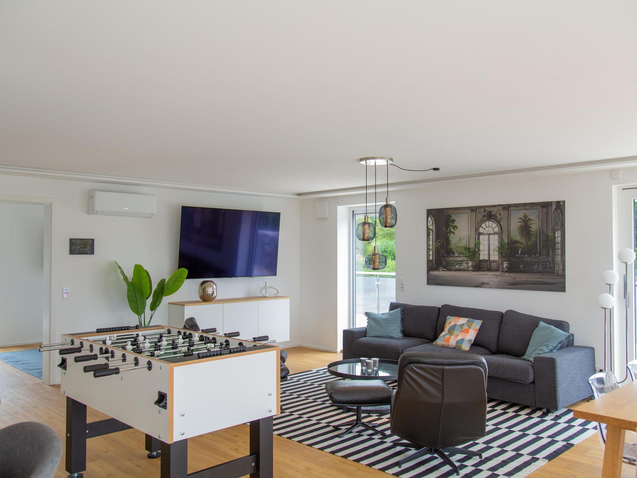 Großer Wohnbereich mit 77? OLED-TV und gemütlicher Lounge