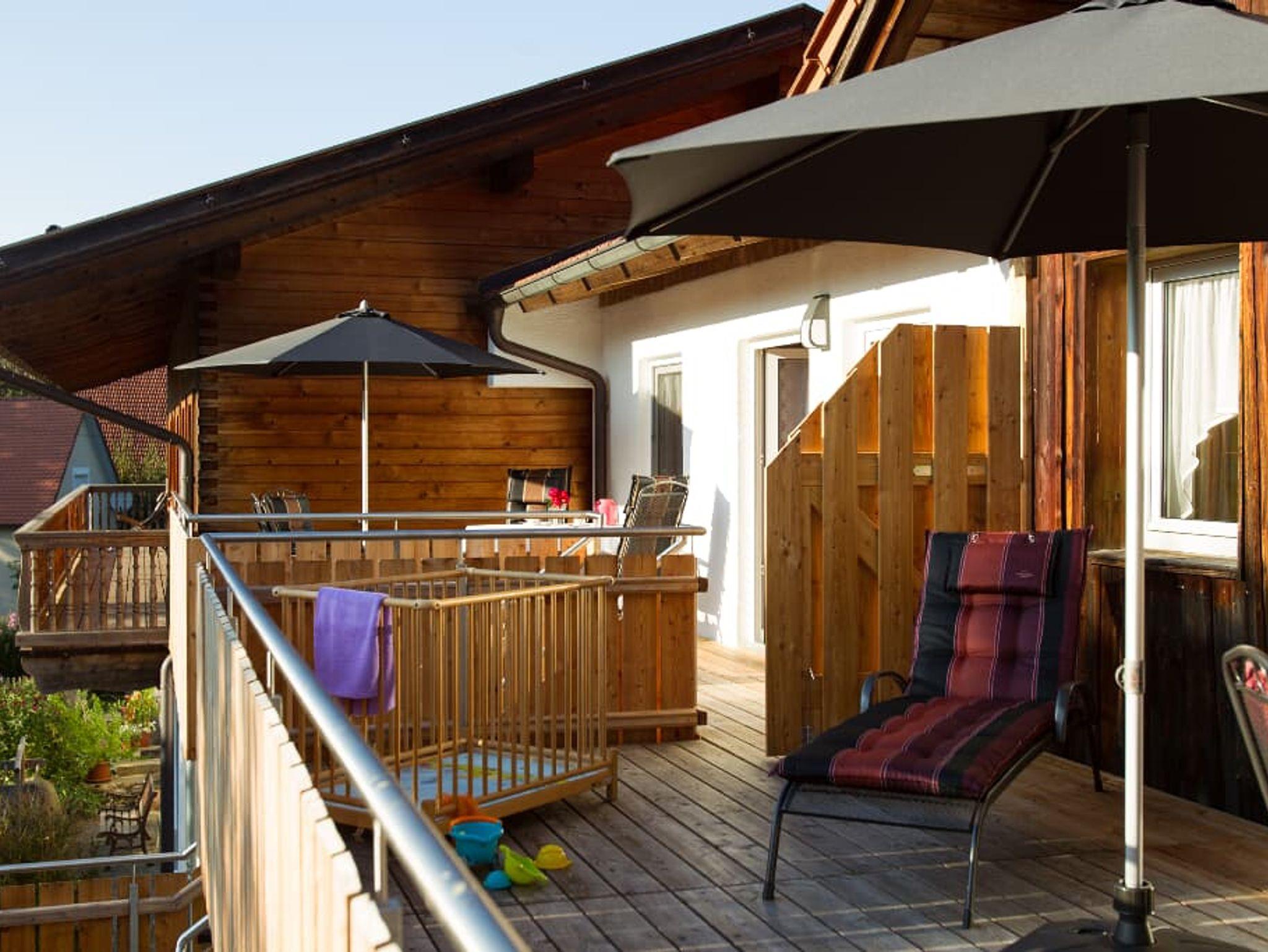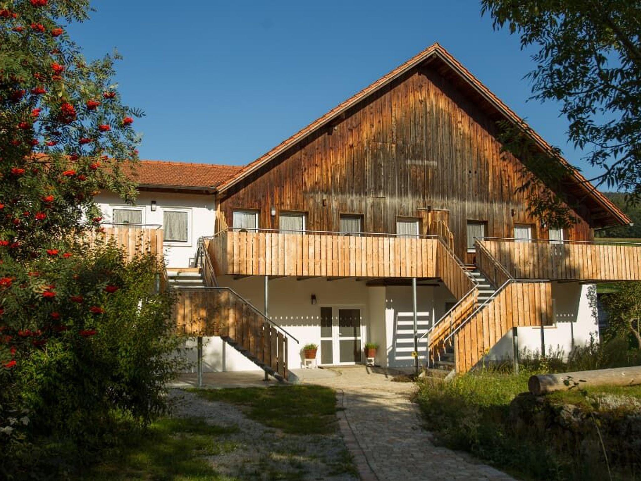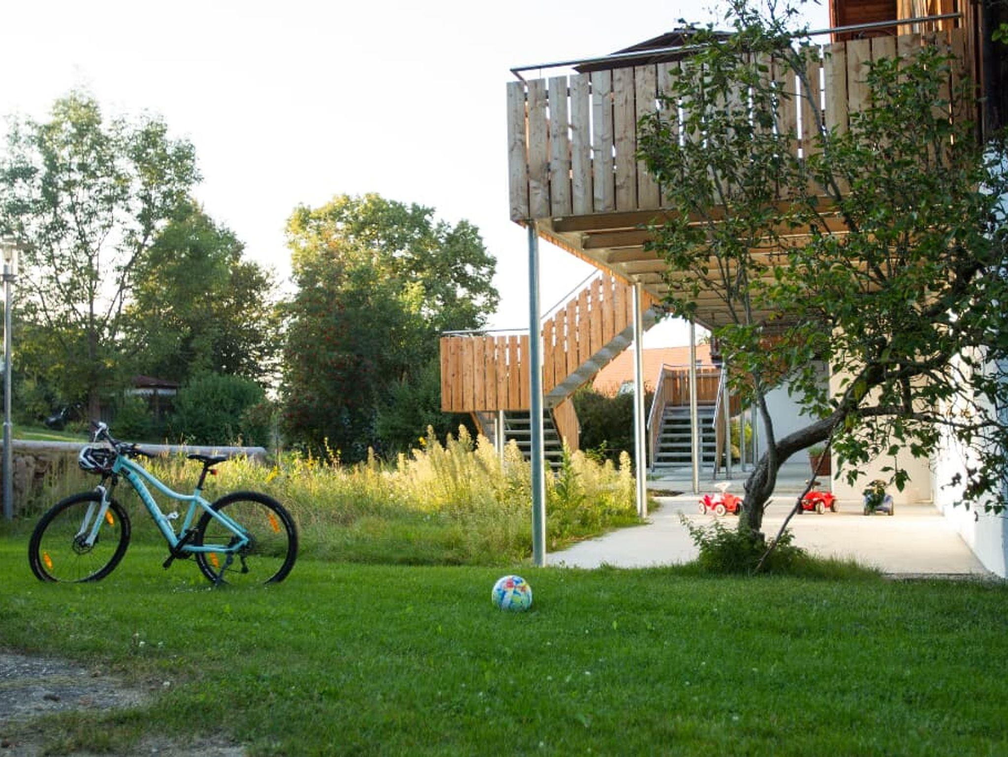 Entspannung und Ruhe inmitten der Natur – kinderfreundliche Ferien genießen Finden Sie Erholung auf unseren großzügigen Balkonen. Die Kinder sammeln Naturerfahrung im angrenzenden Wald und spielen auf unserer nahe gelegenen Spielwiese. Ein kleines Bächlein lädt zum Verweilen ein. Ohne Durchgangsverkehr erleben Sie Entspannung pur. Unsere Ferienwohnungen mit Schlafzimmer und separatem Kinderzimmer, sowie Einbauküche mit Kaffeemaschine und Kühlschrank bieten alles, was für einen entspannten Urlaub nötig ist. Wir bieten einen Brötchenservice, damit der Tag gut beginnen kann. Parkplätze befinden sich am Gebäude. Die unmittelbare Umgebung lädt zu Spaziergängen ein. Wanderwege und Radwege, sowie der Perlsee bieten die Möglichkeit, sich sportlich zu betätigen. Wir freuen uns, Sie bei uns begrüßen zu dürfen! Sommer: Die Kinder dürfen auf dem sonnengeschützten Spielplatz schaukeln, Ball spielen und am seichten Bach Edelsteine suchen. Fußballtore laden zu bolzen ein. Bobbycars vorhanden, sowie Tischtennis im Innenbereich. Winter: Neben dem Haus befindet sich ein flacher Hügel, wo die Kinder in Sichtnähe der Eltern ohne Gefahr mit Bobs und Tellern rutschen können.
