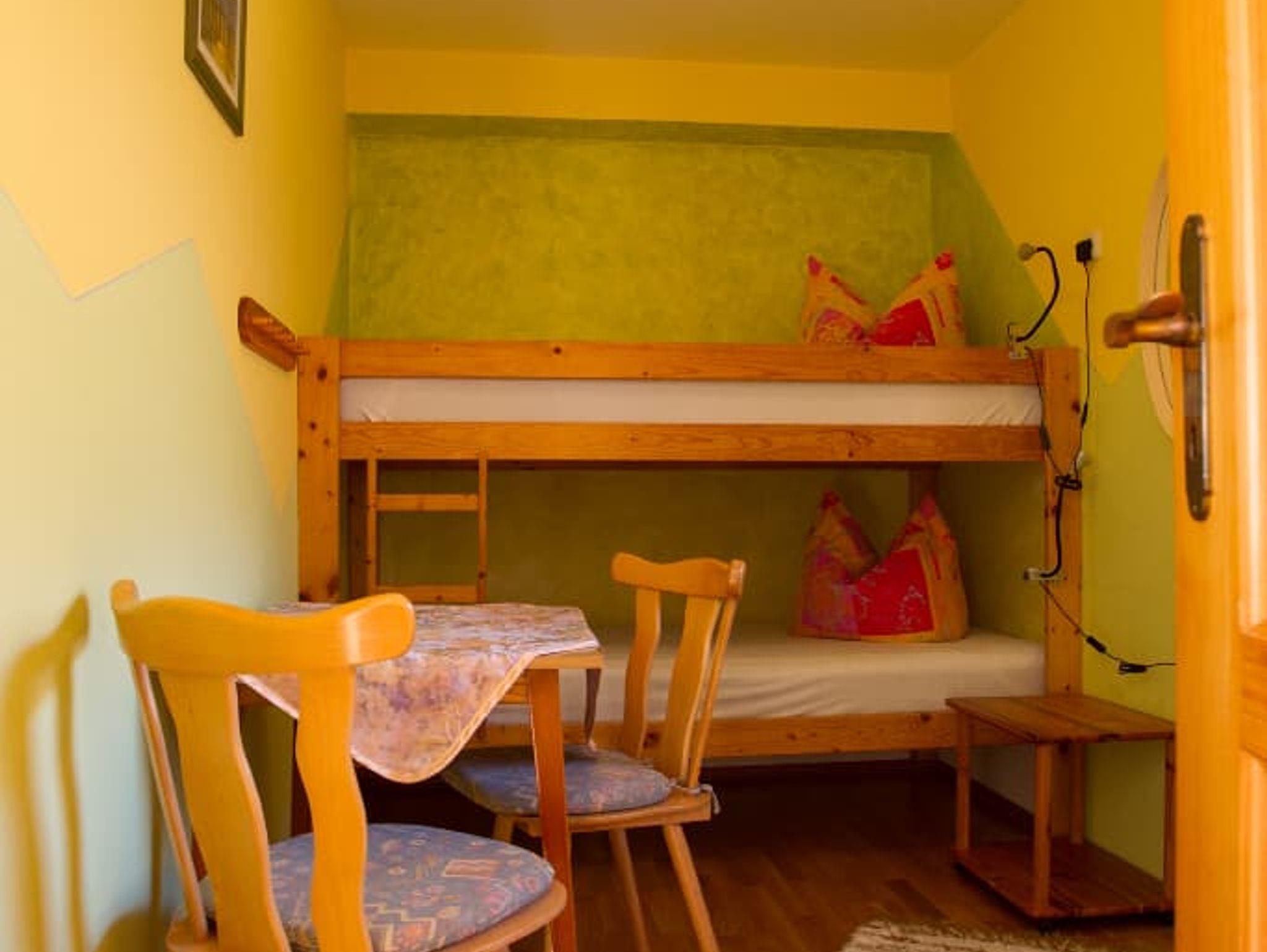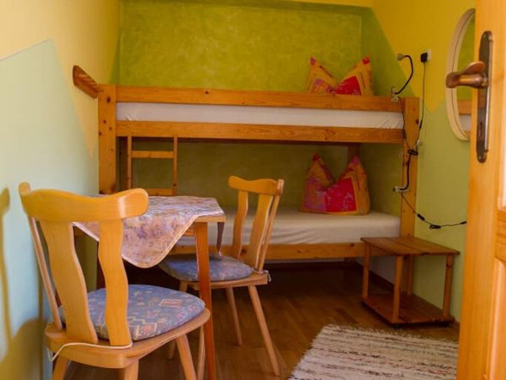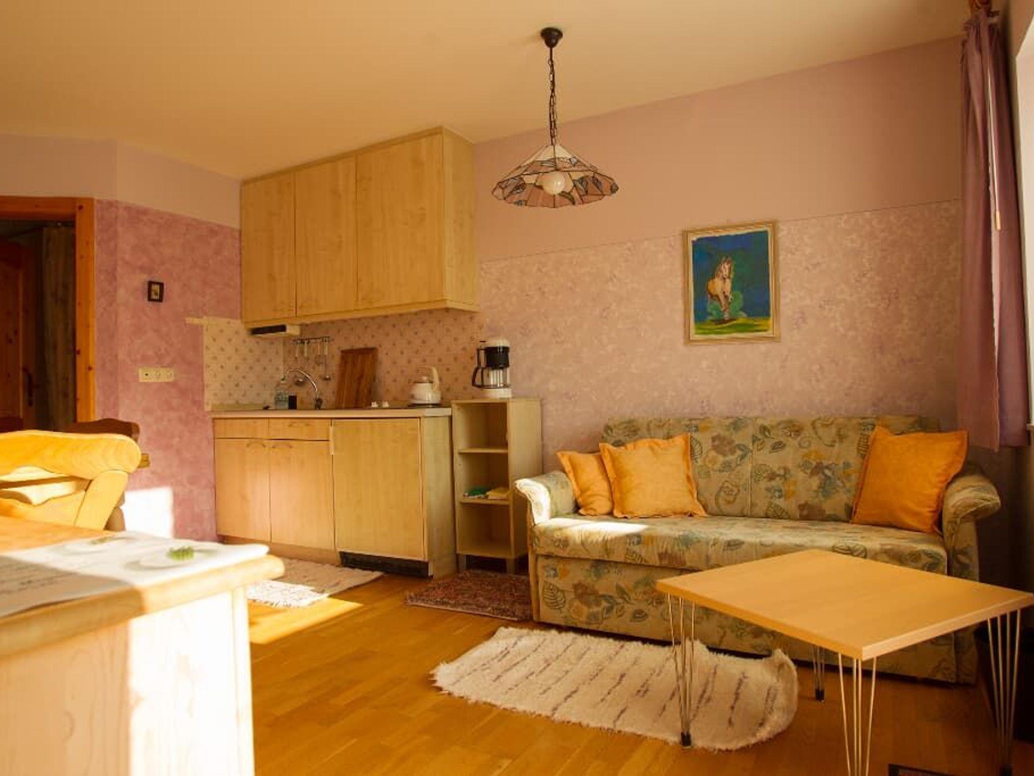 Entspannung und Ruhe inmitten der Natur – kinderfreundliche Ferien genießen Finden Sie Erholung auf unseren großzügigen Balkonen. Die Kinder sammeln Naturerfahrung im angrenzenden Wald und spielen auf unserer nahe gelegenen Spielwiese. Ein kleines Bächlein lädt zum Verweilen ein. Ohne Durchgangsverkehr erleben Sie Entspannung pur. Unsere Ferienwohnungen mit Schlafzimmer und separatem Kinderzimmer, sowie Einbauküche mit Kaffeemaschine und Kühlschrank bieten alles, was für einen entspannten Urlaub nötig ist. Wir bieten einen Brötchenservice, damit der Tag gut beginnen kann. Parkplätze befinden sich am Gebäude. Die unmittelbare Umgebung lädt zu Spaziergängen ein. Wanderwege und Radwege, sowie der Perlsee bieten die Möglichkeit, sich sportlich zu betätigen. Wir freuen uns, Sie bei uns begrüßen zu dürfen! Sommer: Die Kinder dürfen auf dem sonnengeschützten Spielplatz schaukeln, Ball spielen und am seichten Bach Edelsteine suchen. Fußballtore laden zu bolzen ein. Bobbycars vorhanden, sowie Tischtennis im Innenbereich. Winter: Neben dem Haus befindet sich ein flacher Hügel, wo die Kinder in Sichtnähe der Eltern ohne Gefahr mit Bobs und Tellern rutschen können.