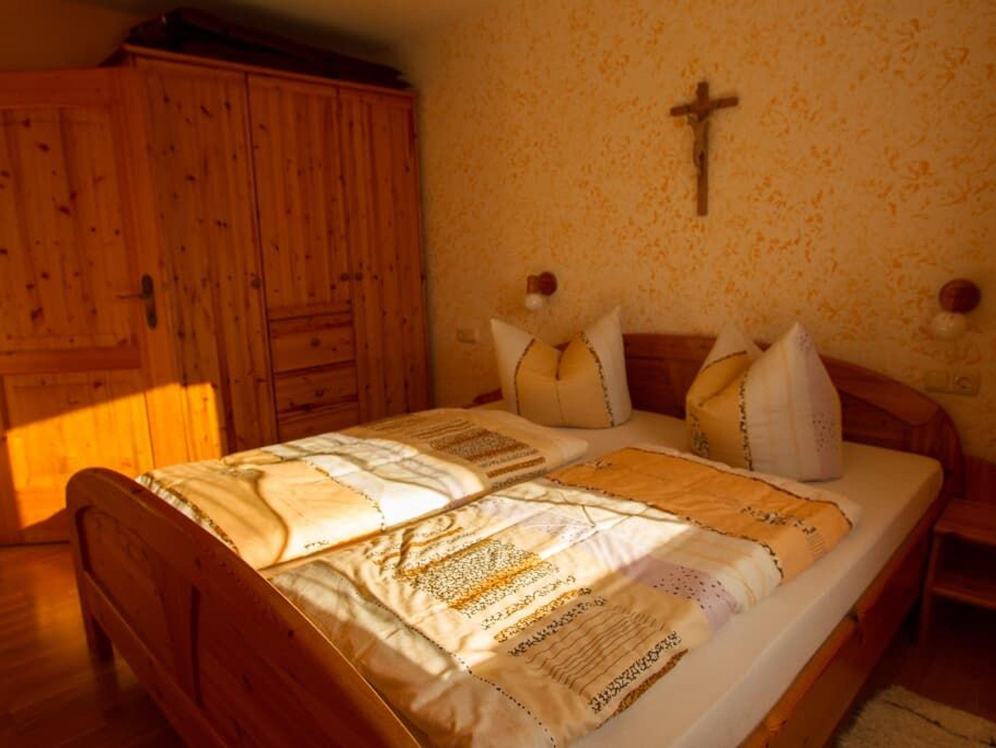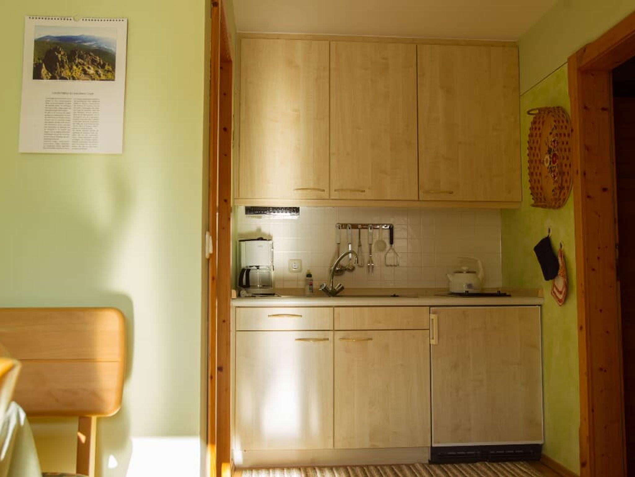 Entspannung und Ruhe inmitten der Natur In unseren Ferienwohnungen finden Sie Erholung in einem Schlafzimmer mit Doppelbett. Die Kinder schlafen im separaten Kinderzimmer mit Etagenbett. Auf Wunsch wird ein Babybett zugestellt. Der Wohn- und Essraum bietet Platz für gemütliches Beisammensein. In der voll ausgestatteten Einbauküche sind Kaffeemaschine, Wasserkessel und Kühlschrank vorhanden. Im Bad mit Dusche und WC werden die Handtücher und Duschtücher gestellt und 2x wöchentlich gewechselt. Alle Böden sind wischbar und allergikerfreundlich. Lassen Sie sich nach Ihren Ausflügen in die Couchkissen fallen und schauen die selbst gemachten Urlaubsbilder und -filme auf dem Smart-TV an oder wählen Sie Ihr individuelles Programm aus. Unser Haus verfügt selbstverständlich über einen WLAN-Anschluss. Den Urlaubstag können Sie auf dem großzügigen Balkon in der Abendsonne ausklingen lassen. Genießen Sie die Ruhe in Waldnähe und ohne Durchgangsverkehr.