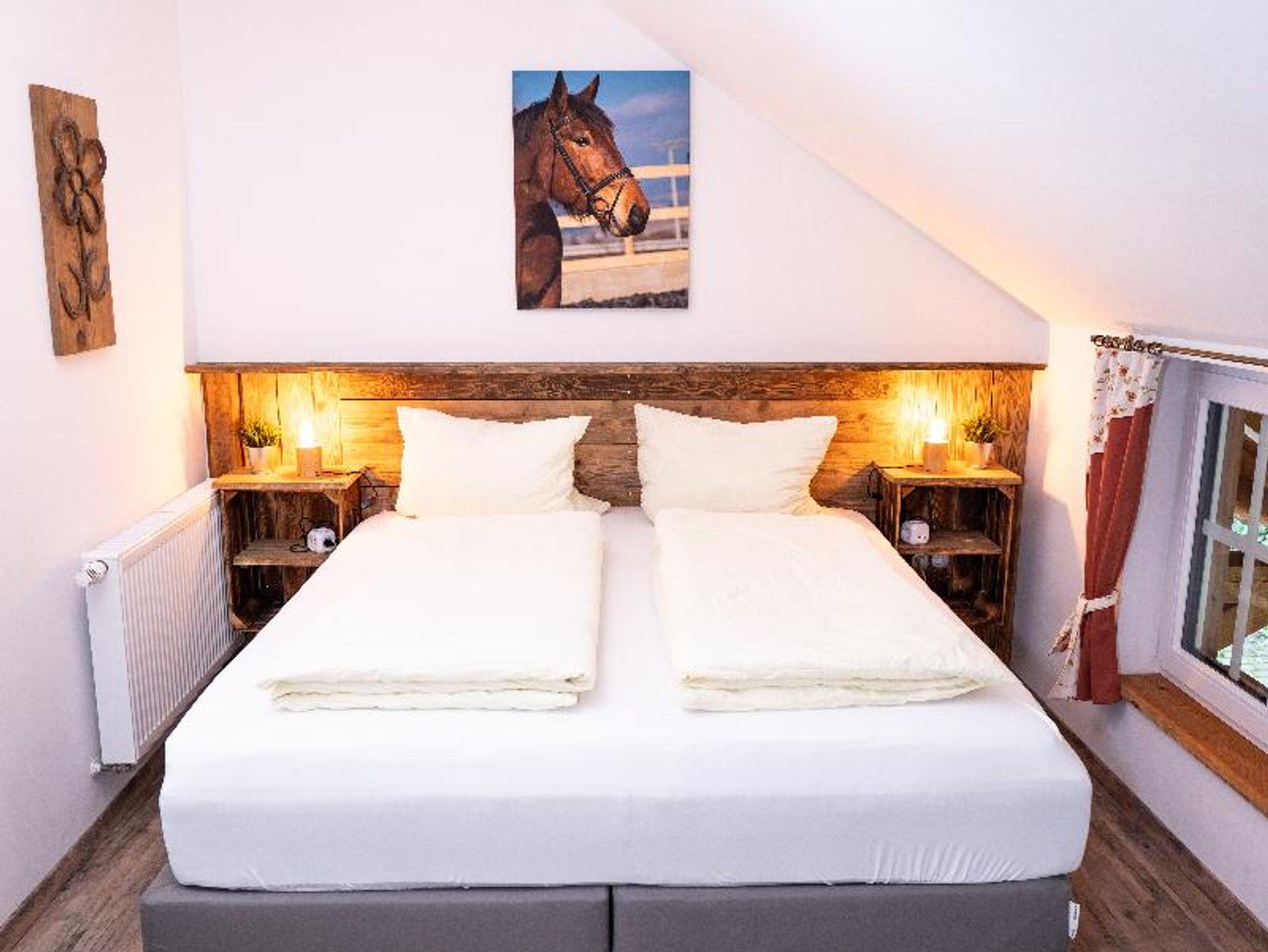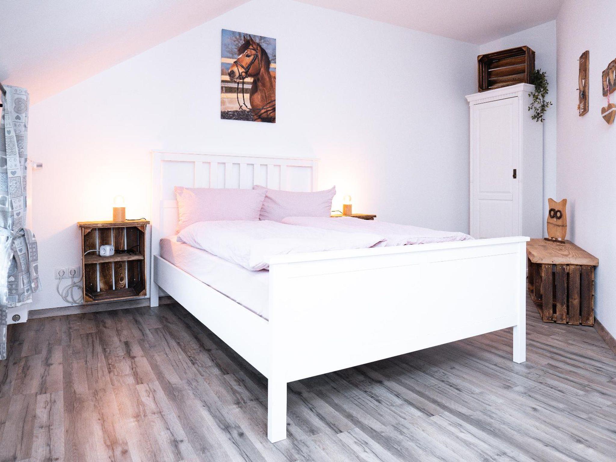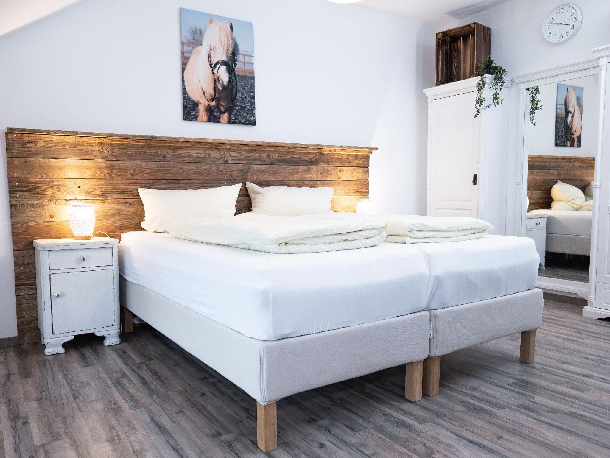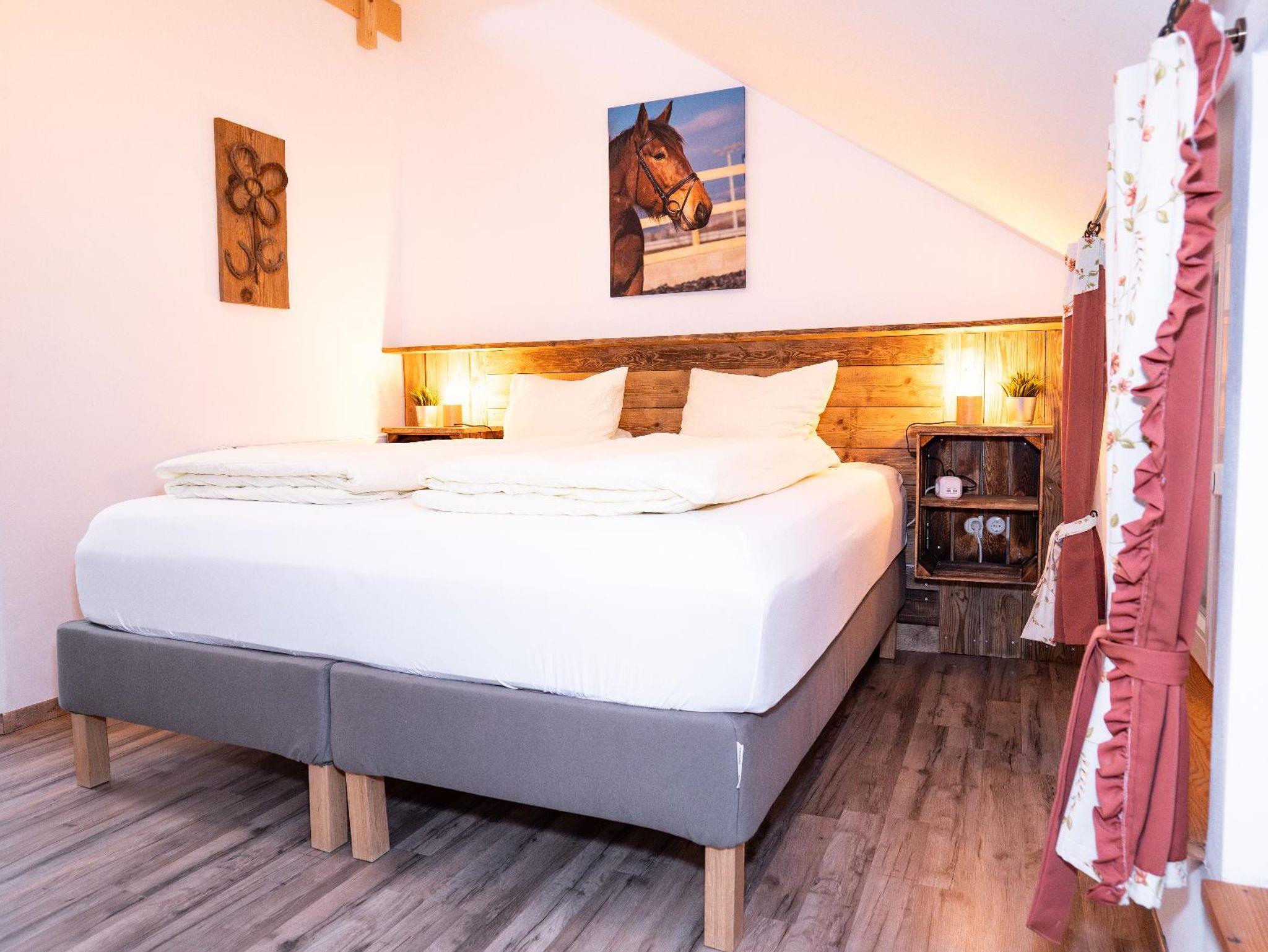 Die Ferienwohnung Stallblick mit zwei großen Schlafzimmern ist ca. 120qm groß und ideal geeignet zum gemeinsamen Reisen mit Großeltern oder zweier befreundeter Familien, aber auch schon ab 2 Personen gemütlich.