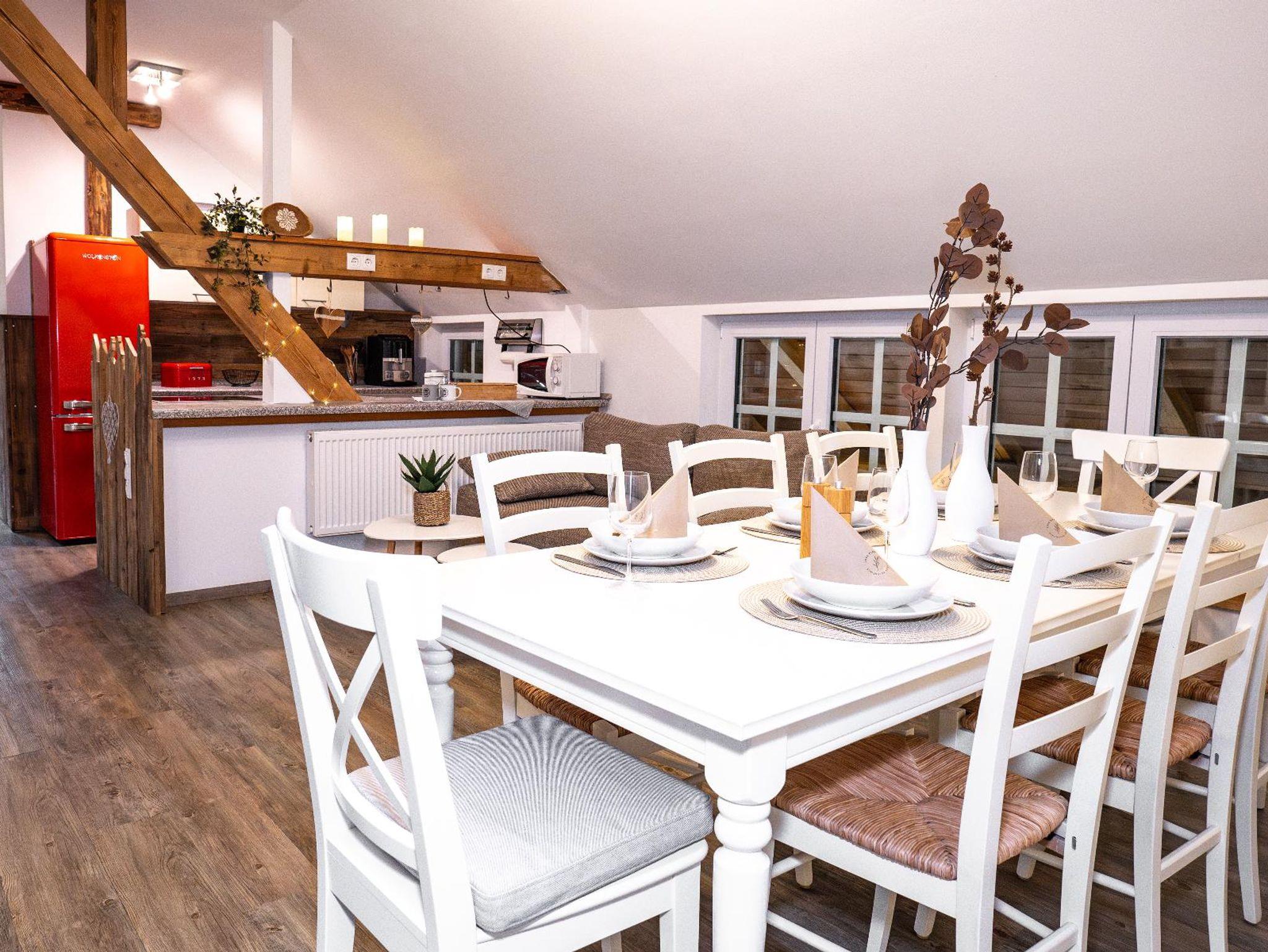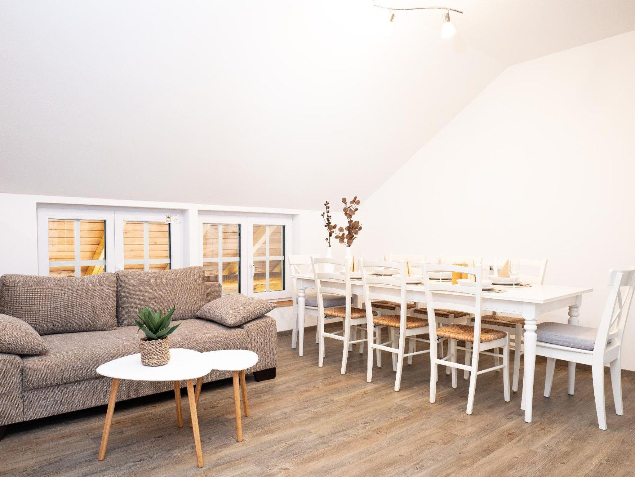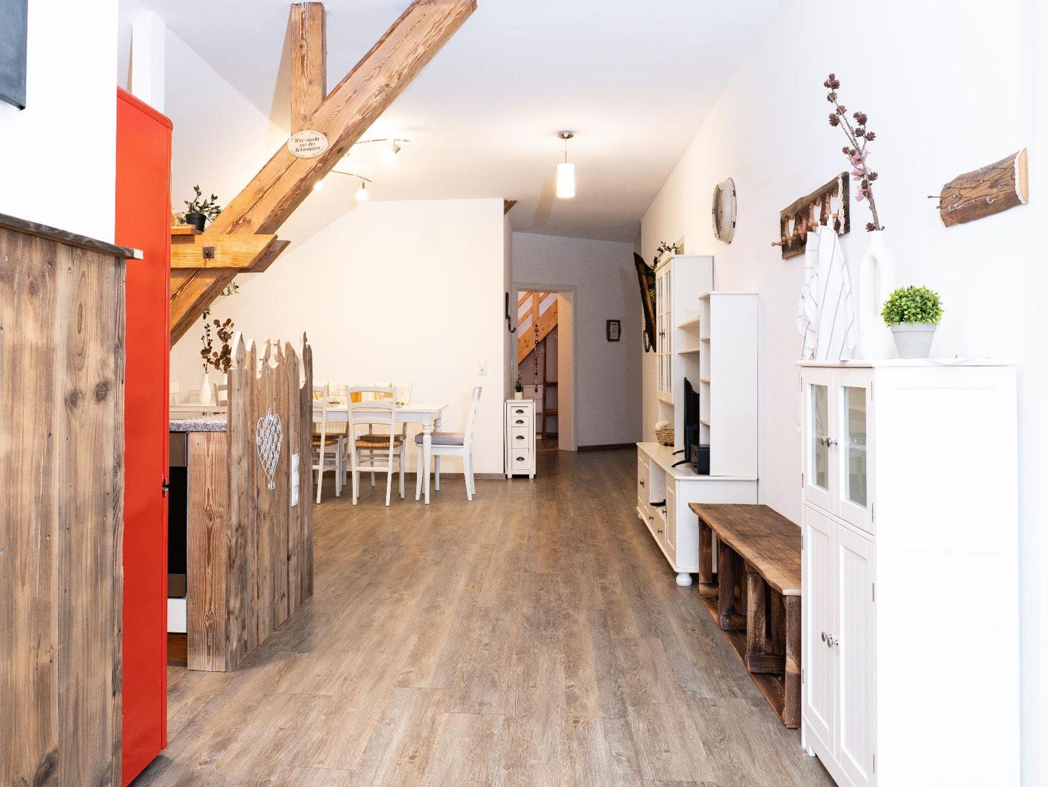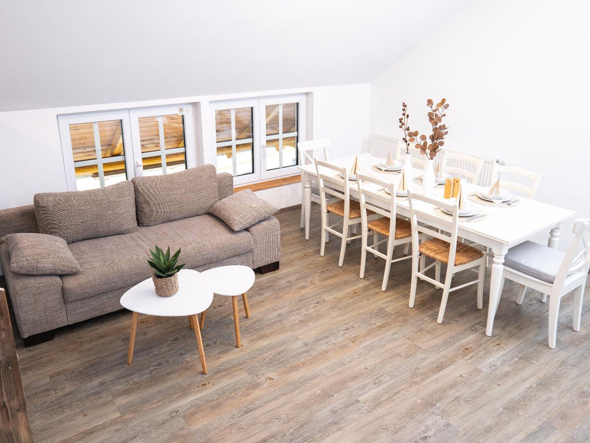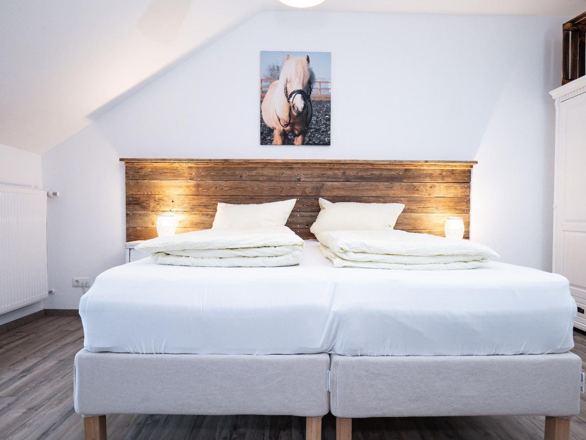 Die Ferienwohnung Stallblick mit zwei großen Schlafzimmern ist ca. 120qm groß und ideal geeignet zum gemeinsamen Reisen mit Großeltern oder zweier befreundeter Familien, aber auch schon ab 2 Personen gemütlich.