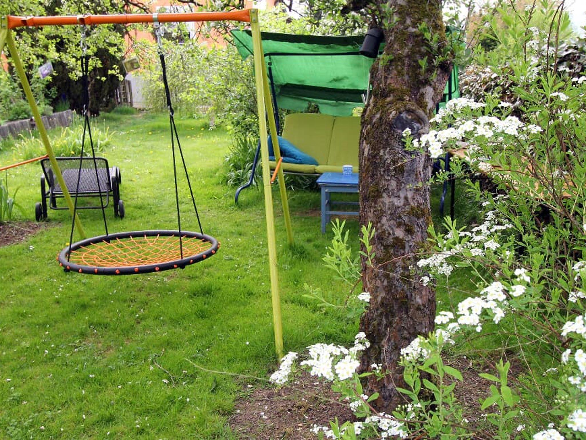 Garten mit Bank und Tisch sowie Kinderschaukel und überdachter Freisitz mit Gartenmöbel können mit benützt werden. Es besteht auch Möglichkeit zum Grillen.